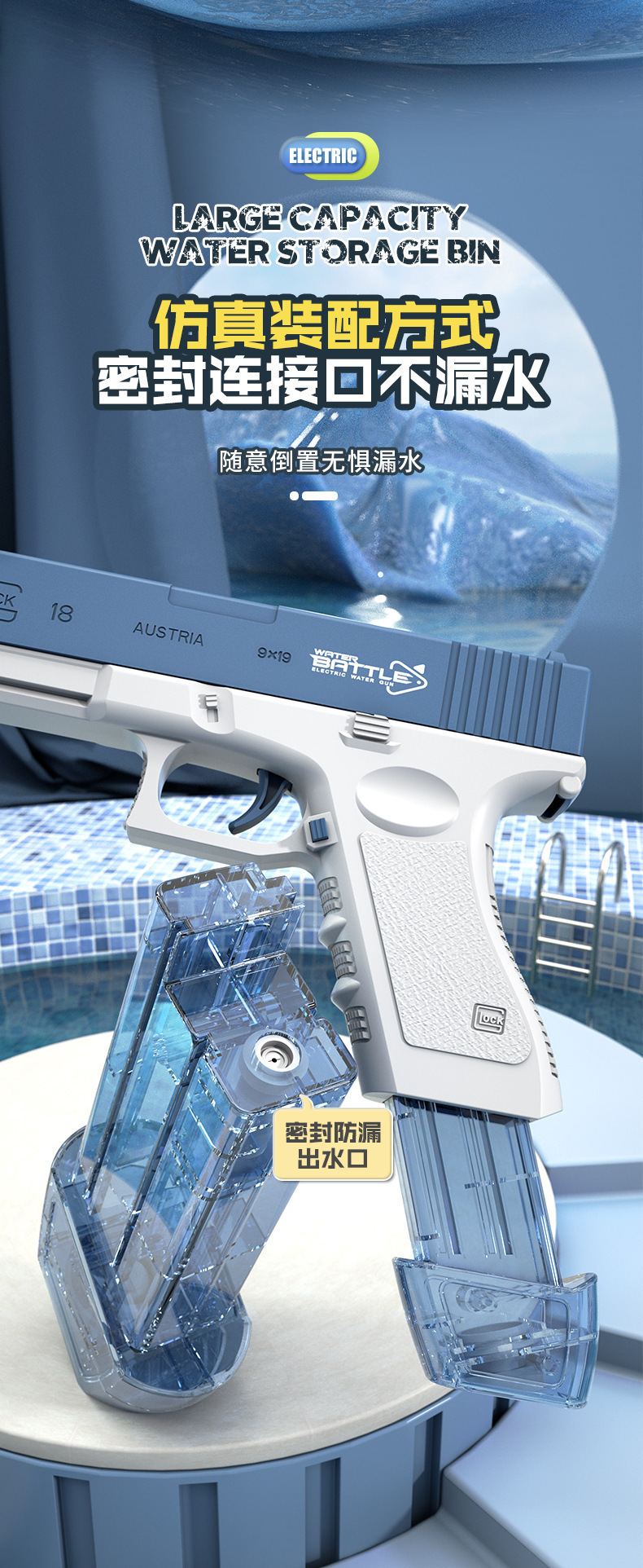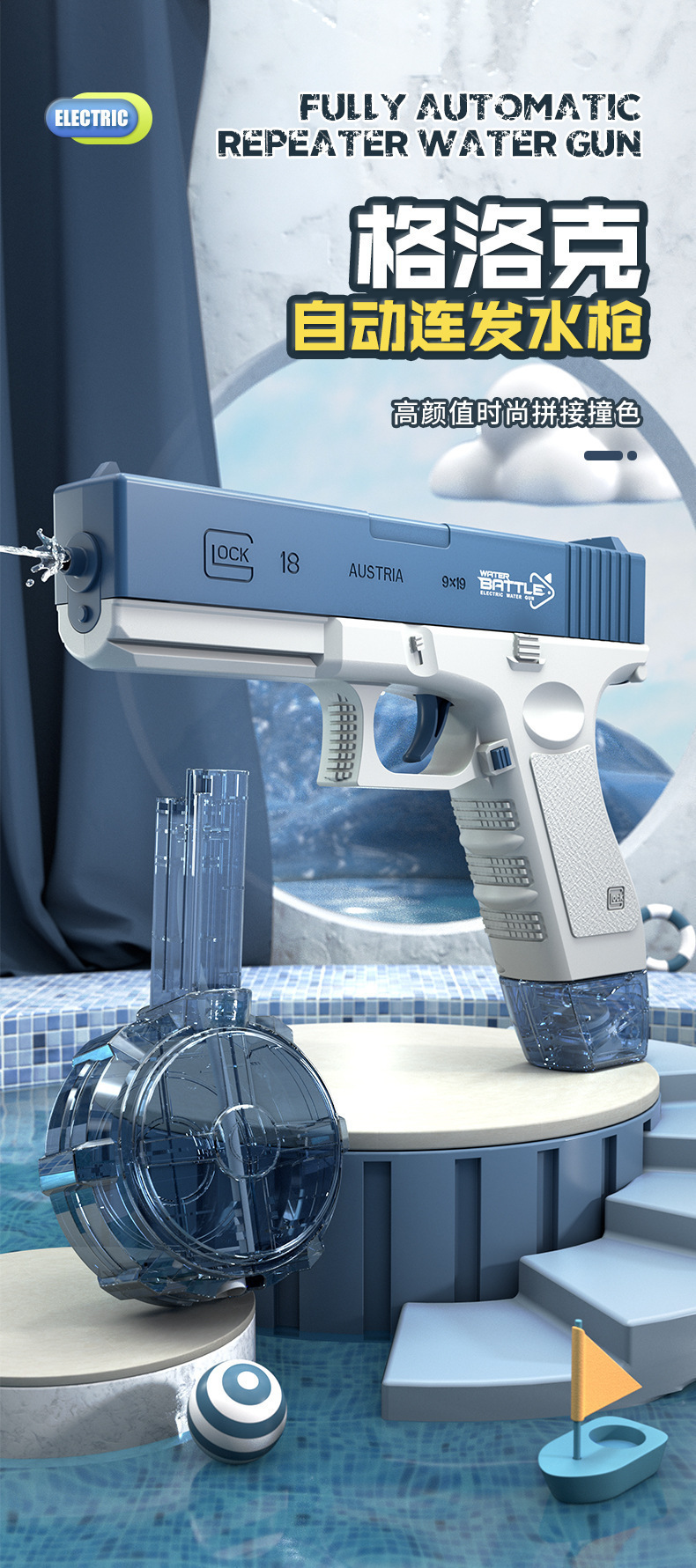 跨境格洛克全自动m416电动水枪冰鼠连发喷水冰爆大容量泼水节玩具