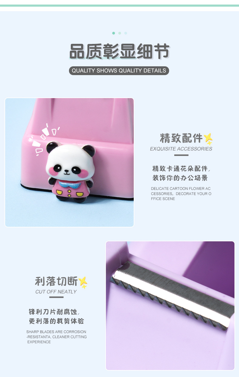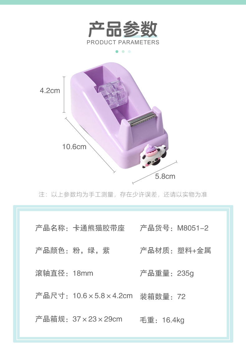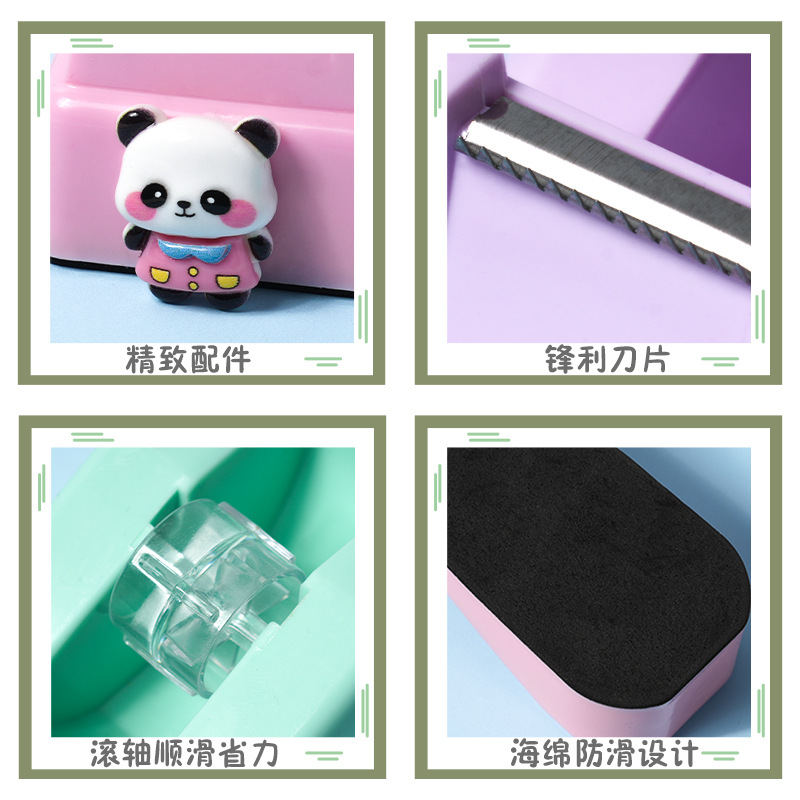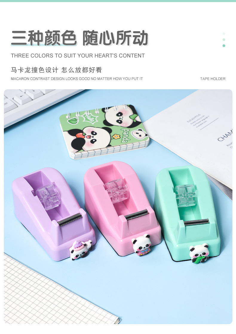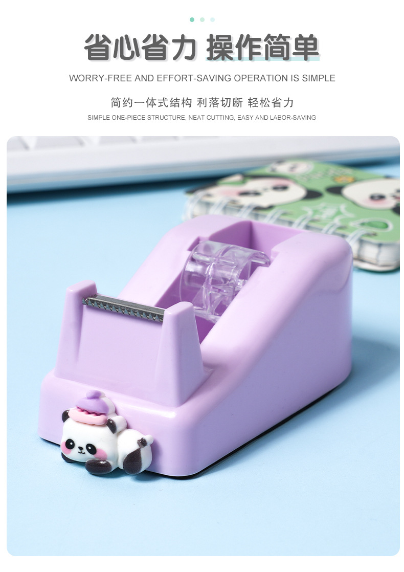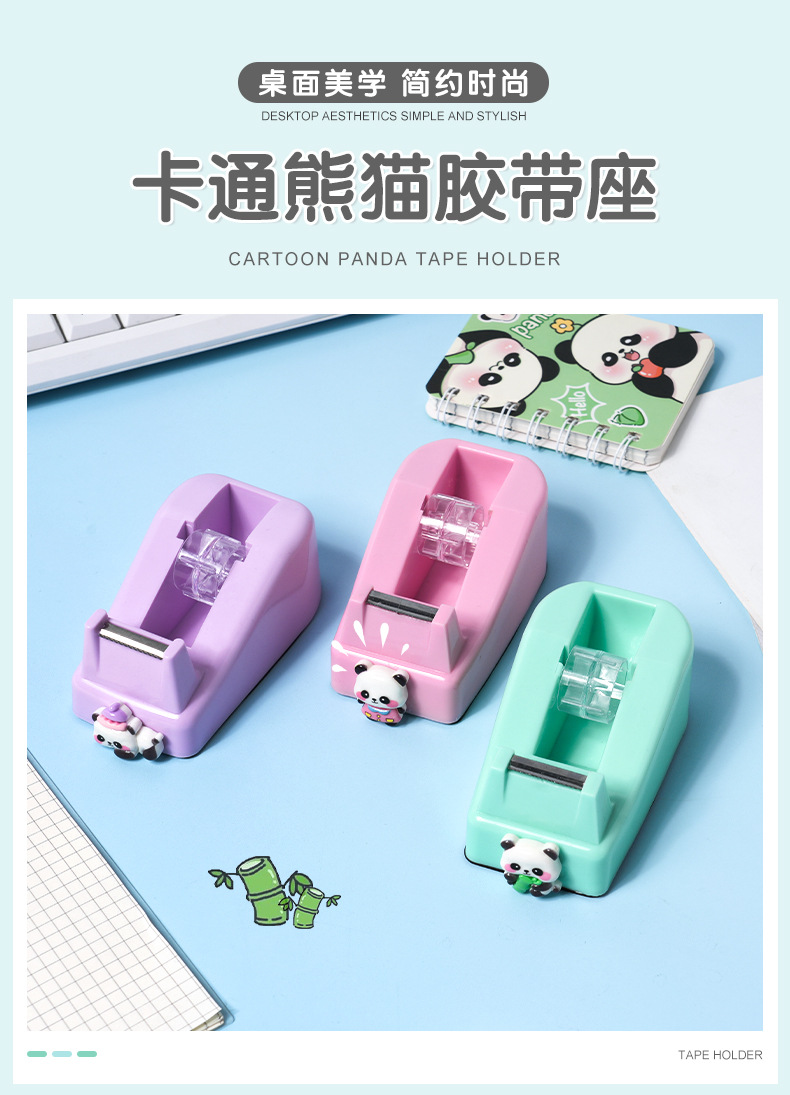 跨境批发卡通熊猫胶带座 创意可爱办公胶带分配器简约胶带切割器