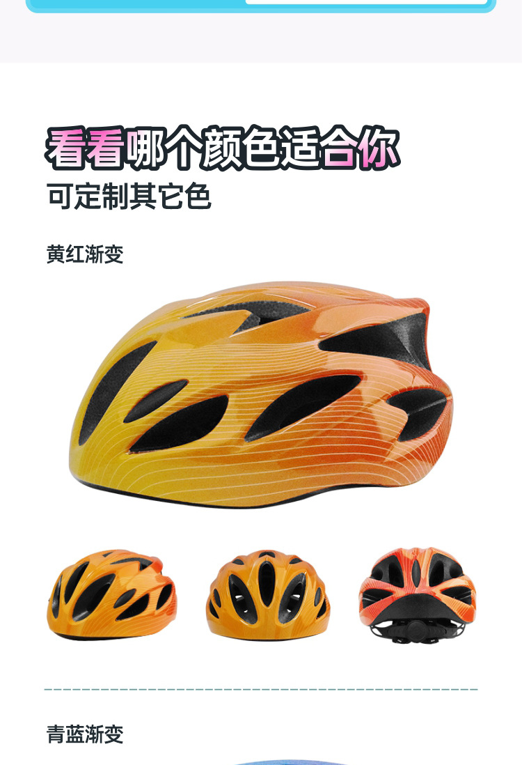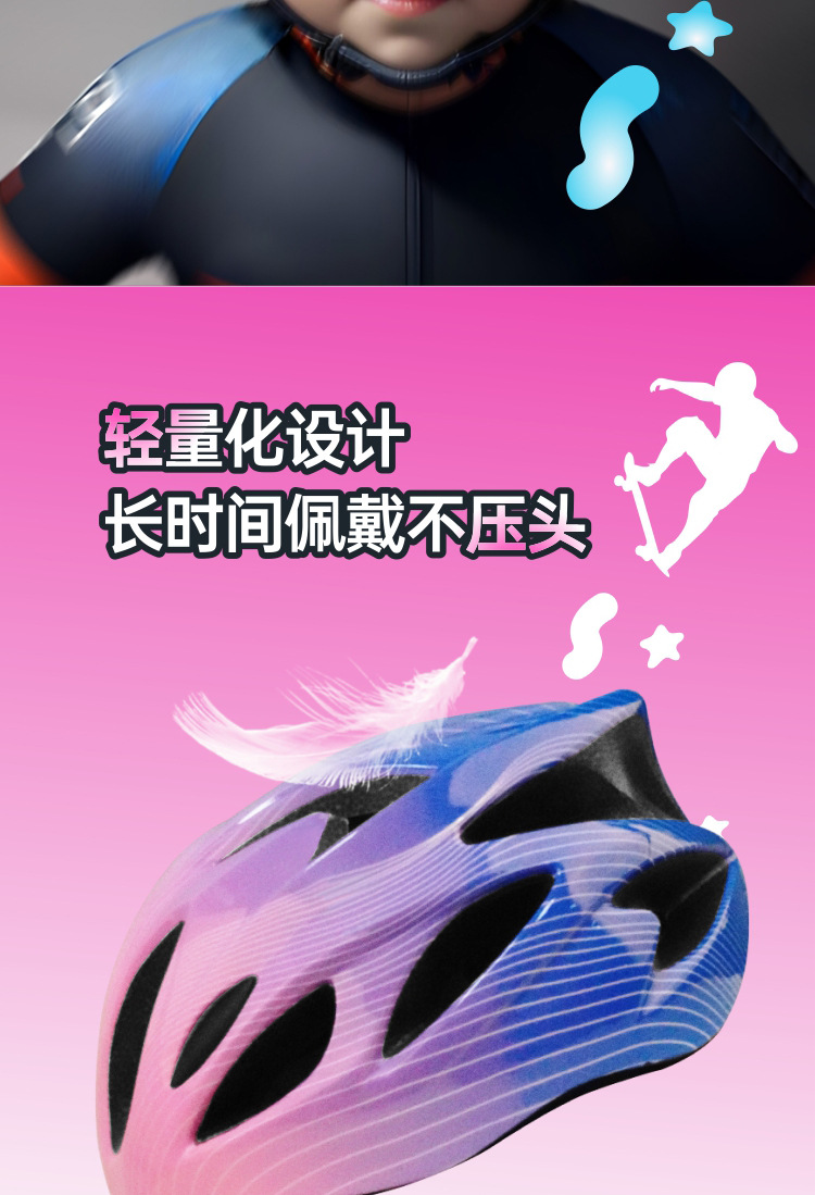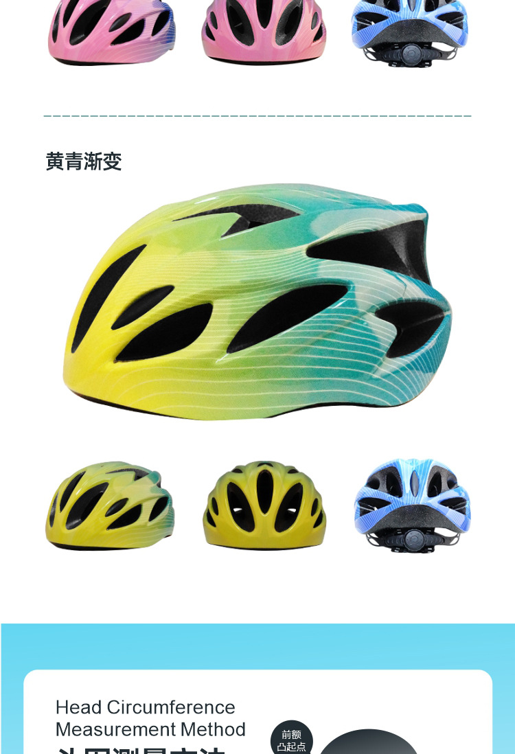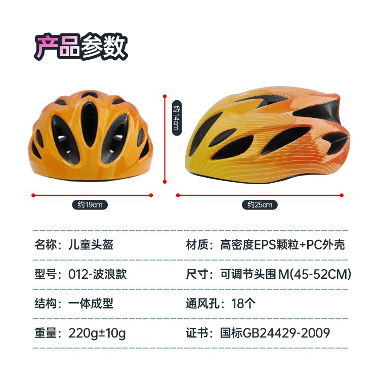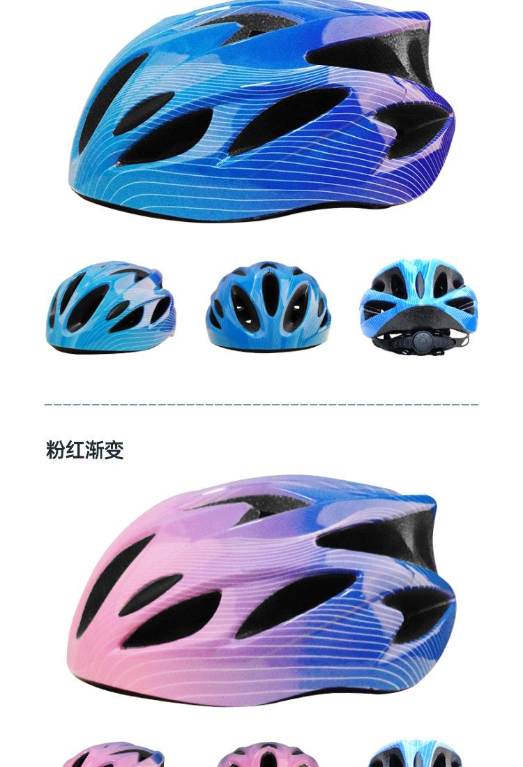 儿童头盔3~14岁渐变色波浪纹超轻透气骑行头盔轮滑平衡车运动头盔