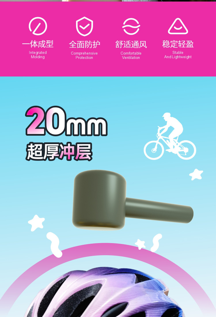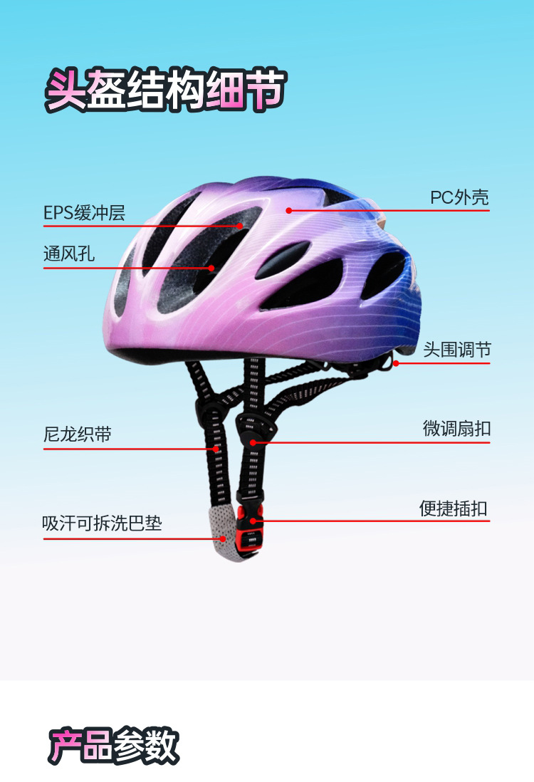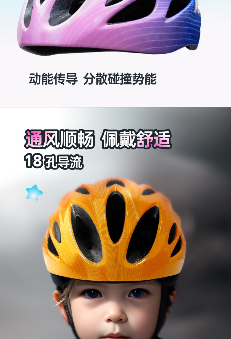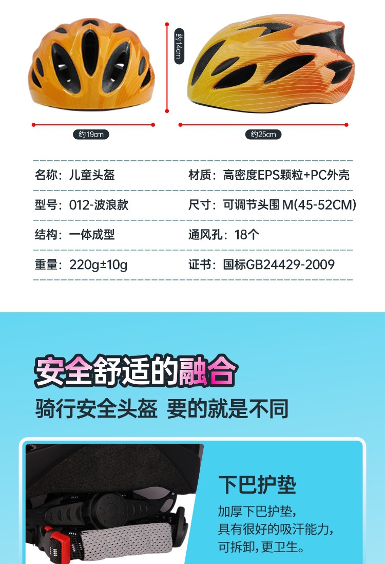 儿童头盔3~14岁渐变色波浪纹超轻透气骑行头盔轮滑平衡车运动头盔