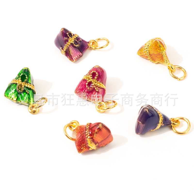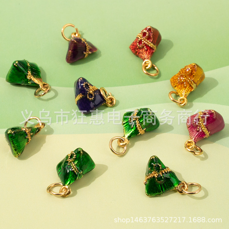 端午节DIY小粽子手链配件五彩绳彩色编织线合金滴油小粽子吊坠