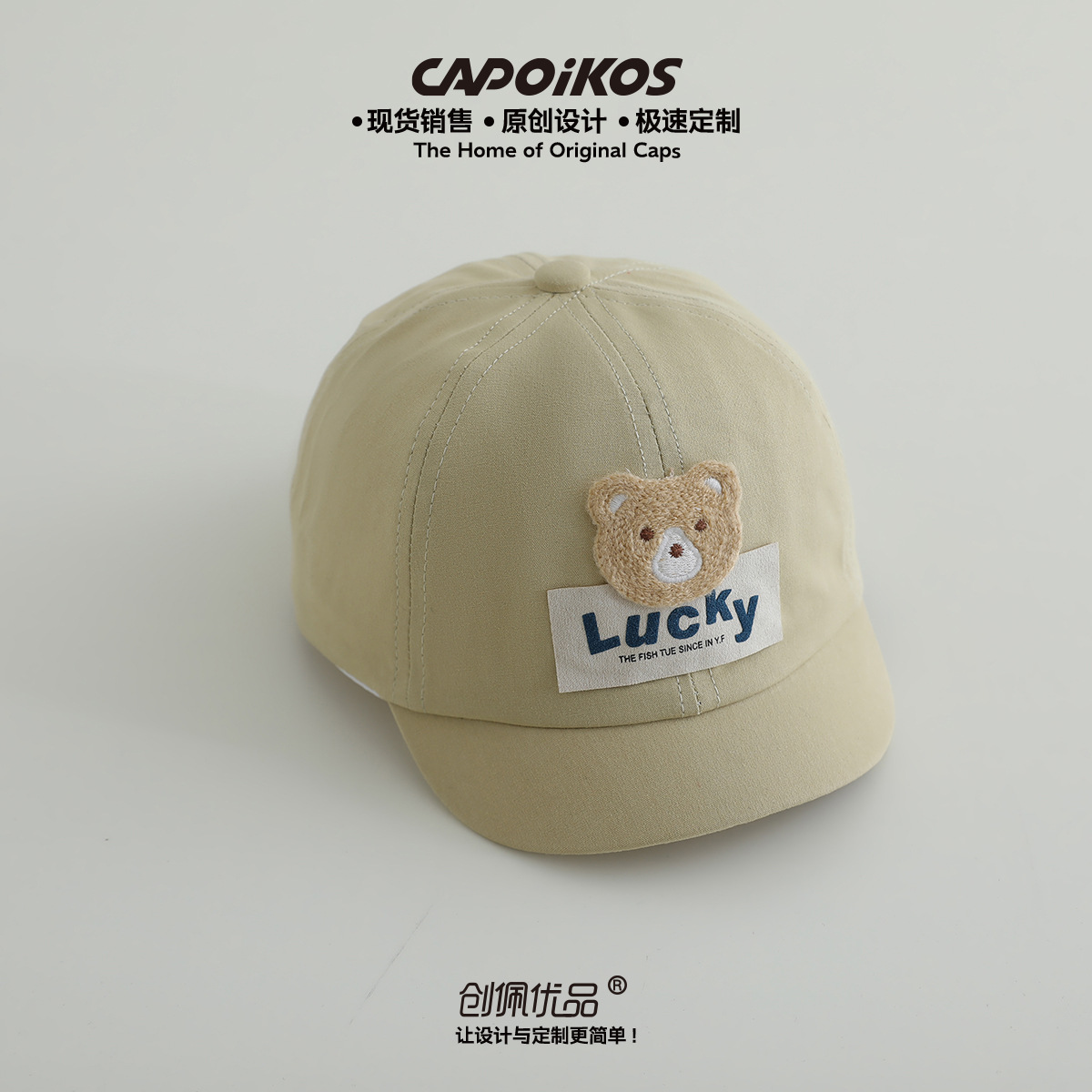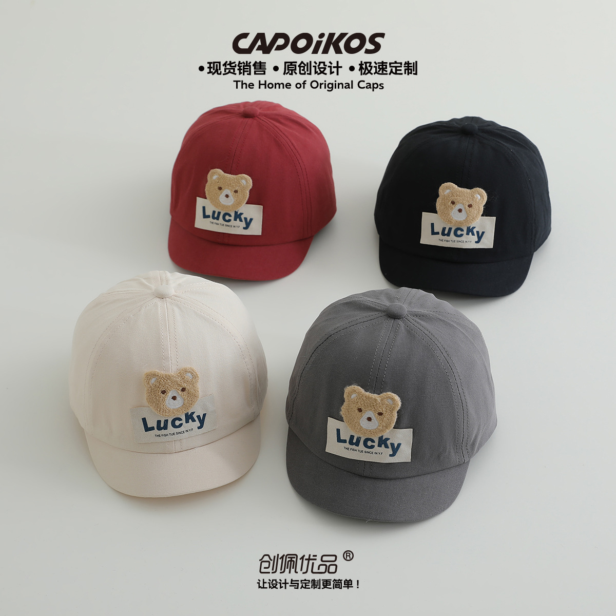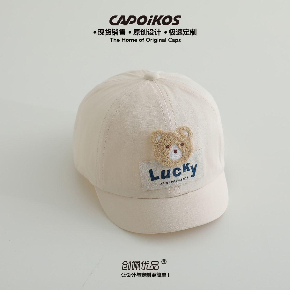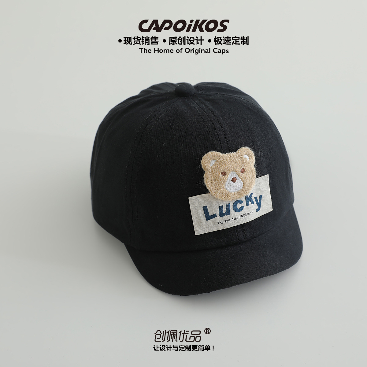 儿童帽子春秋款lucky小熊贴布短檐棒球帽男女宝宝遮阳鸭舌帽批发