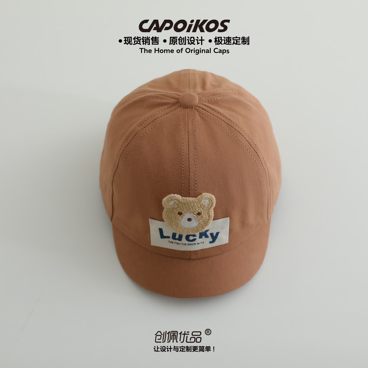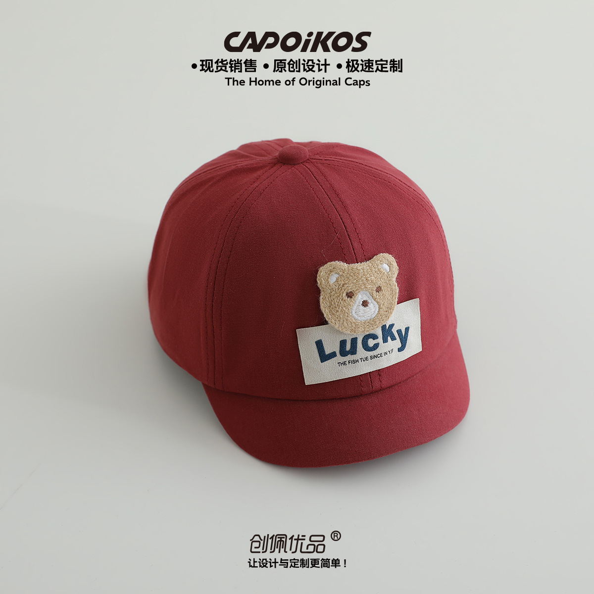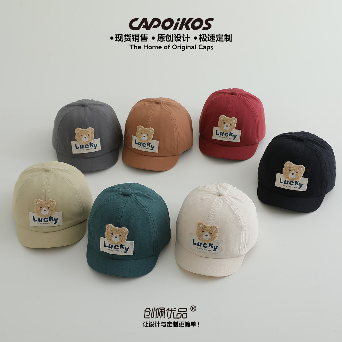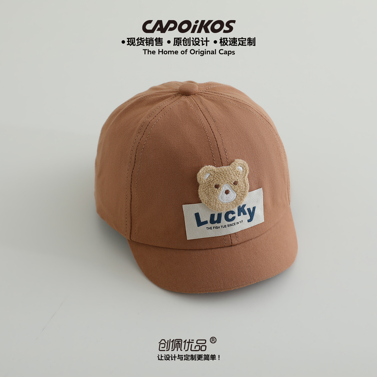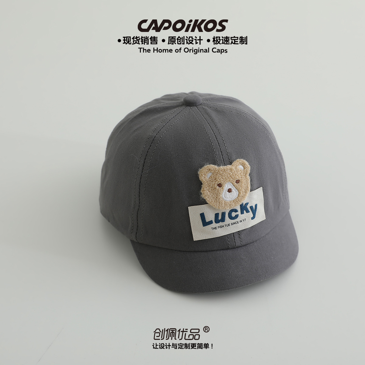 儿童帽子春秋款lucky小熊贴布短檐棒球帽男女宝宝遮阳鸭舌帽批发