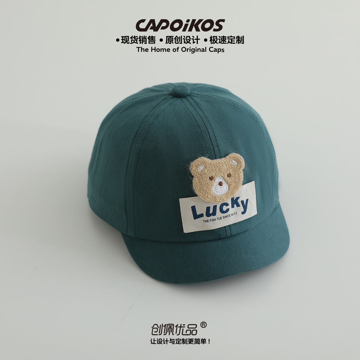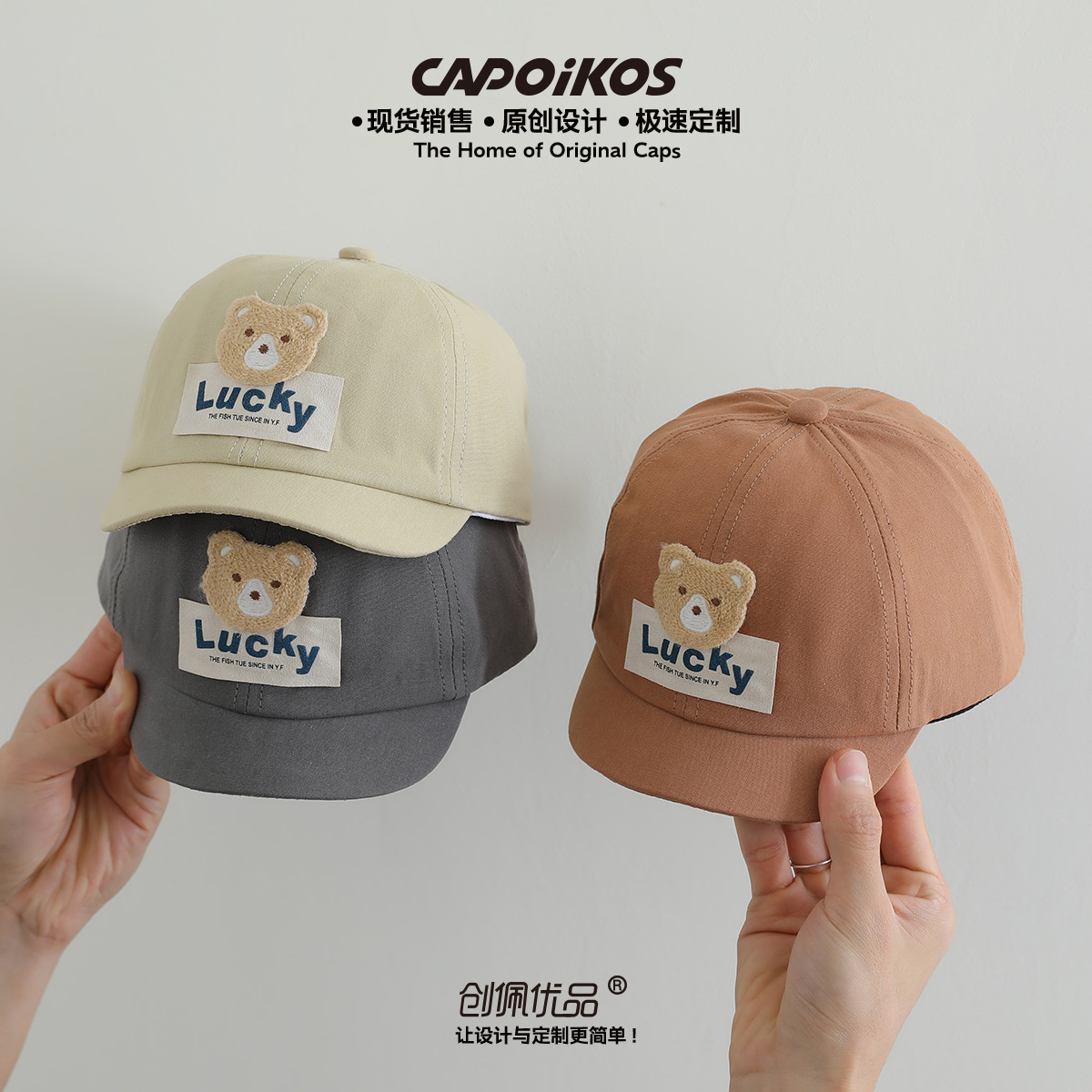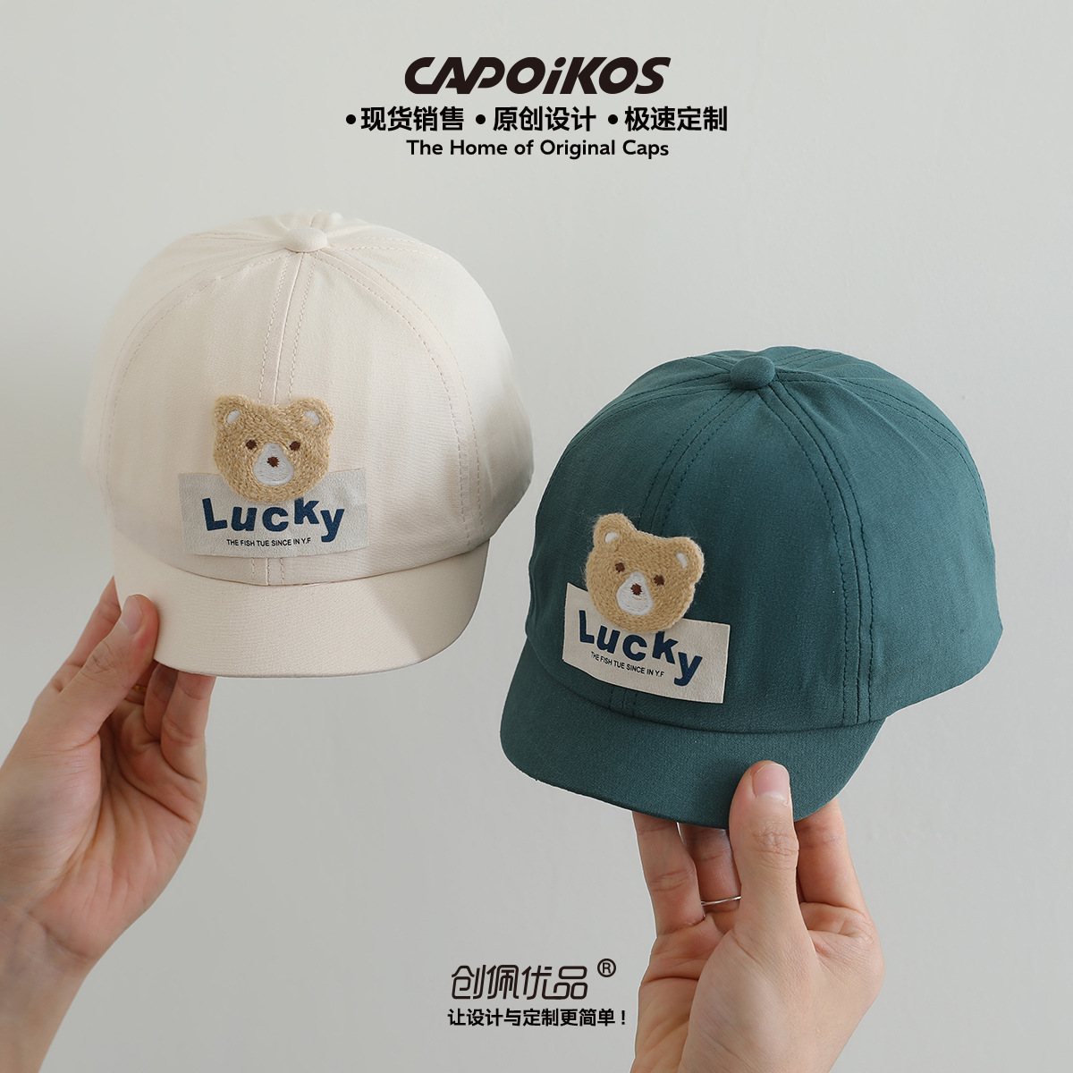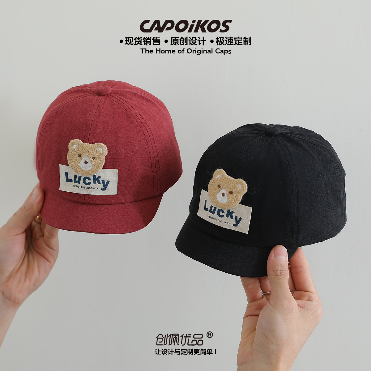 儿童帽子春秋款lucky小熊贴布短檐棒球帽男女宝宝遮阳鸭舌帽批发