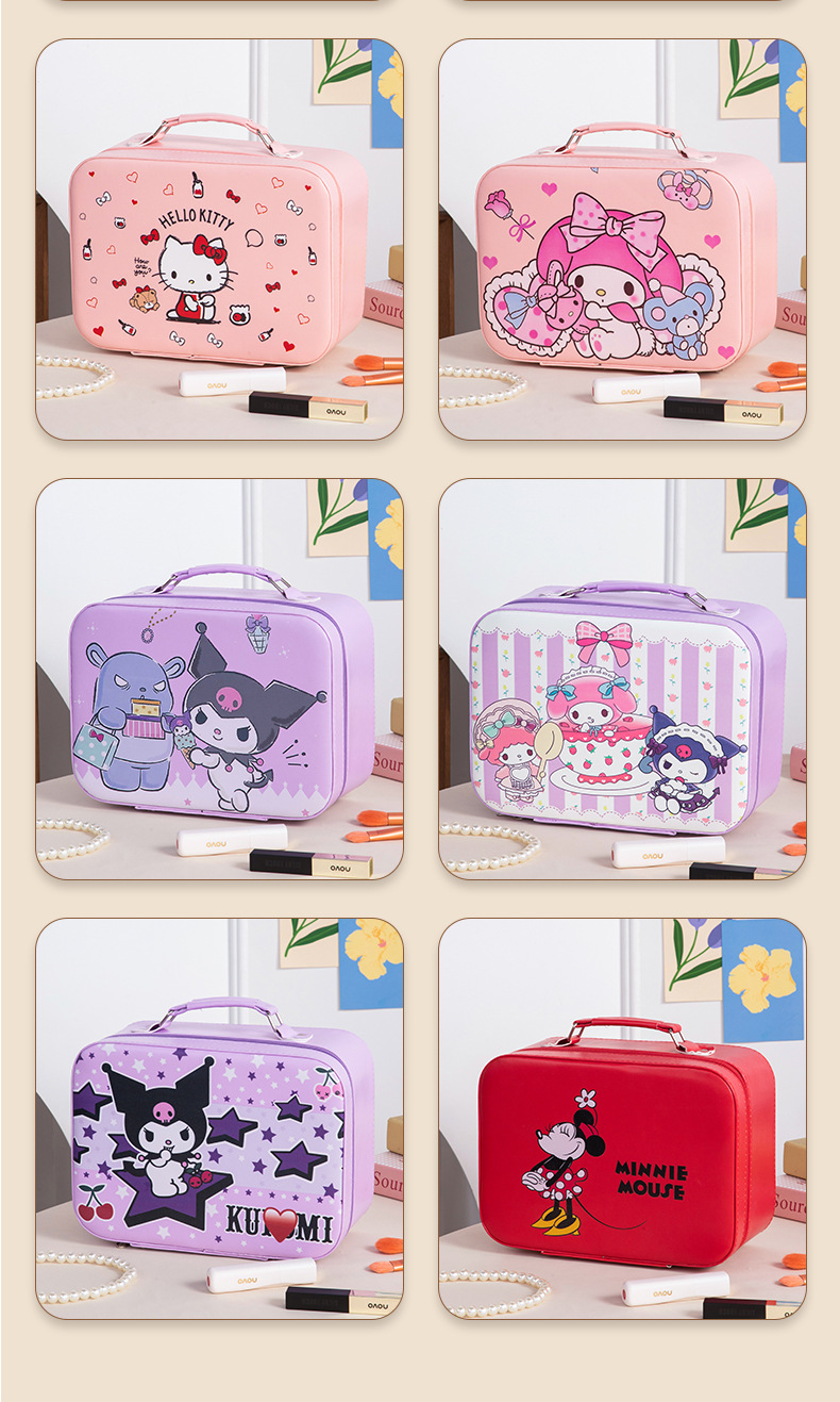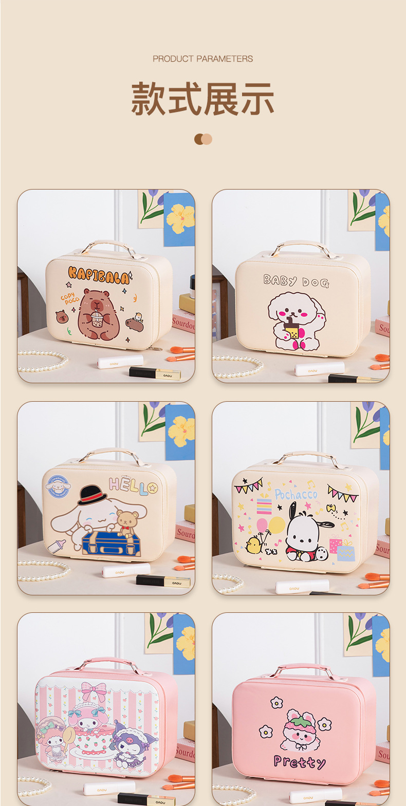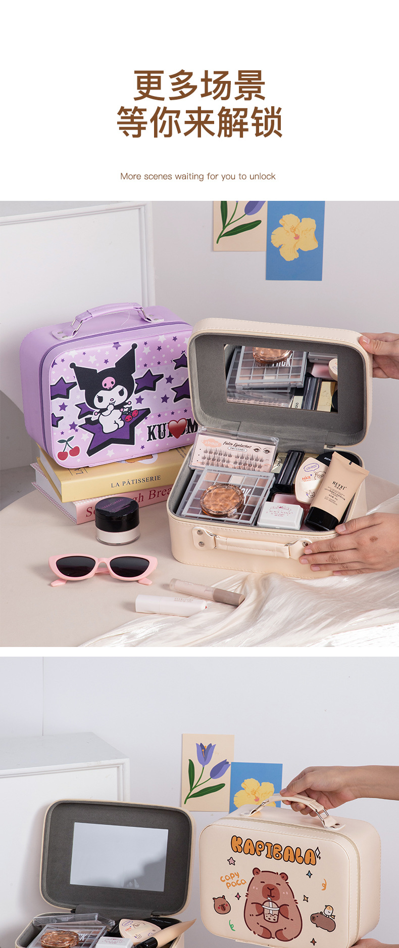 新款卡通大镜子化妆箱高颜值儿童伴手礼收纳箱大容量PU防水手提箱