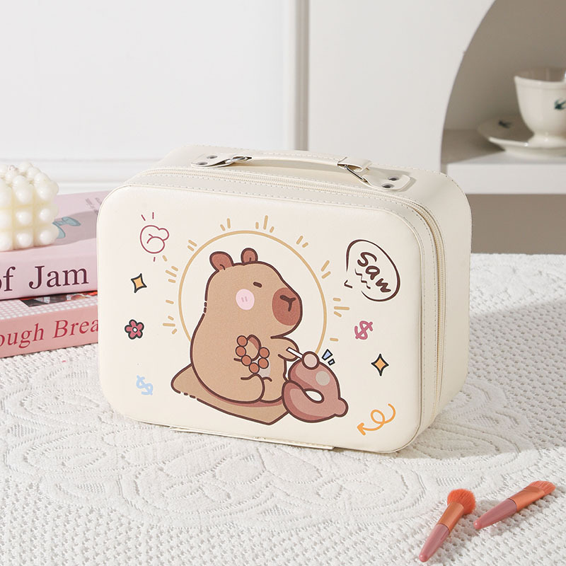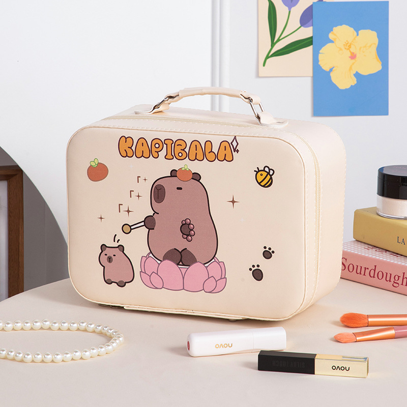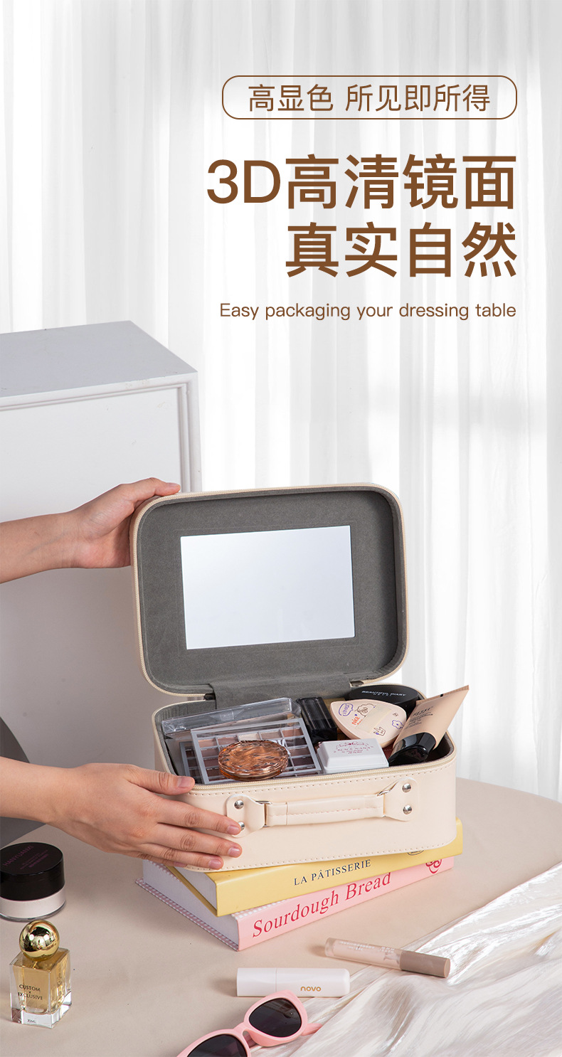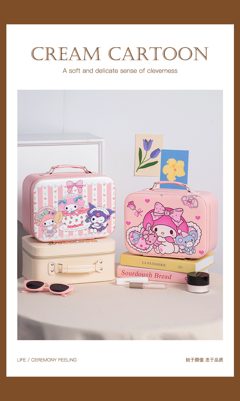 新款卡通大镜子化妆箱高颜值儿童伴手礼收纳箱大容量PU防水手提箱