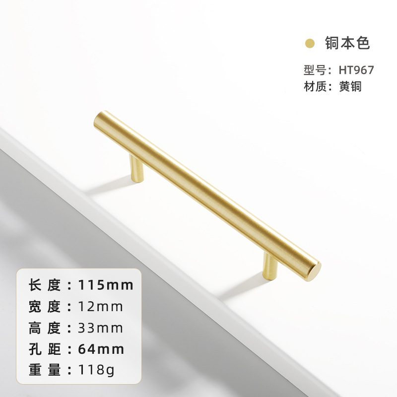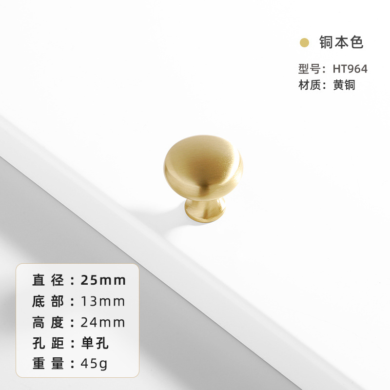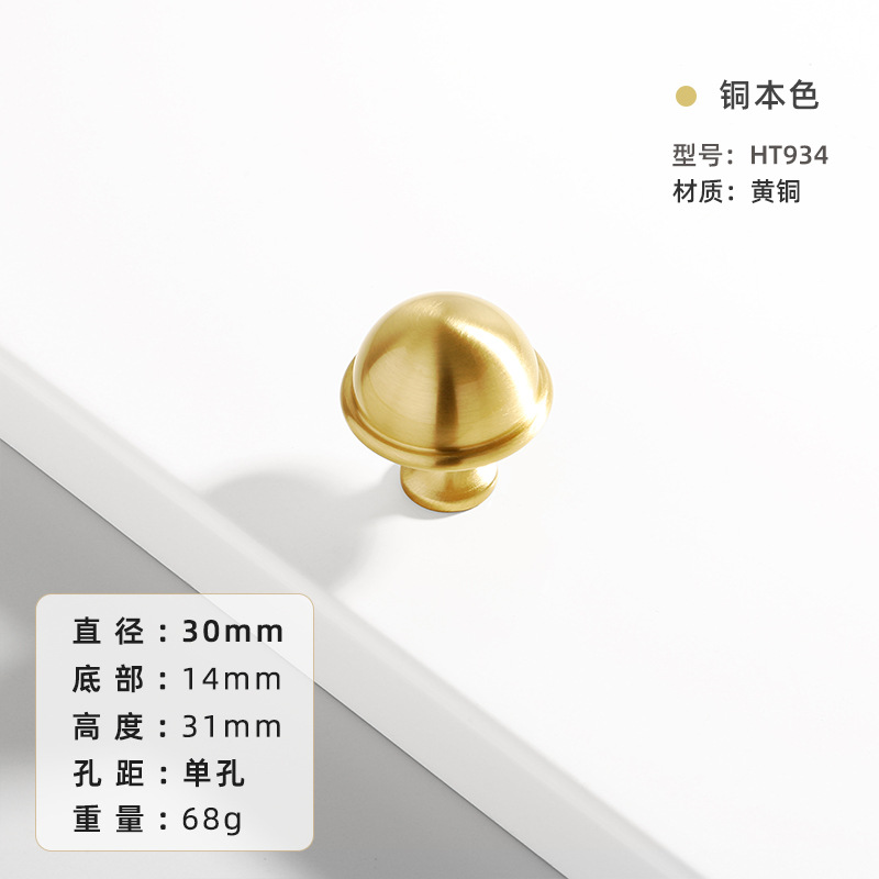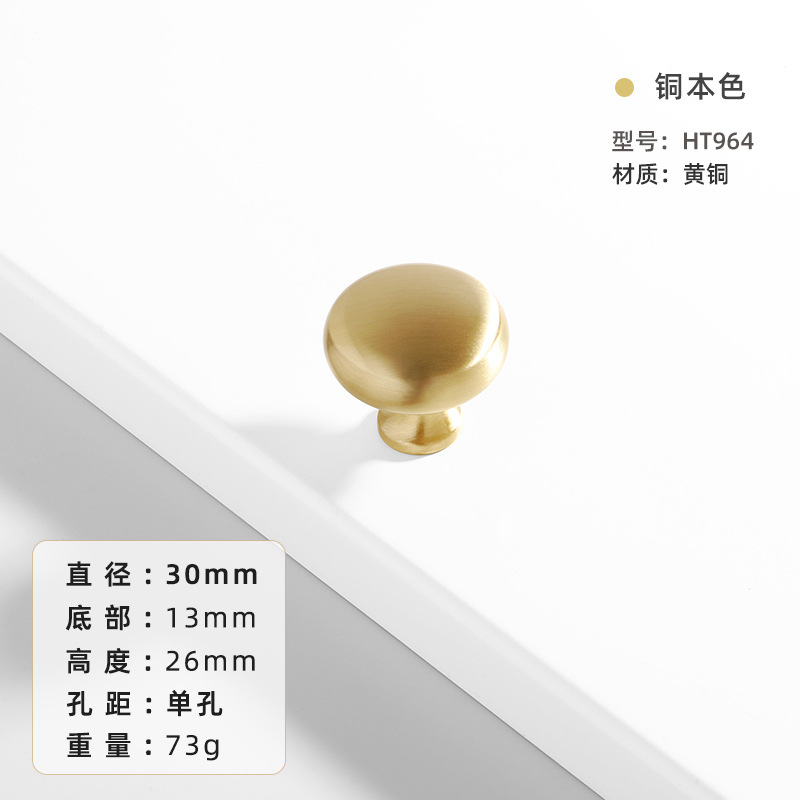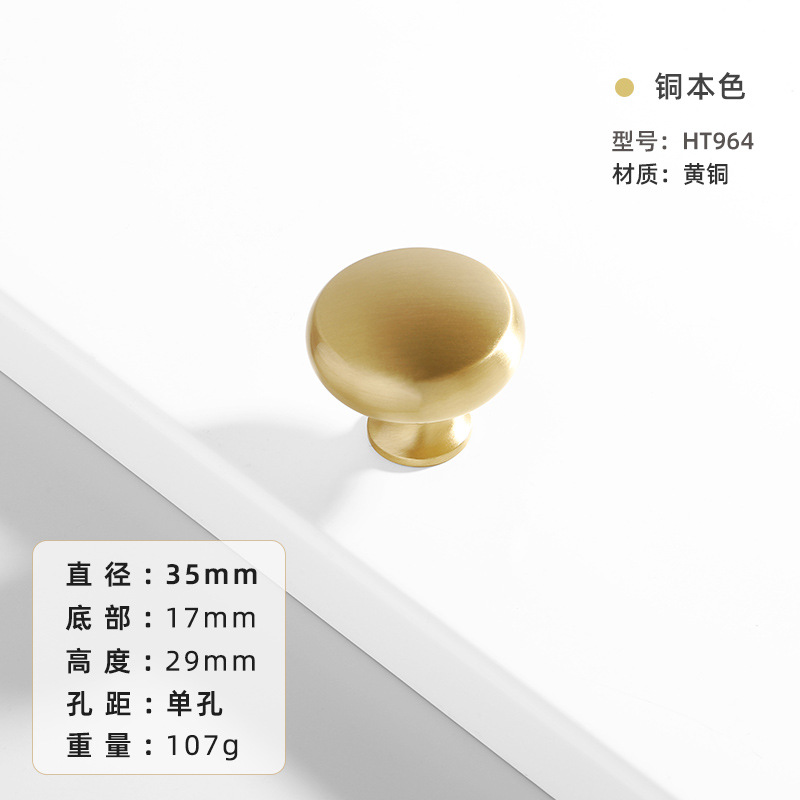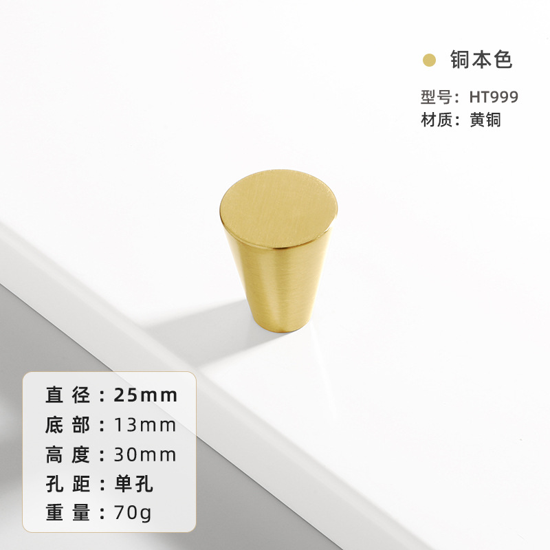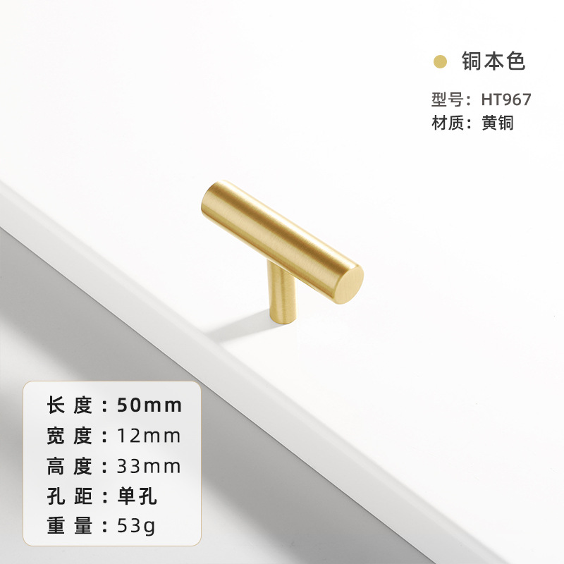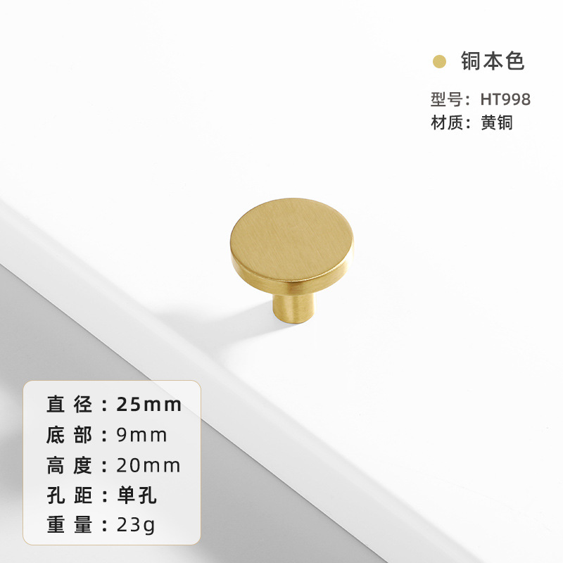 北欧简约实心黄铜拉手五金抽屉衣橱柜门把手单孔新中式金色拉手