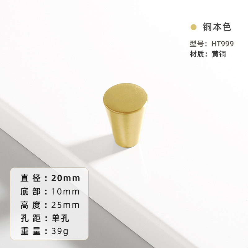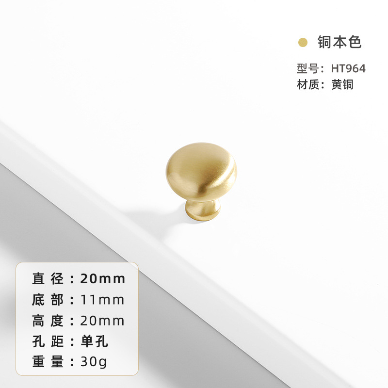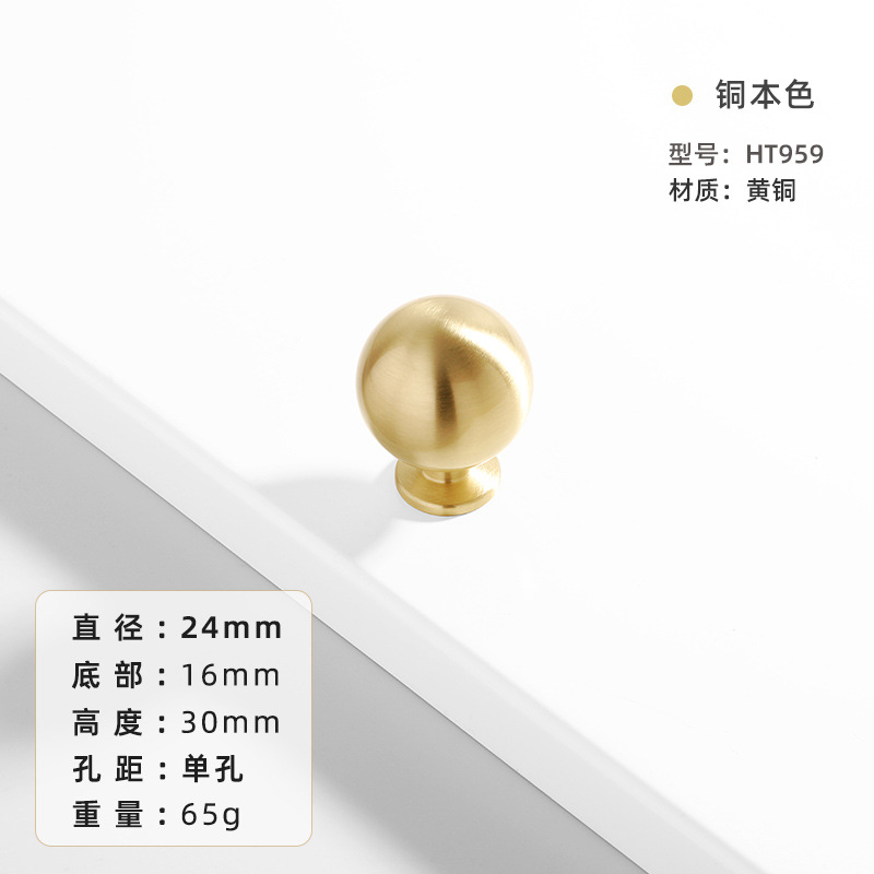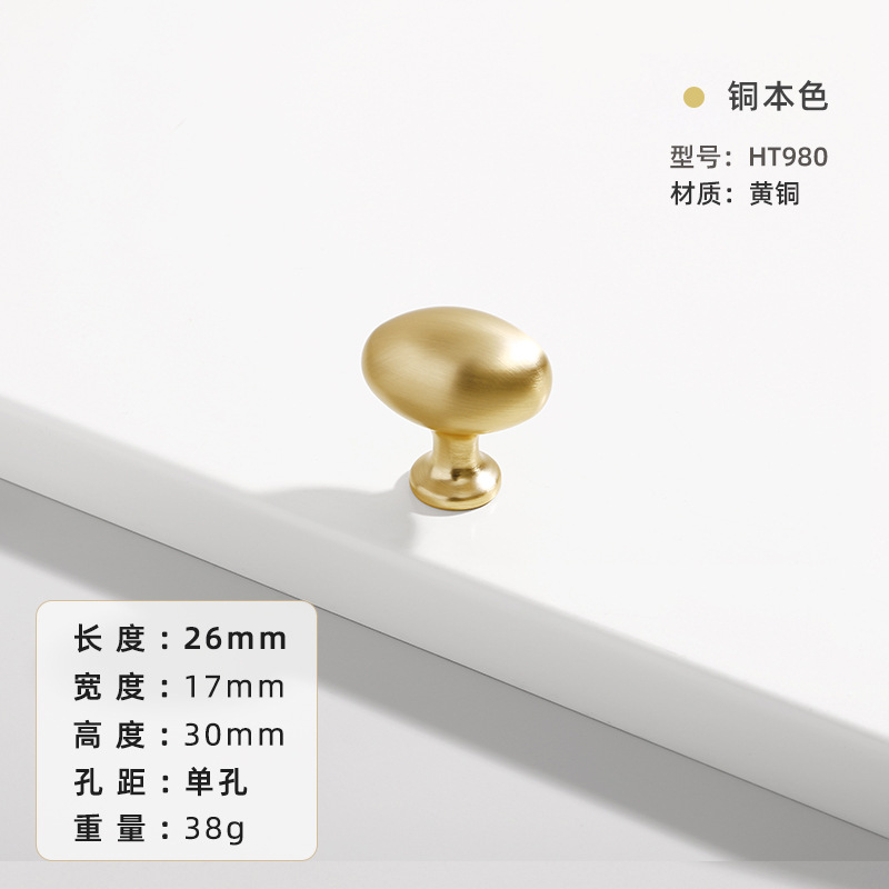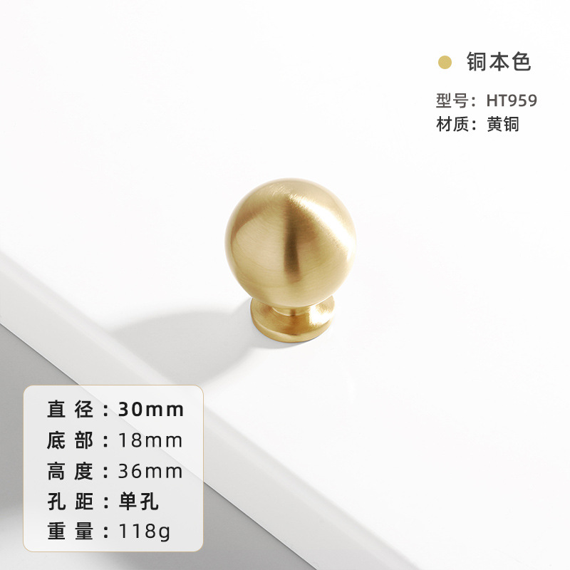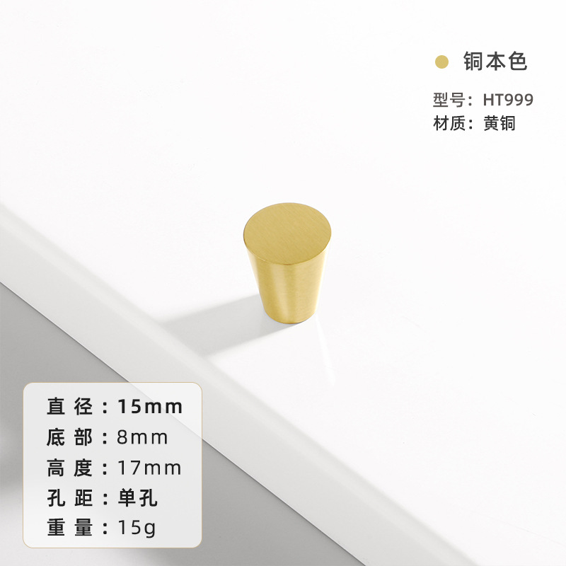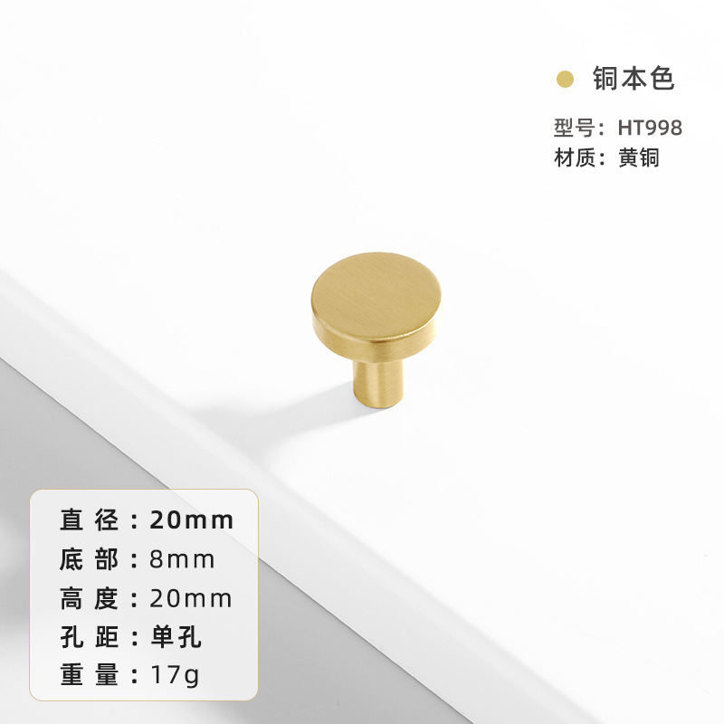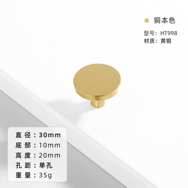 北欧简约实心黄铜拉手五金抽屉衣橱柜门把手单孔新中式金色拉手
