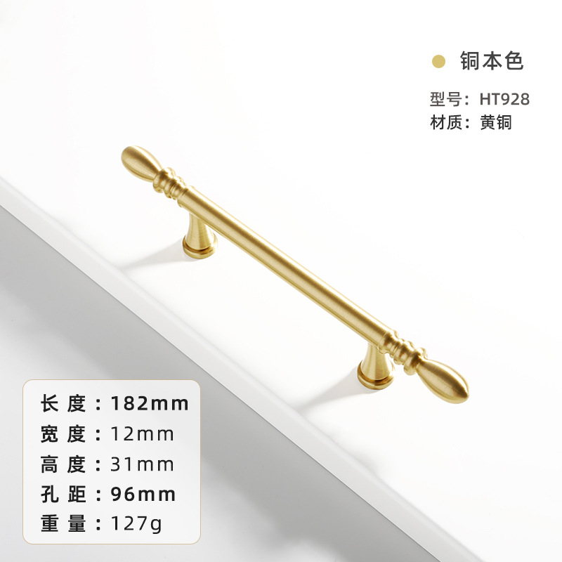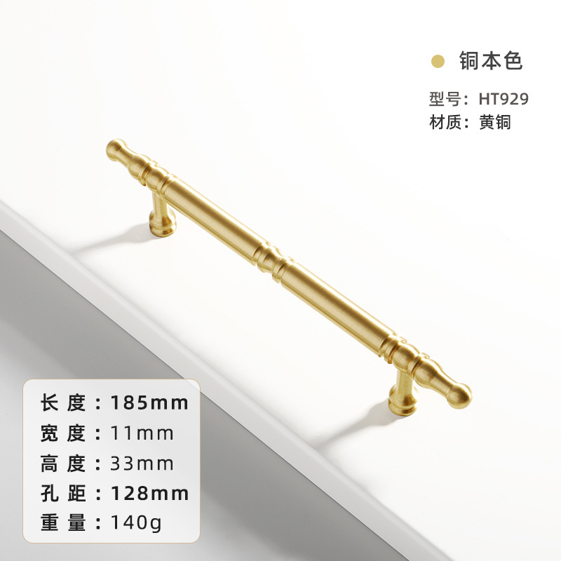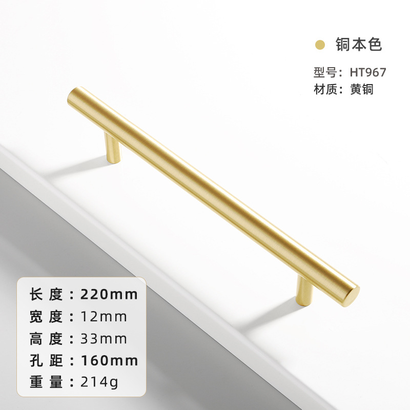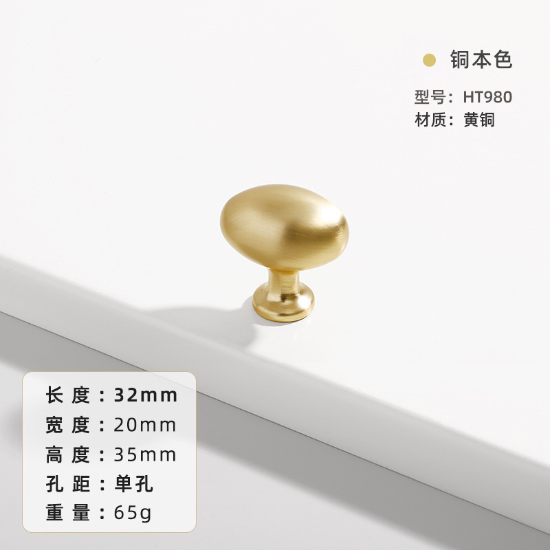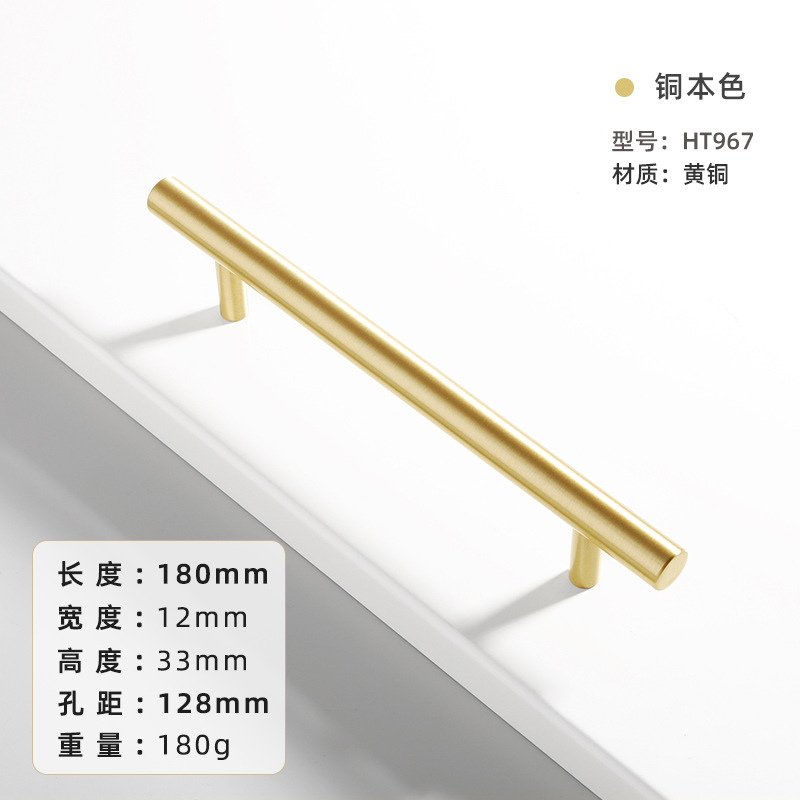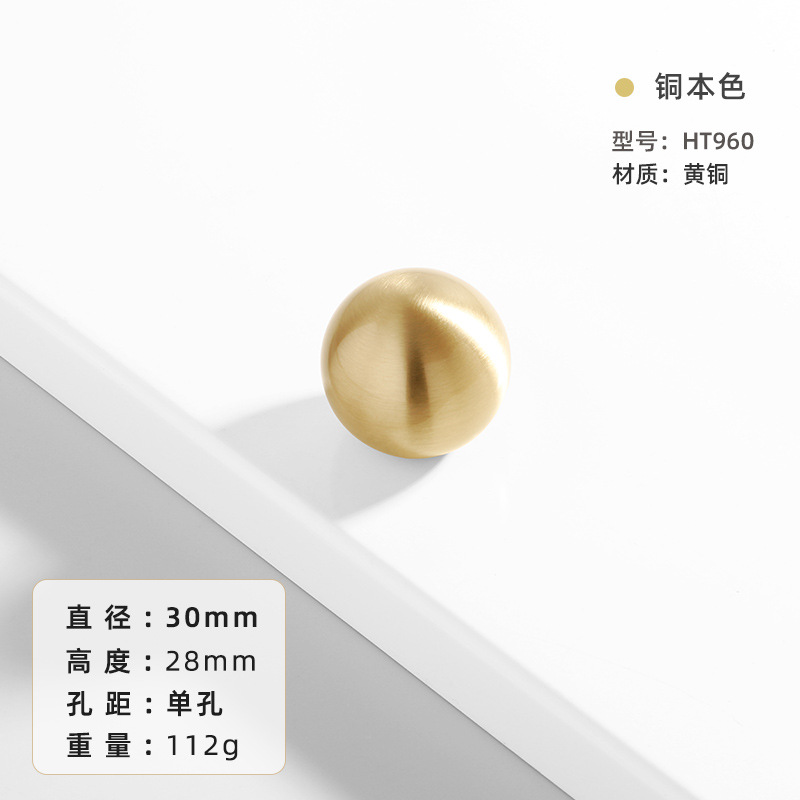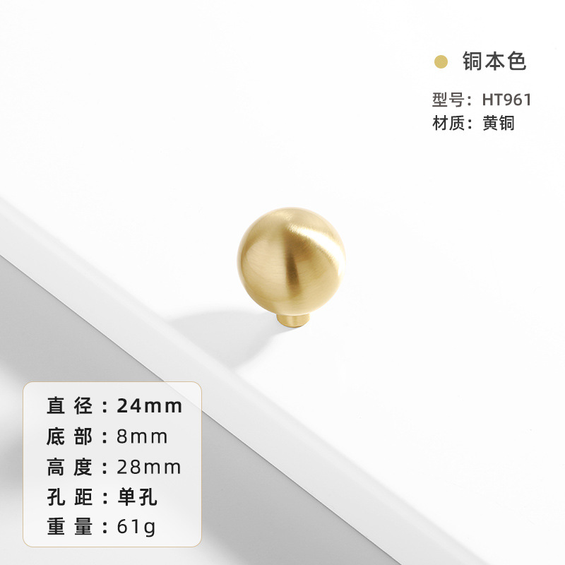 北欧简约实心黄铜拉手五金抽屉衣橱柜门把手单孔新中式金色拉手