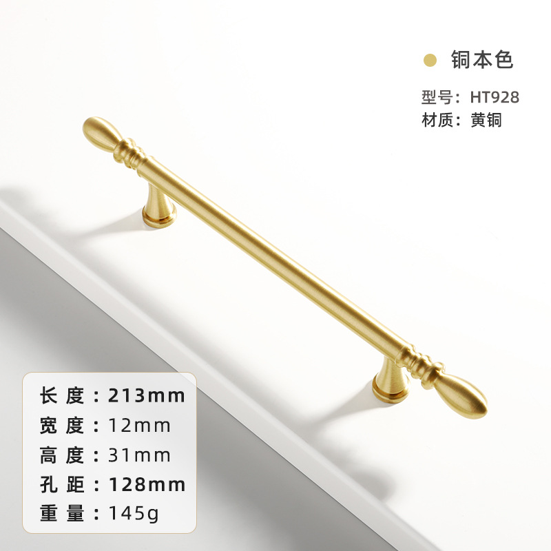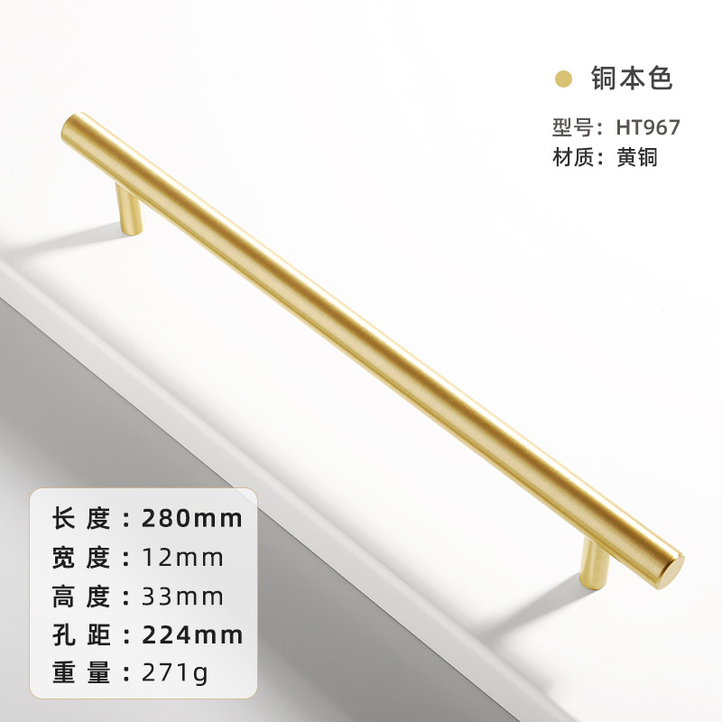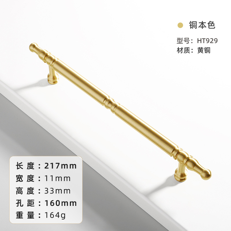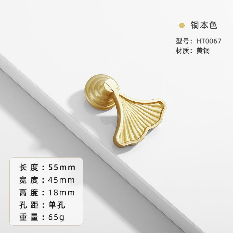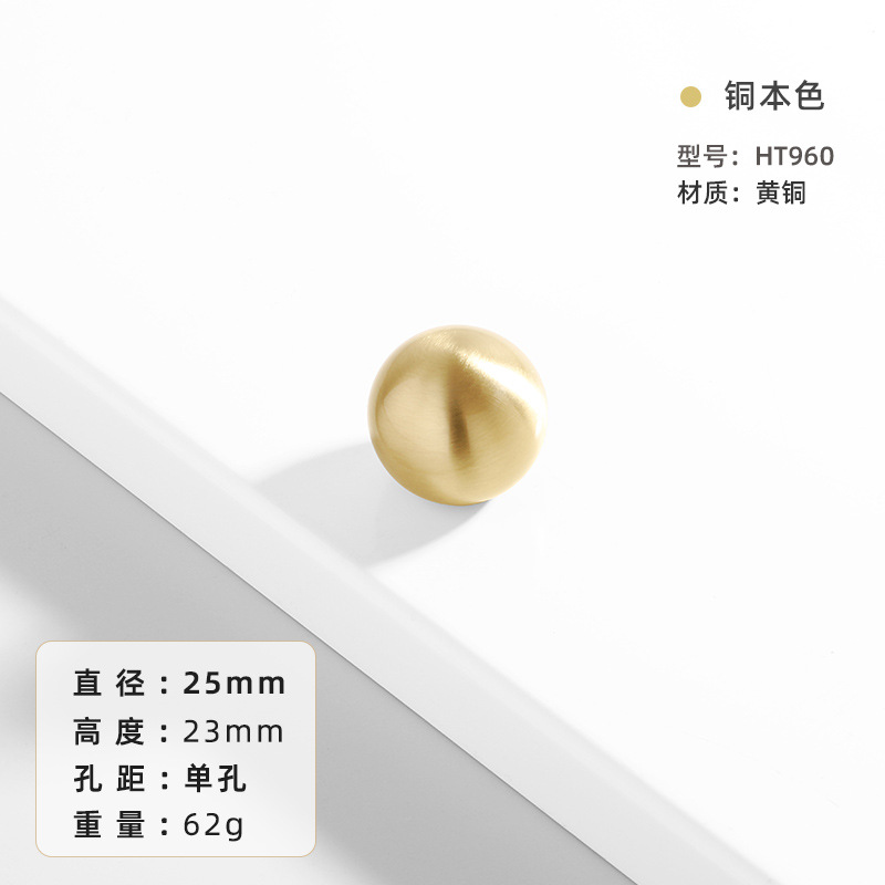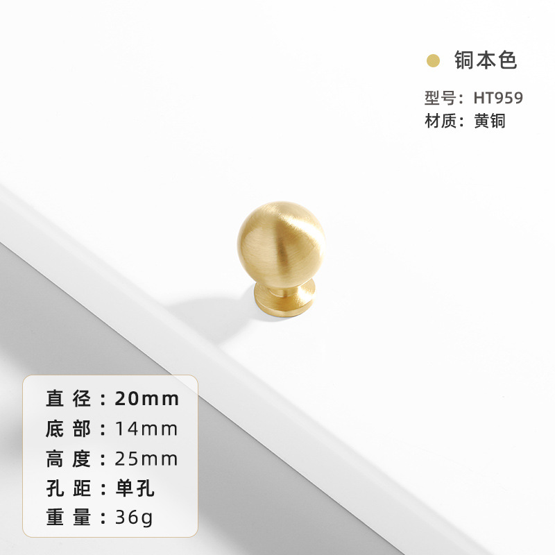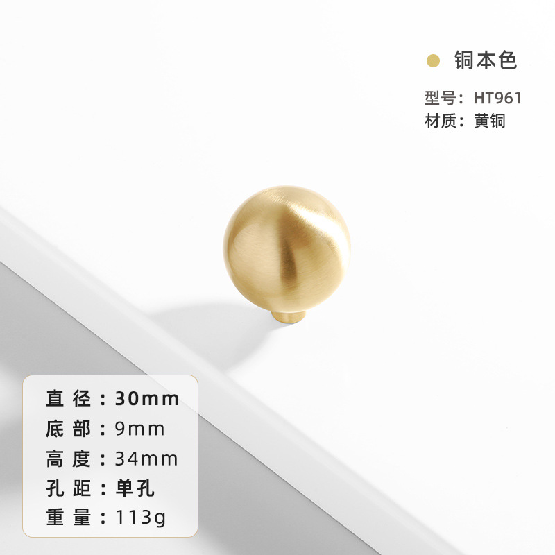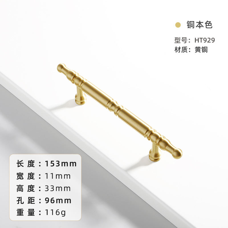 北欧简约实心黄铜拉手五金抽屉衣橱柜门把手单孔新中式金色拉手
