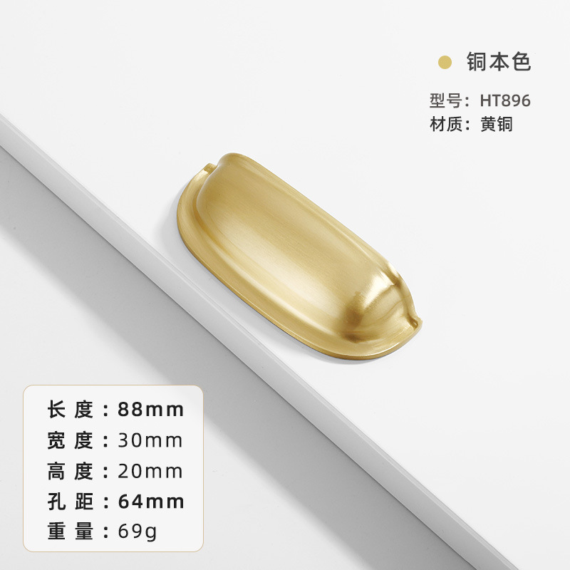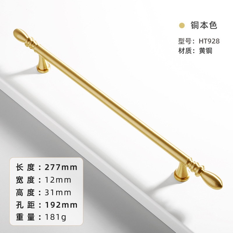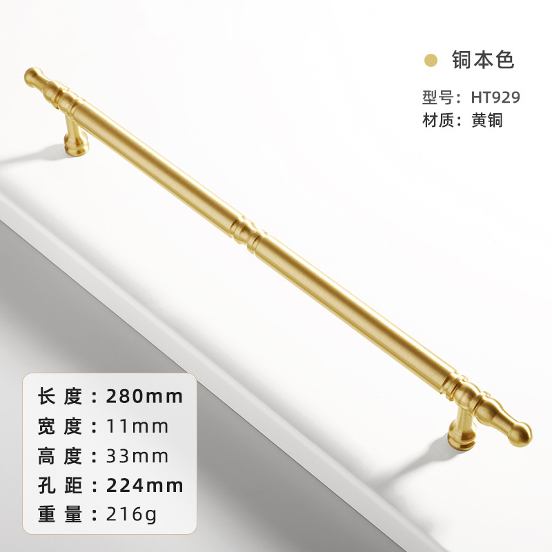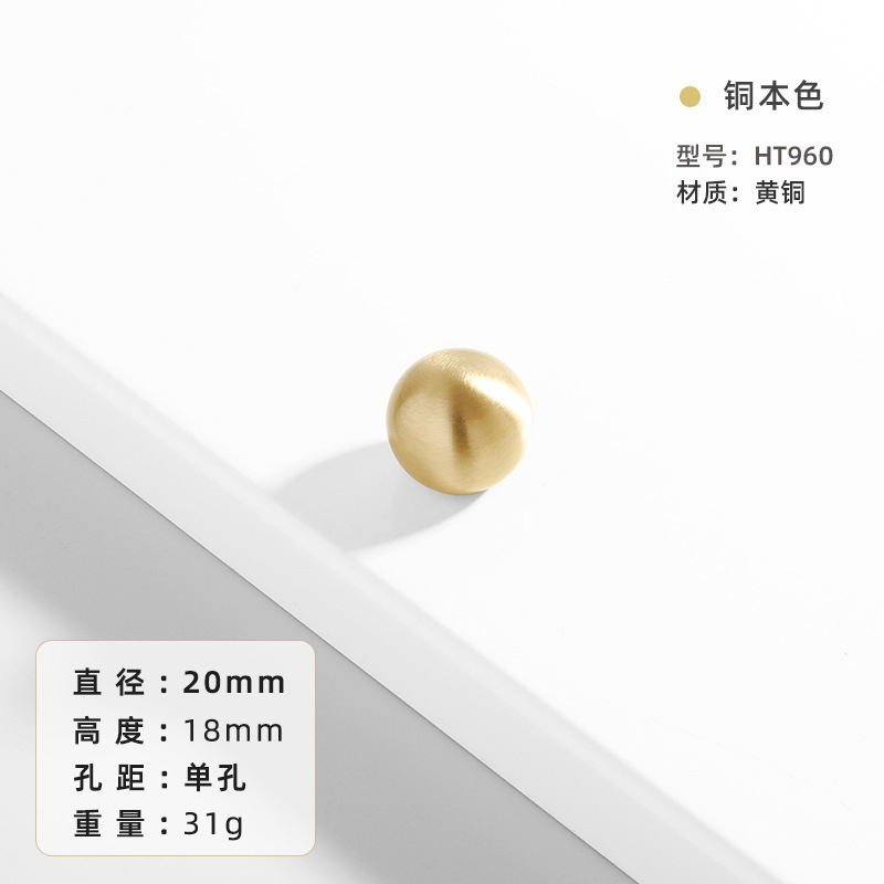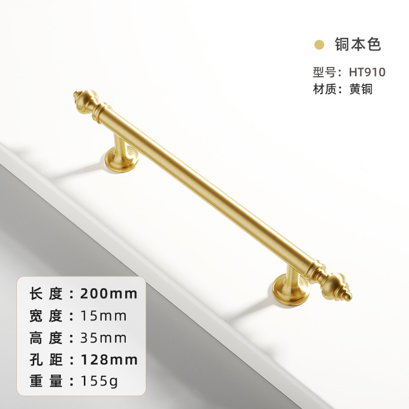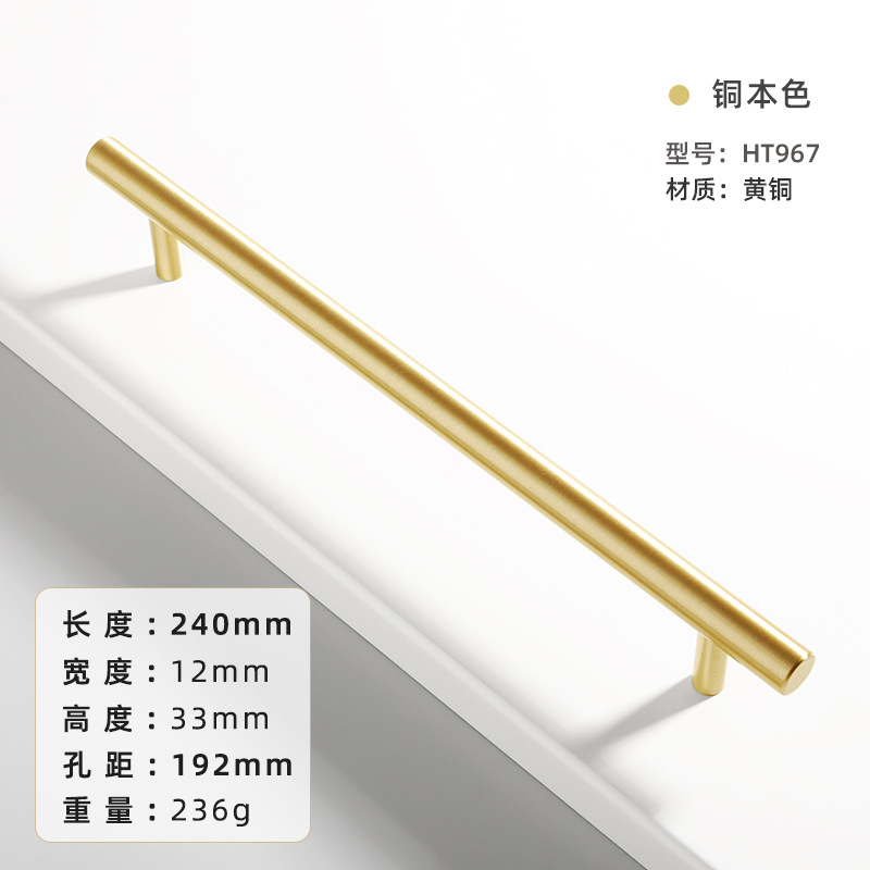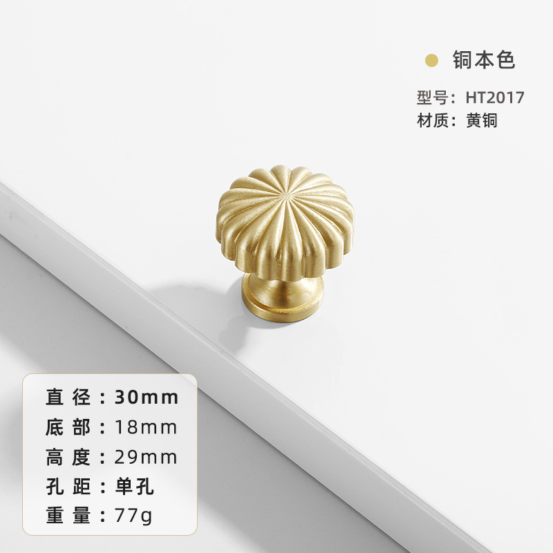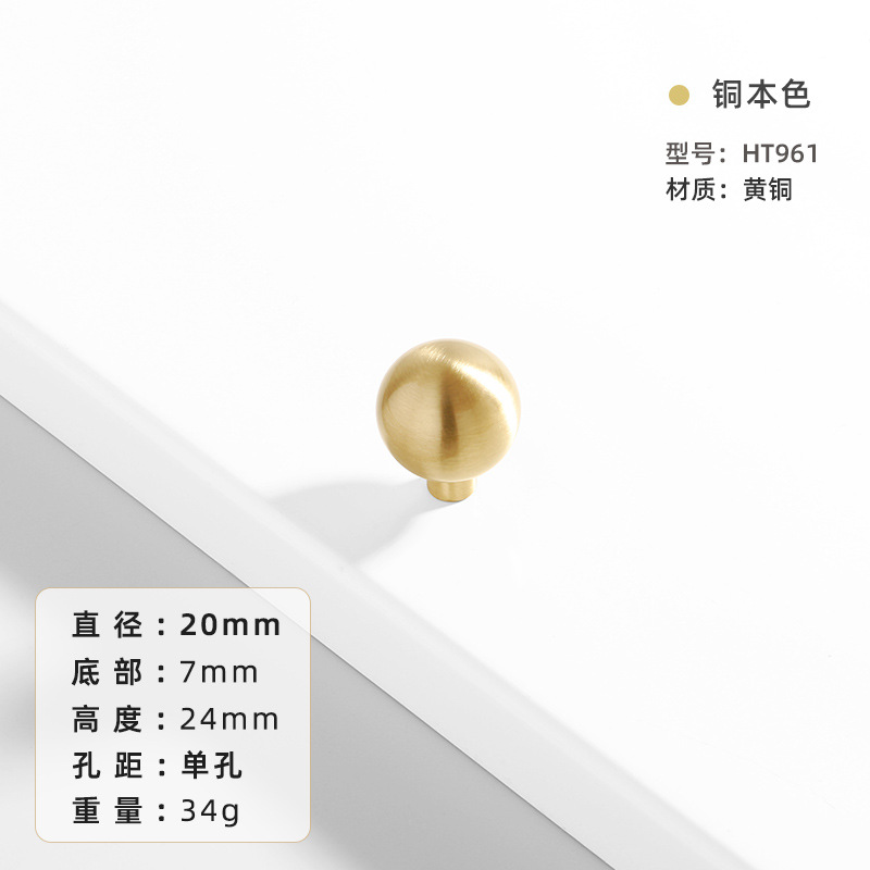 北欧简约实心黄铜拉手五金抽屉衣橱柜门把手单孔新中式金色拉手
