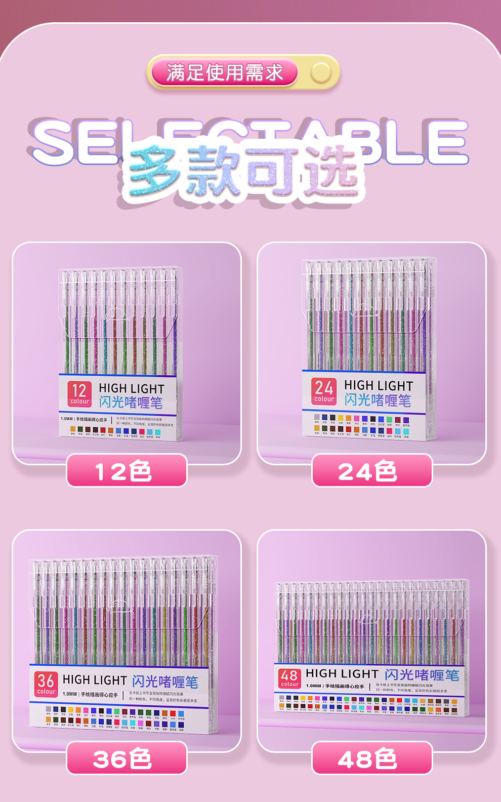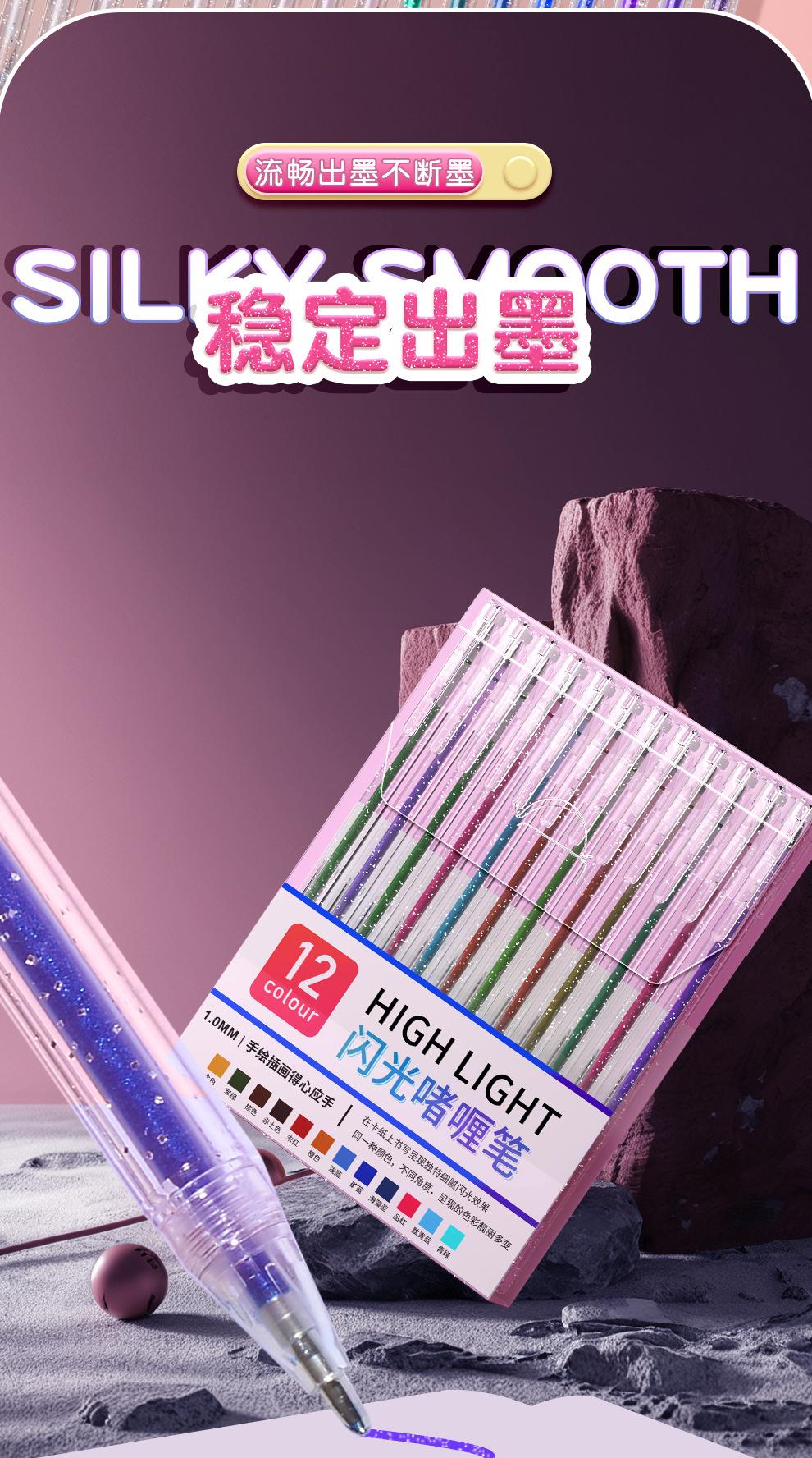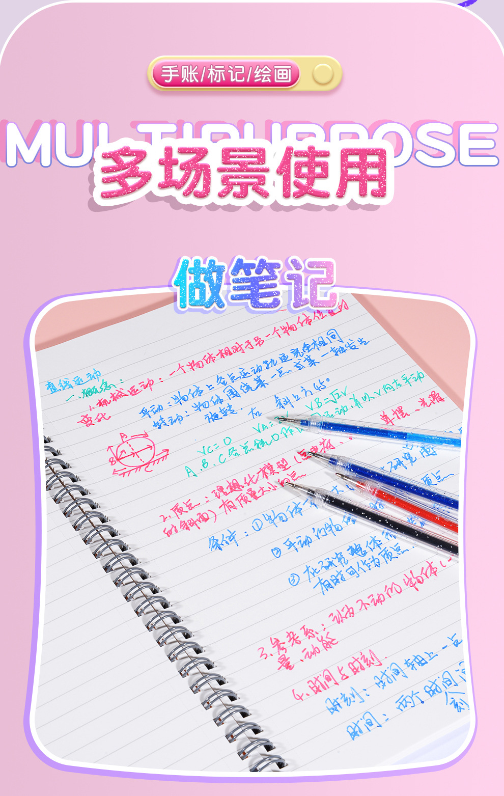 闪光啫喱笔套装彩色中性笔绘画做笔记专用手帐学生