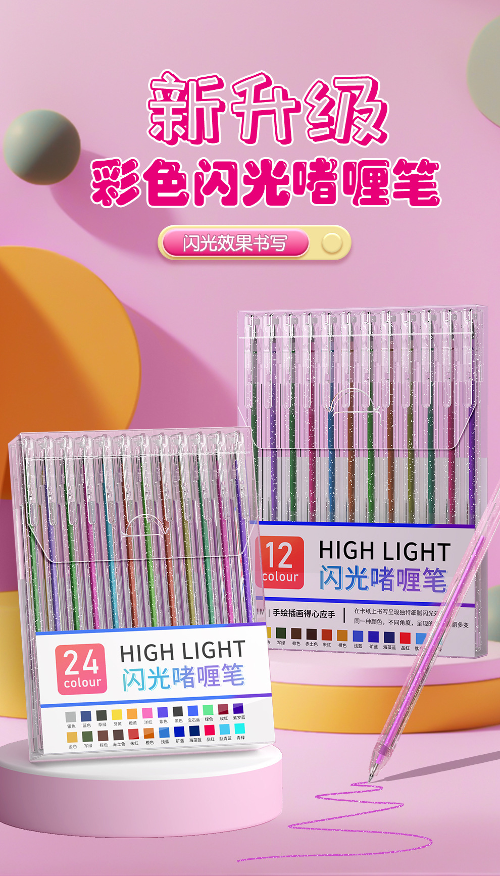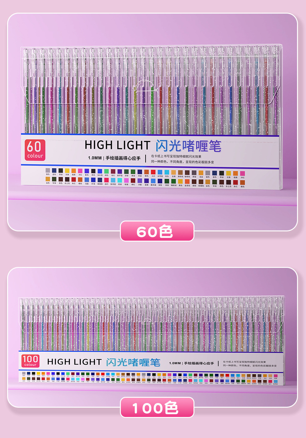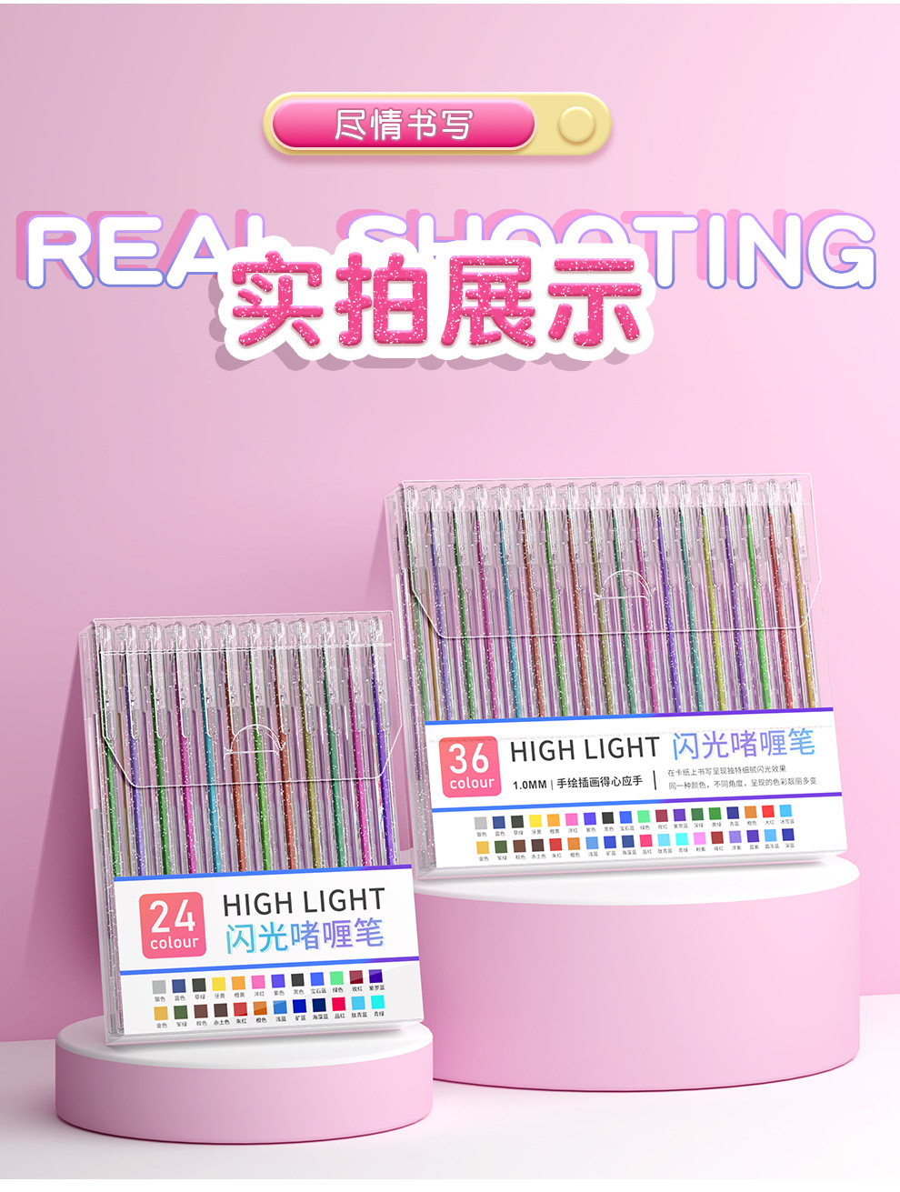 闪光啫喱笔套装彩色中性笔绘画做笔记专用手帐学生