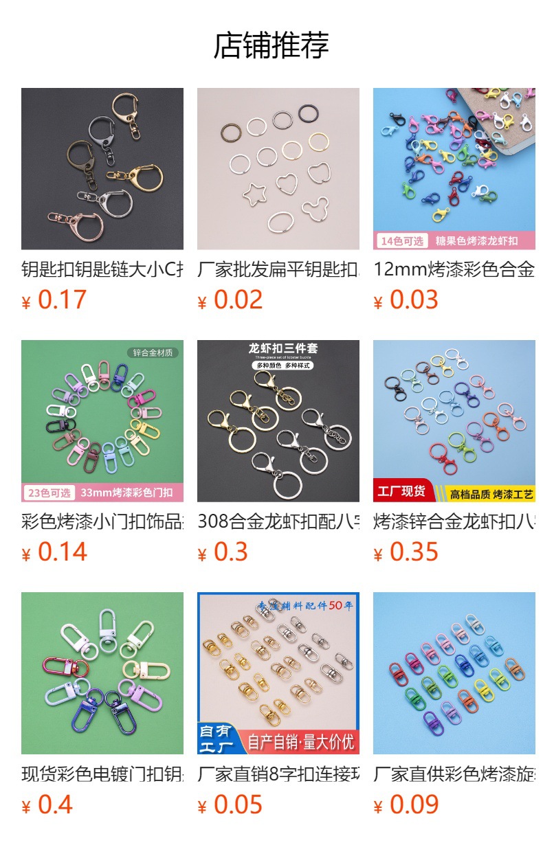 厂家锌合金钥匙扣圆龙虾扣三件套配八字扣钥匙圈创意diy玩偶挂件