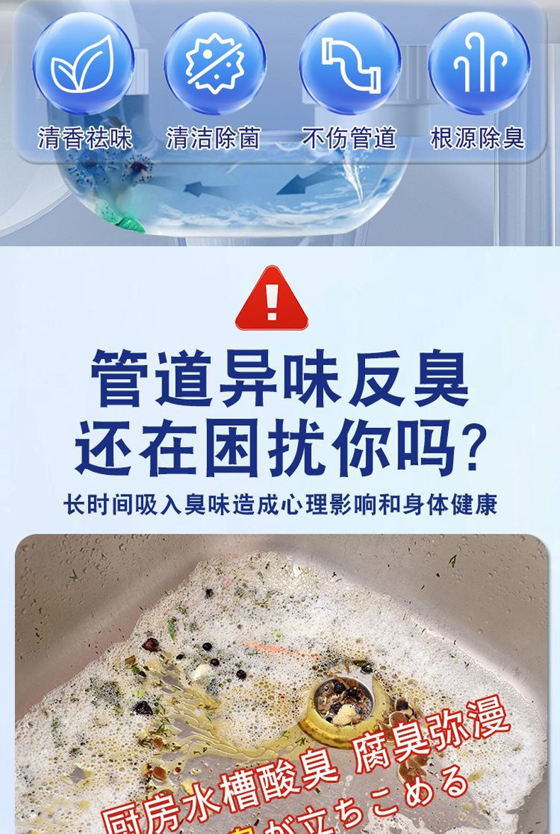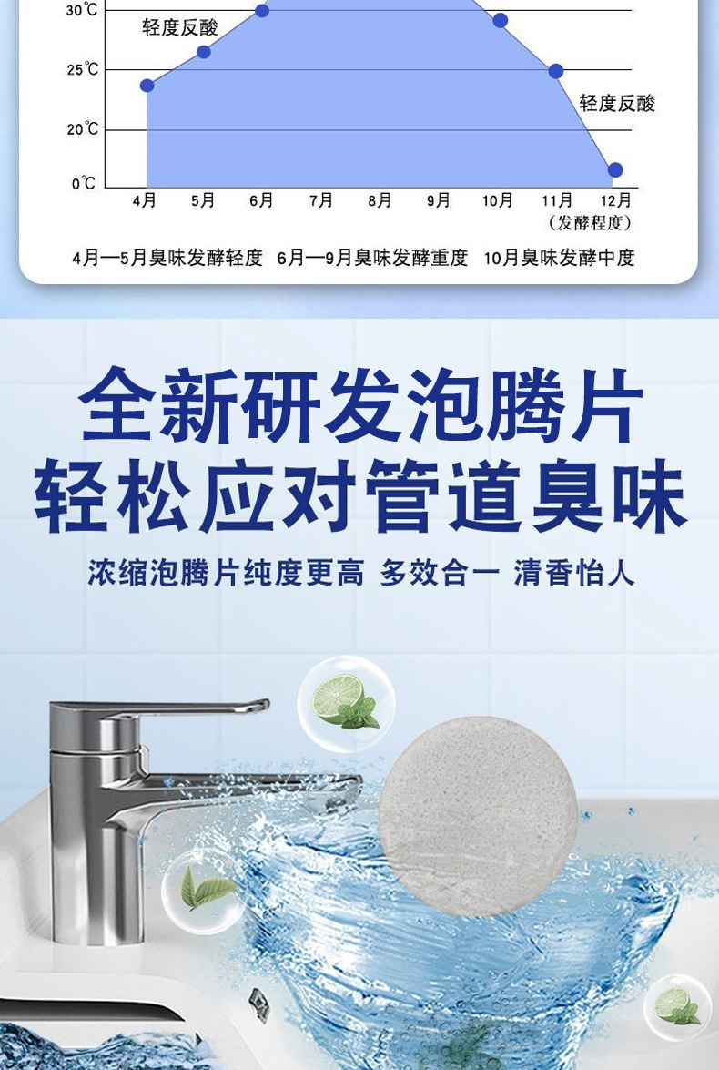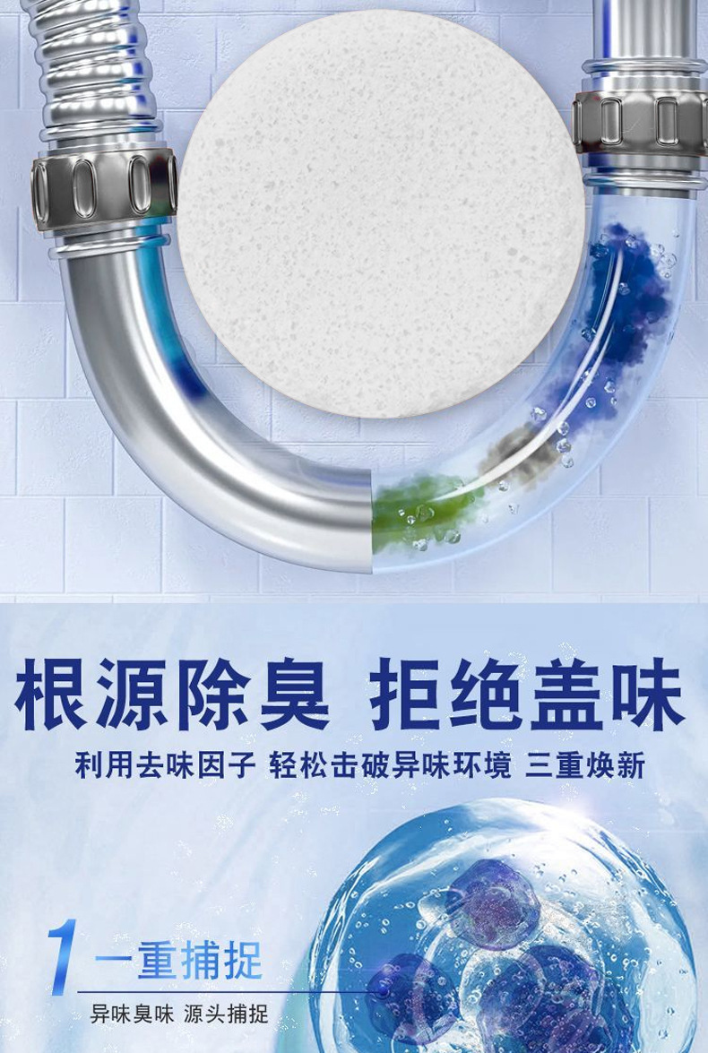 下水道除臭泡腾片卫生间去异味厨房地漏防臭厕所反味根源除味神器