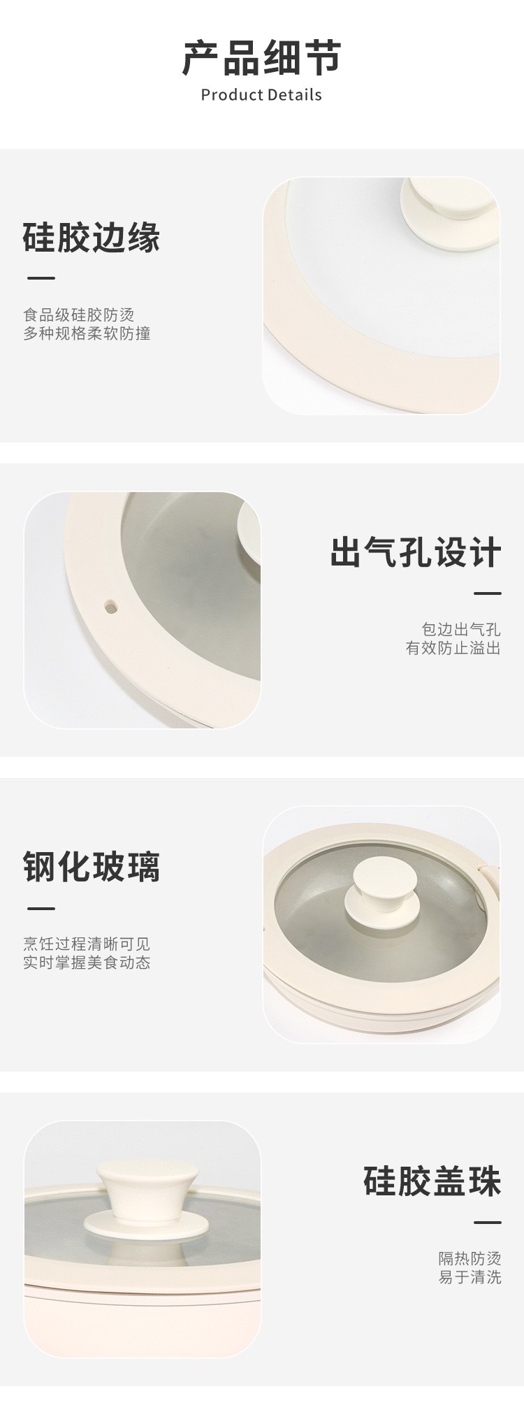 硅胶缺口锅盖汤锅奶锅炒锅盖钢化玻璃盖子耐热硅胶通用防溢锅盖