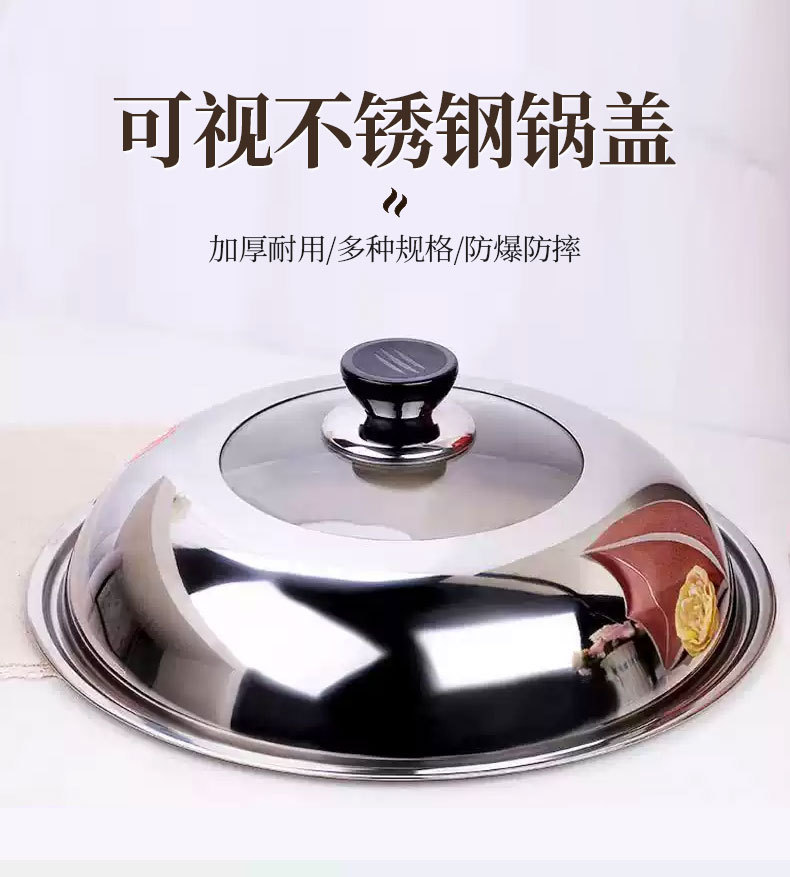 批发不锈钢锅盖家用钢化玻璃锅盖通用型可视化耐高温防爆 炒菜锅