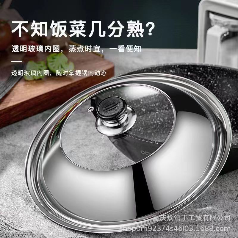 批发组合盖家用炒菜锅盖子耐高温盖子加厚透视防爆玻璃不锈钢锅盖