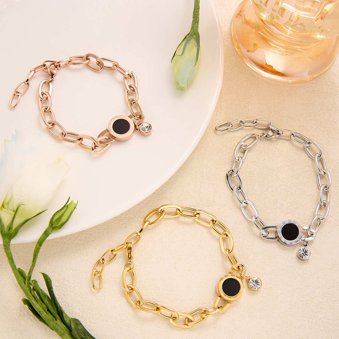 跨境时尚罗马数字白钻手链女法式轻奢钛钢镶钻手链欧美风手饰批发