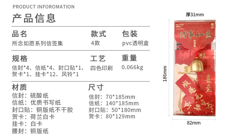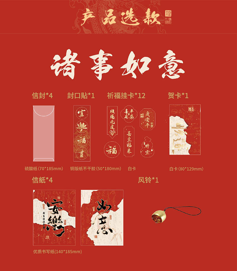 纸先生国风风铃信签集 所念如愿 创意祝福信纸信封铃铛挂件套装