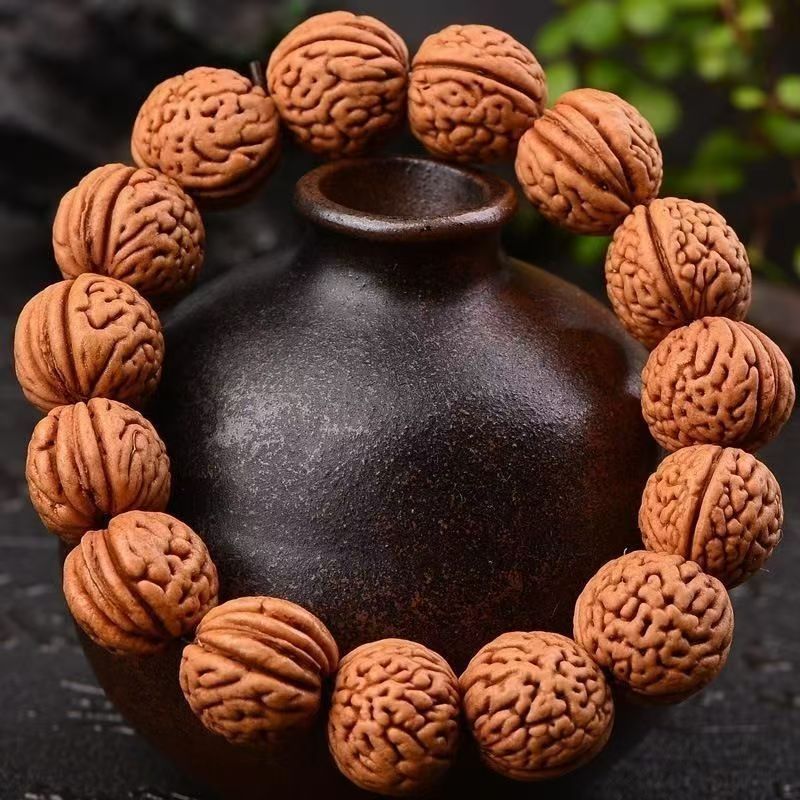 天然桃木桃核文玩手串桃核脑纹盘玩单圈手把件民族风念珠手链批发