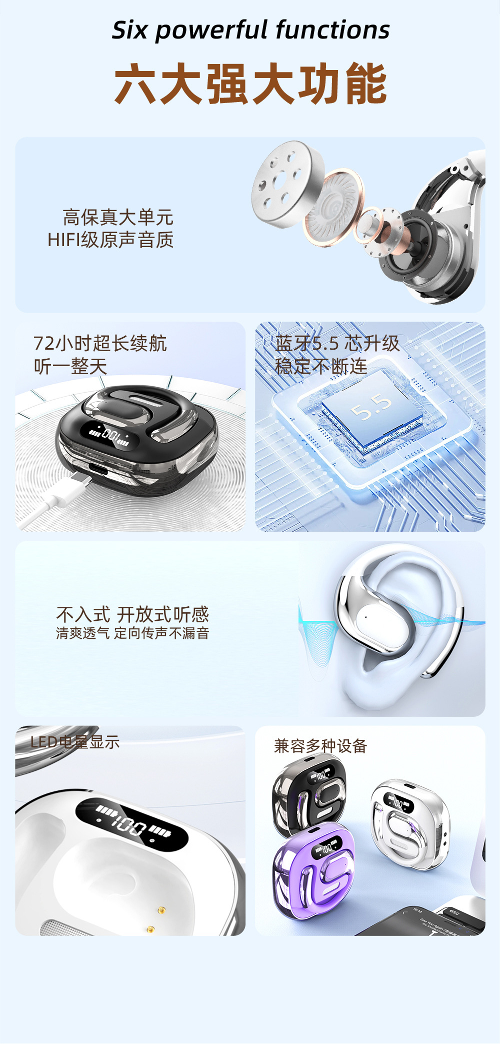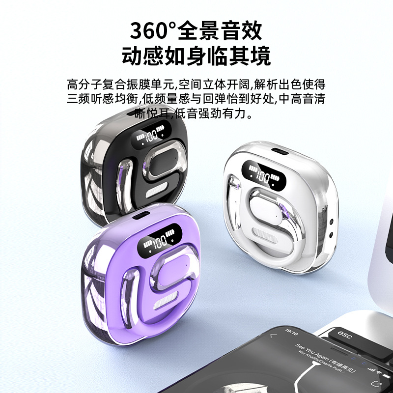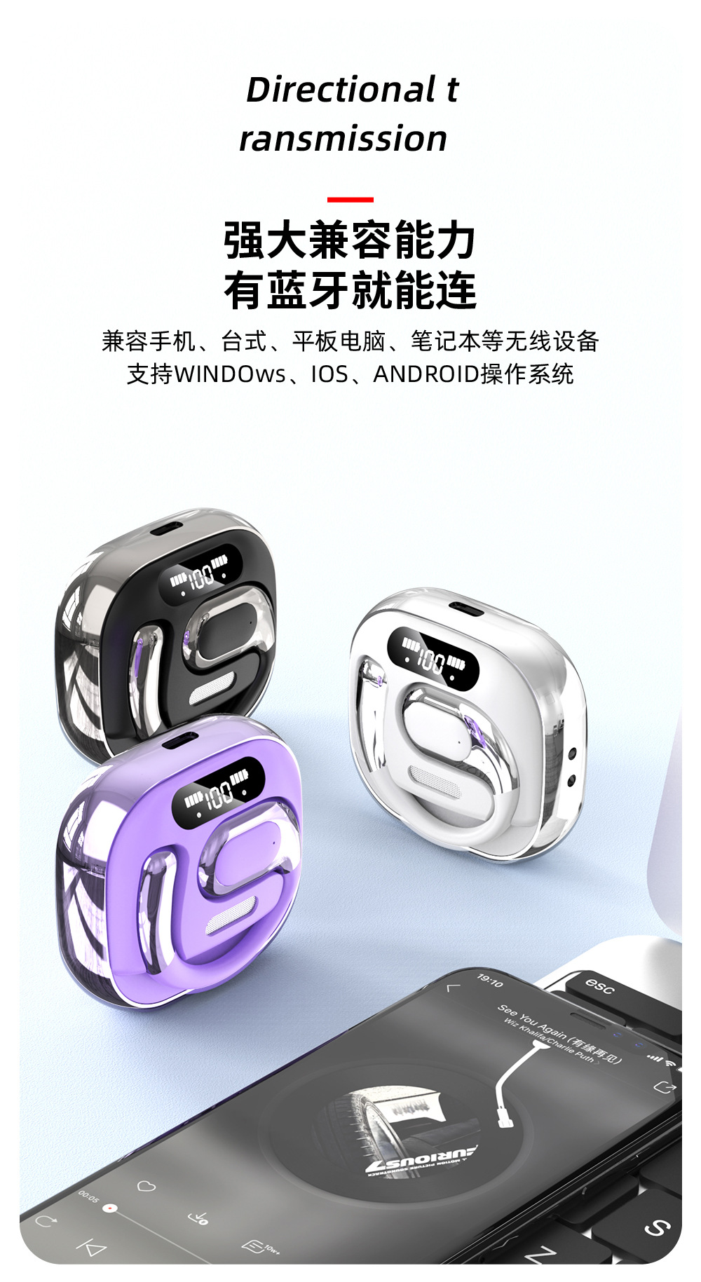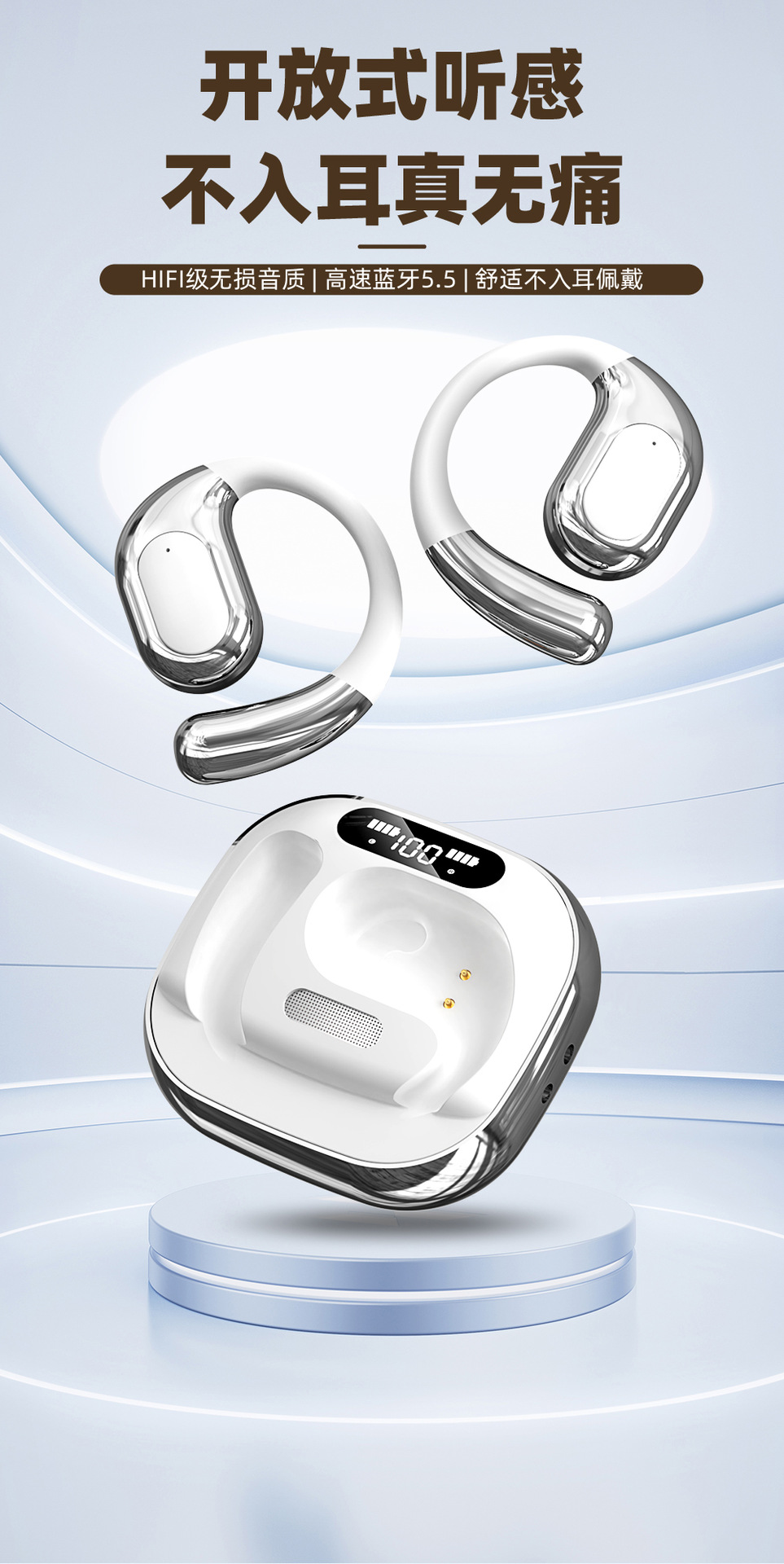B02跨境新品蓝牙耳机LED数显无线5.5挂耳式OWS立体声降噪蓝牙耳机