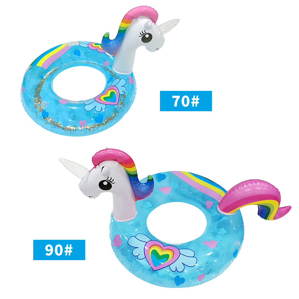 夏季环保PVC加厚双气囊泳池漂浮圈充气印花亮片成人腋下游泳圈