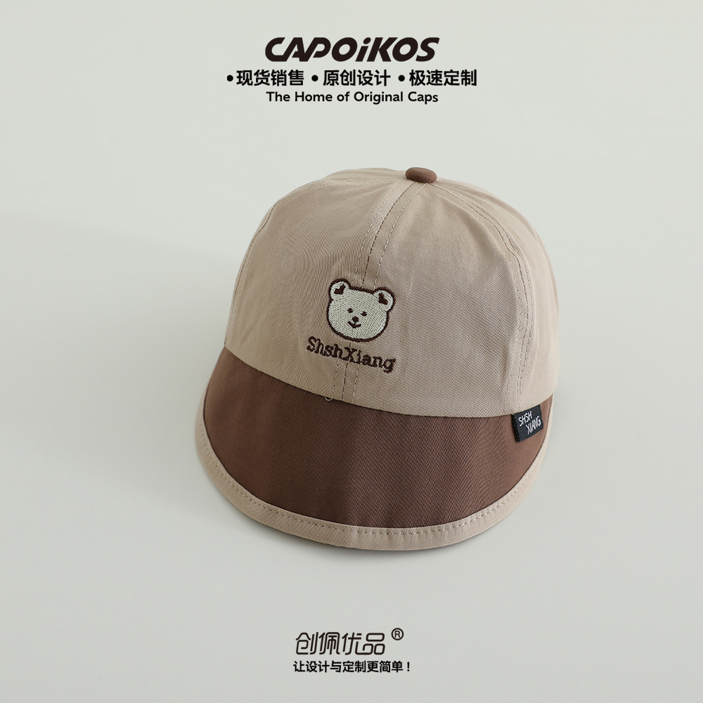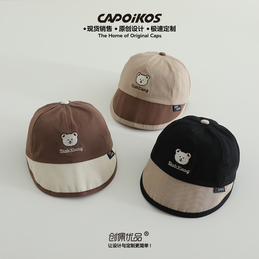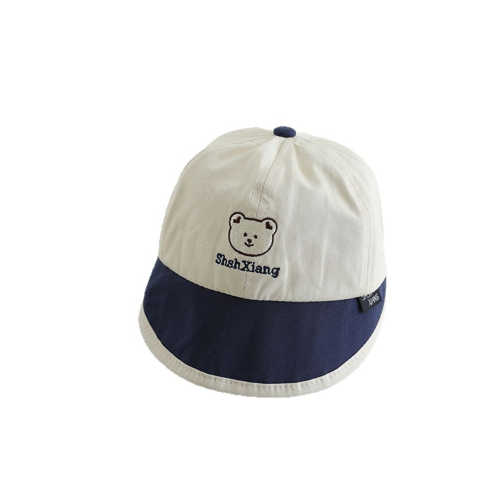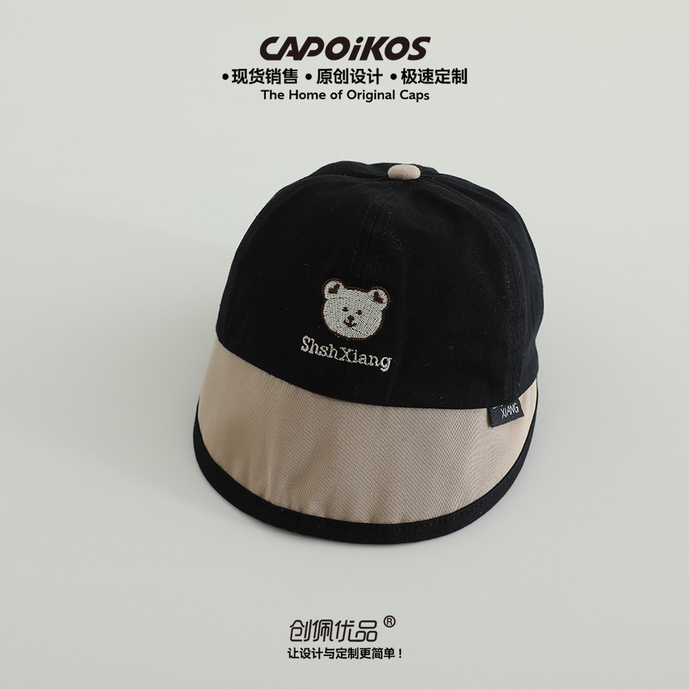 儿童帽子春夏新款卡通小熊刺绣大沿帽男女宝宝百搭遮阳帽潮