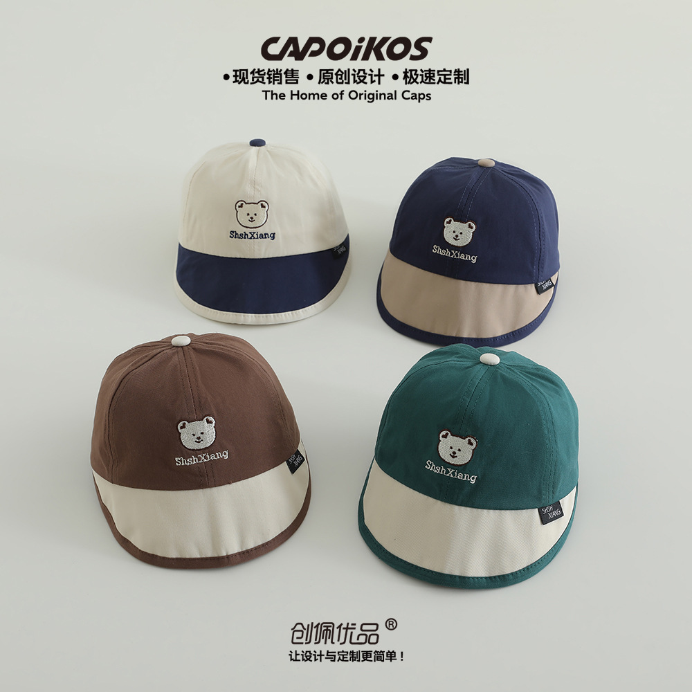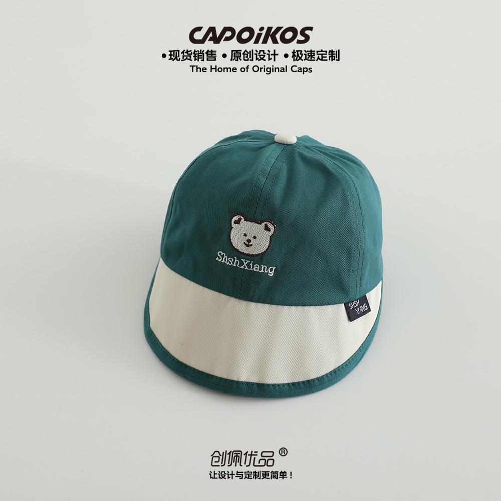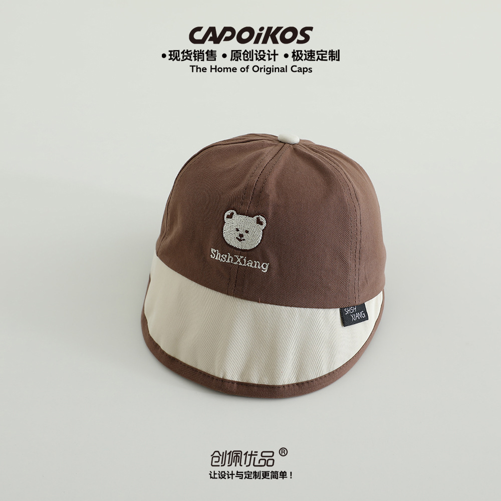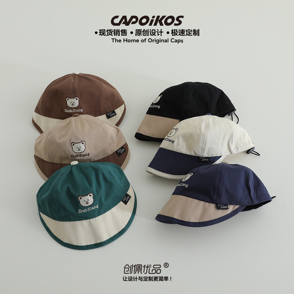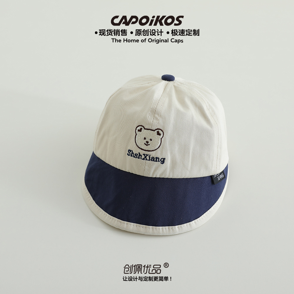 儿童帽子春夏新款卡通小熊刺绣大沿帽男女宝宝百搭遮阳帽潮