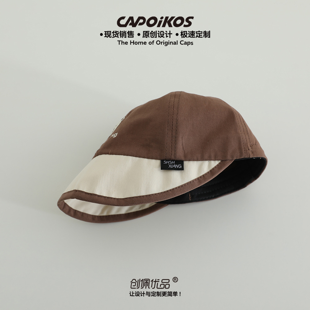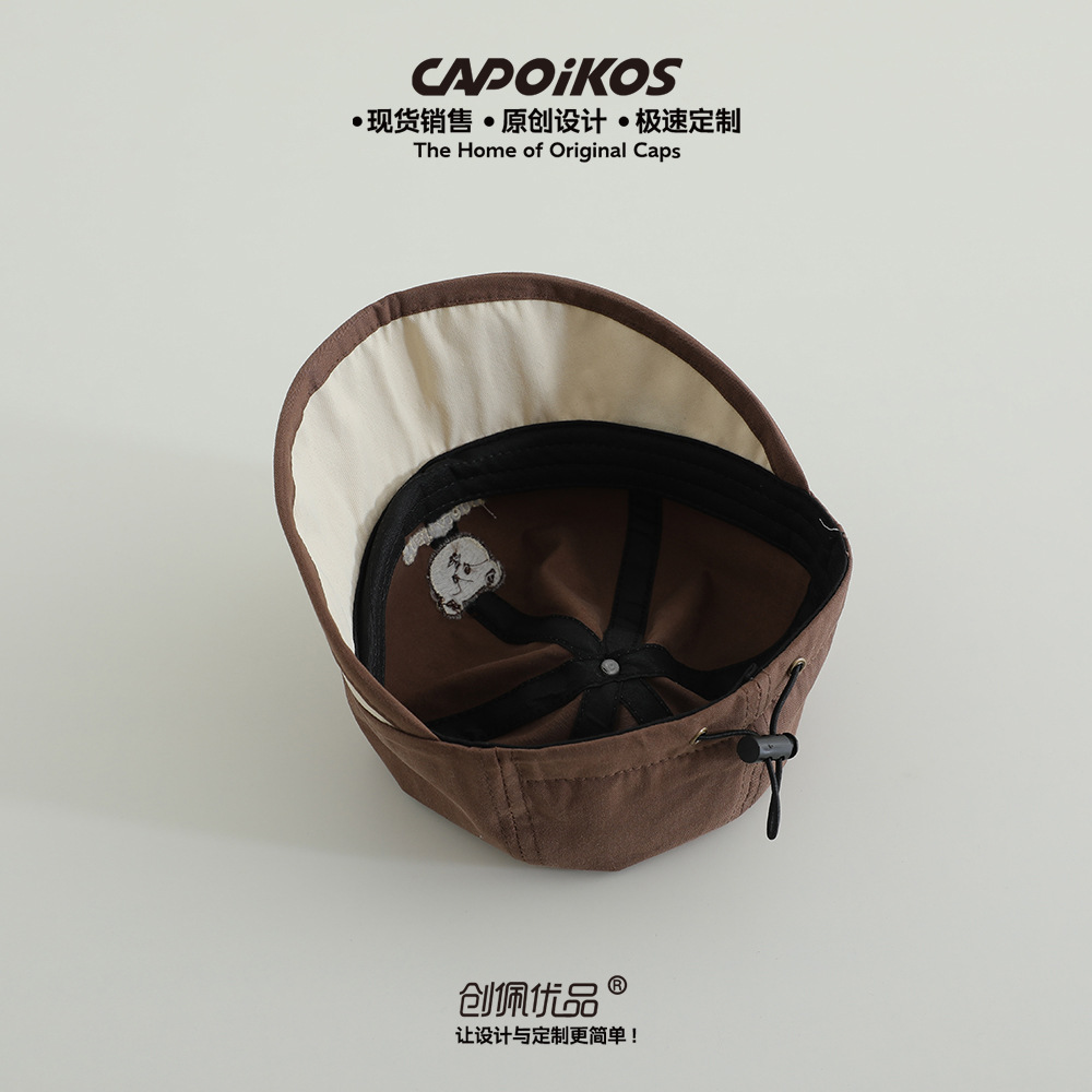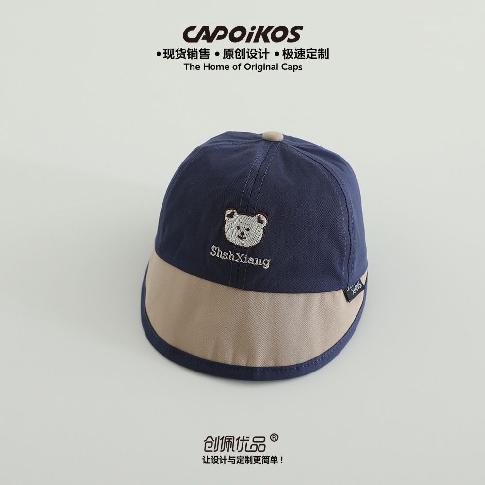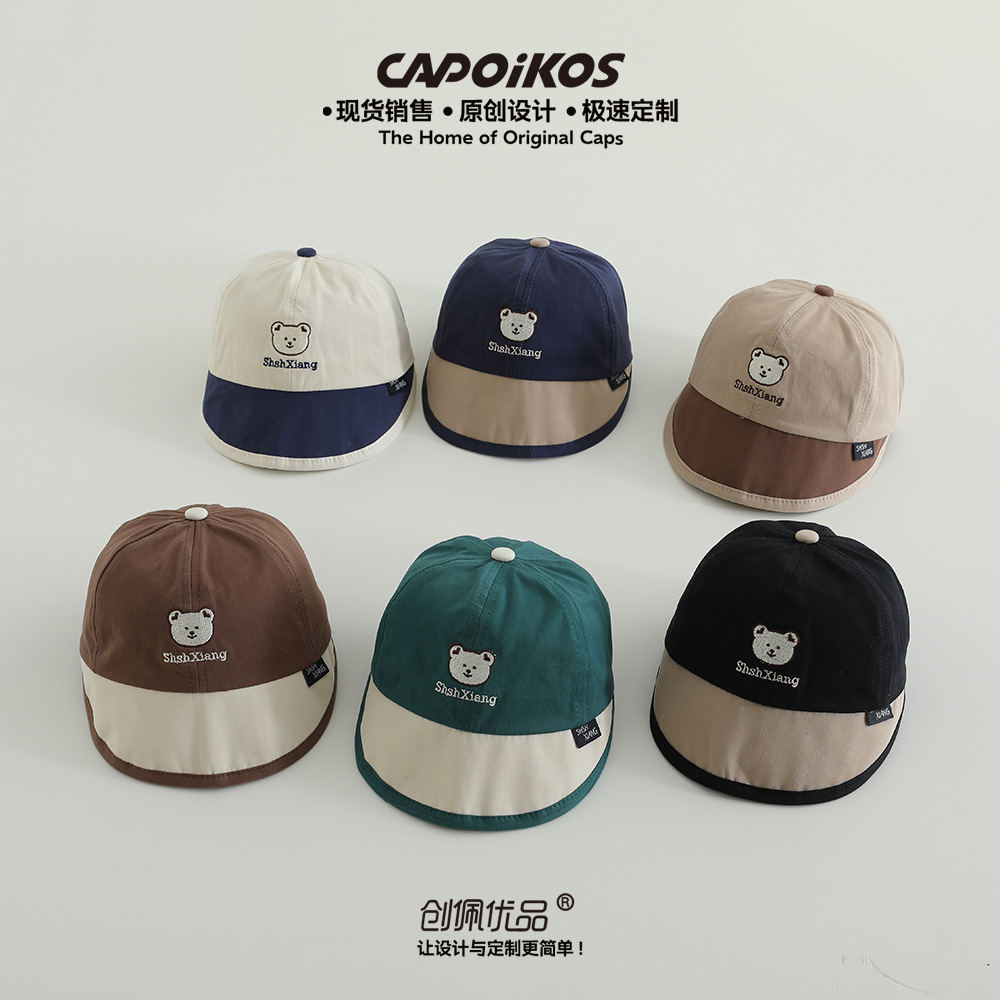 儿童帽子春夏新款卡通小熊刺绣大沿帽男女宝宝百搭遮阳帽潮