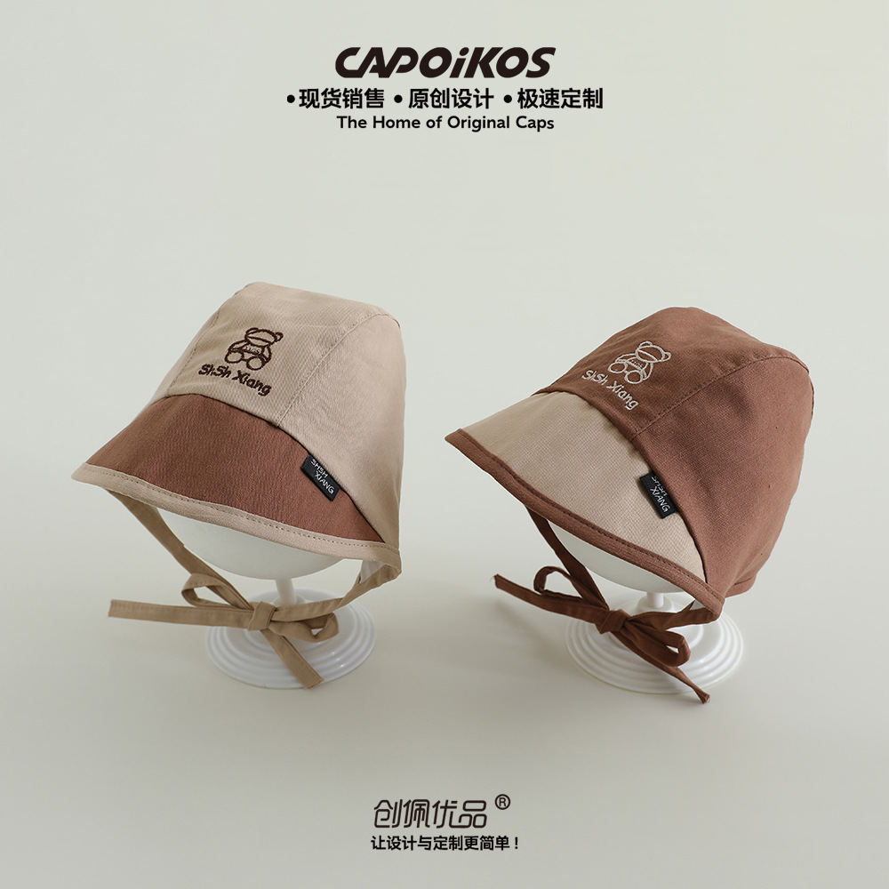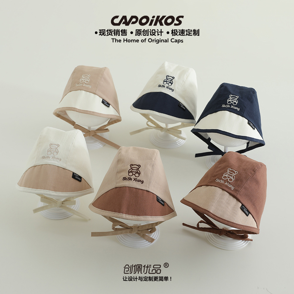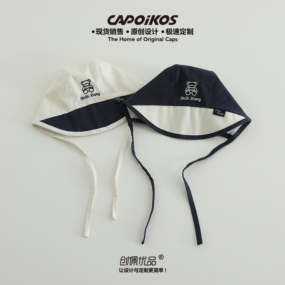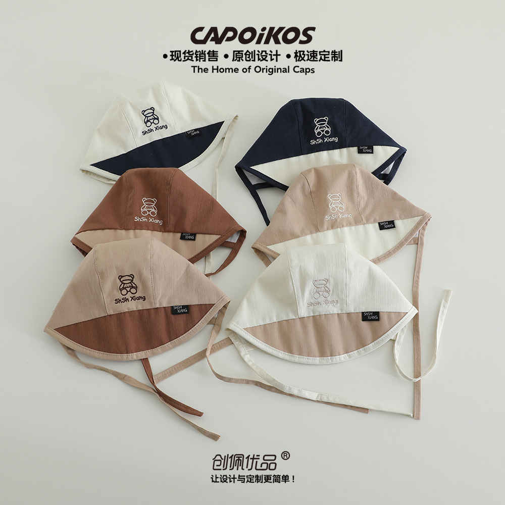 儿童帽子批发春秋款卡通小熊防风包头帽男女宝宝防晒系带套头帽