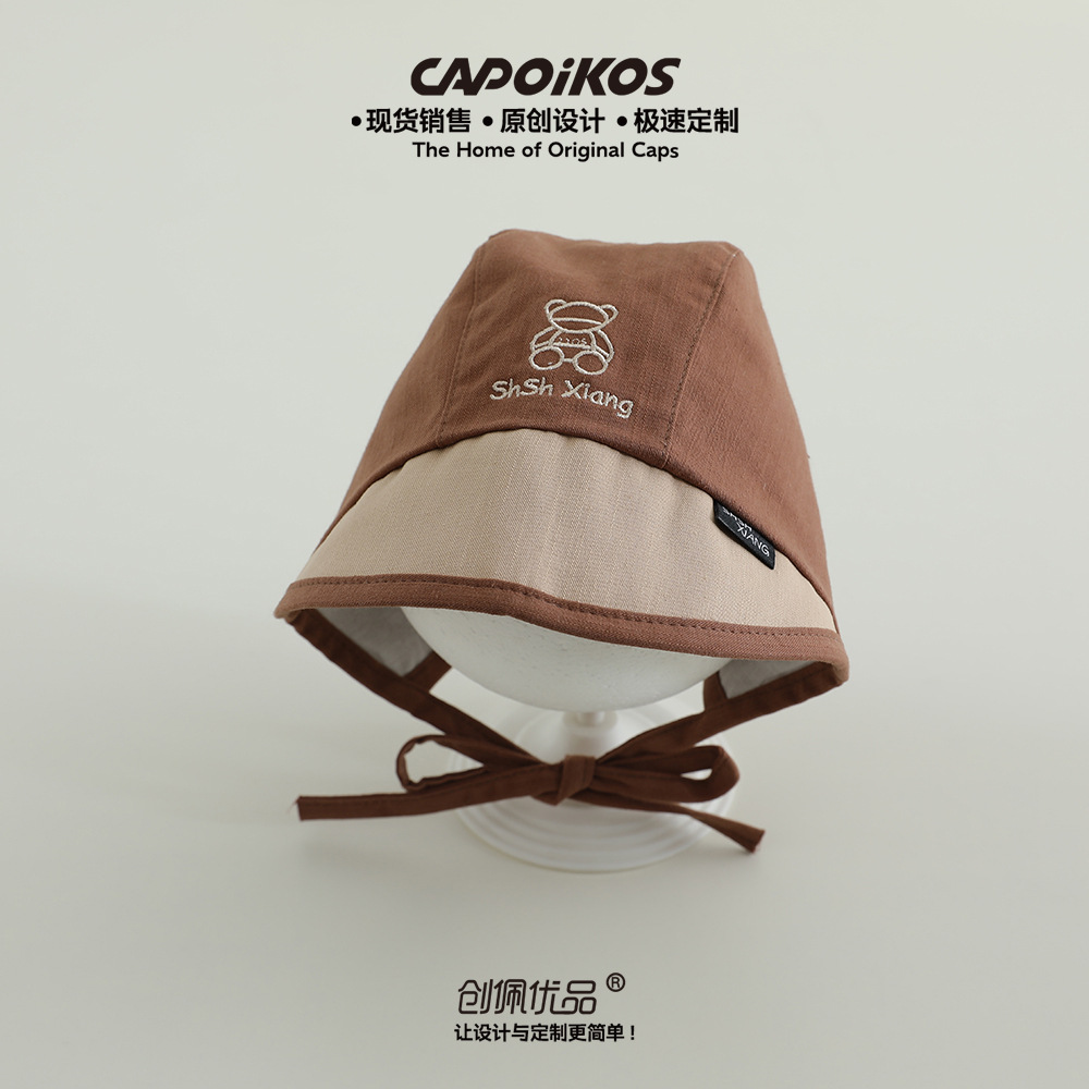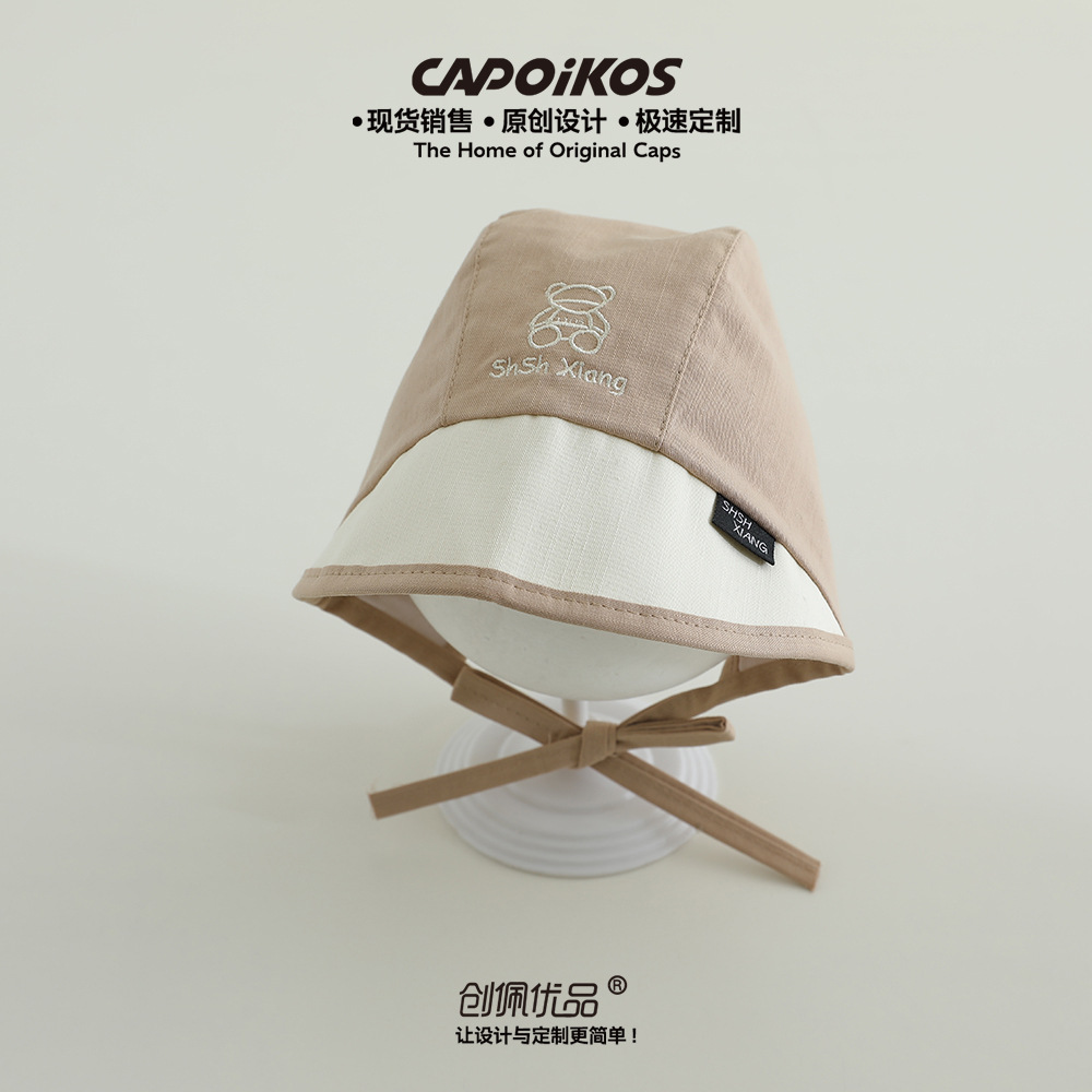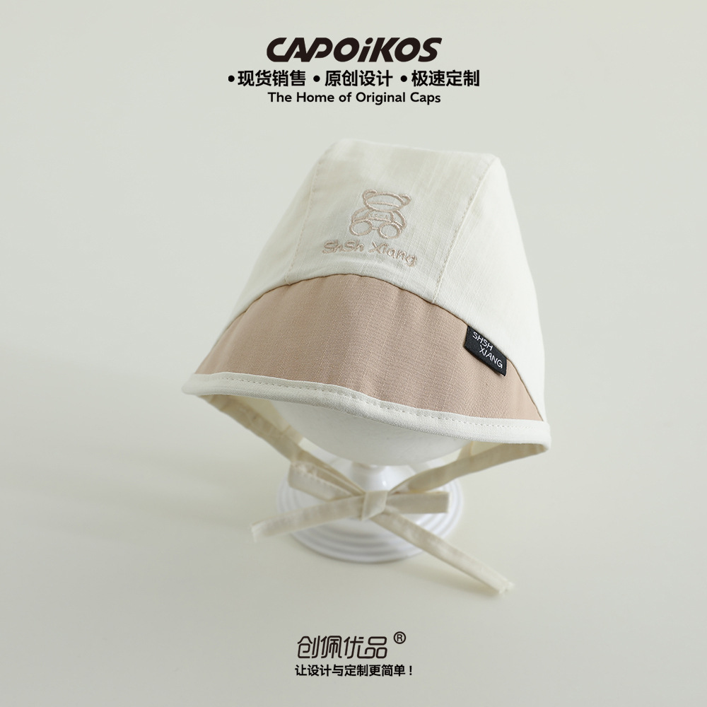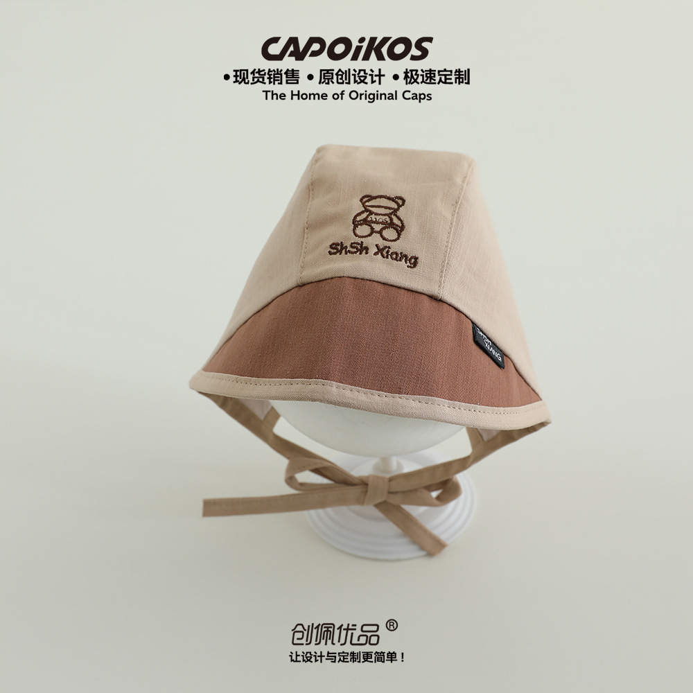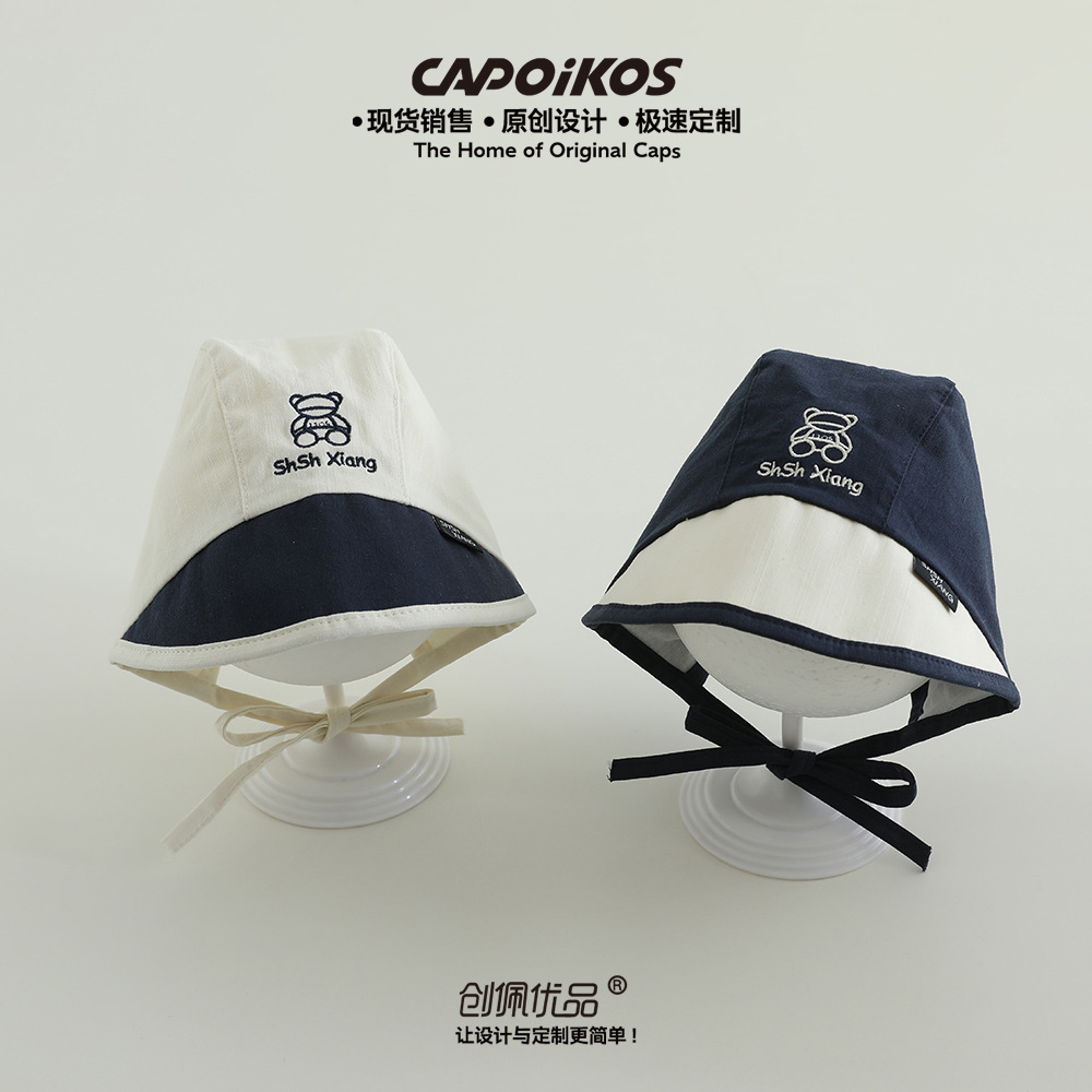 儿童帽子批发春秋款卡通小熊防风包头帽男女宝宝防晒系带套头帽