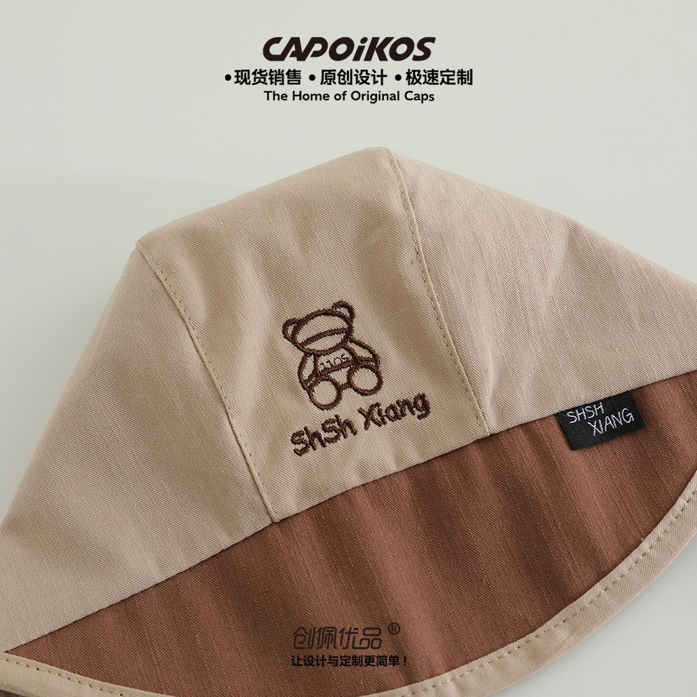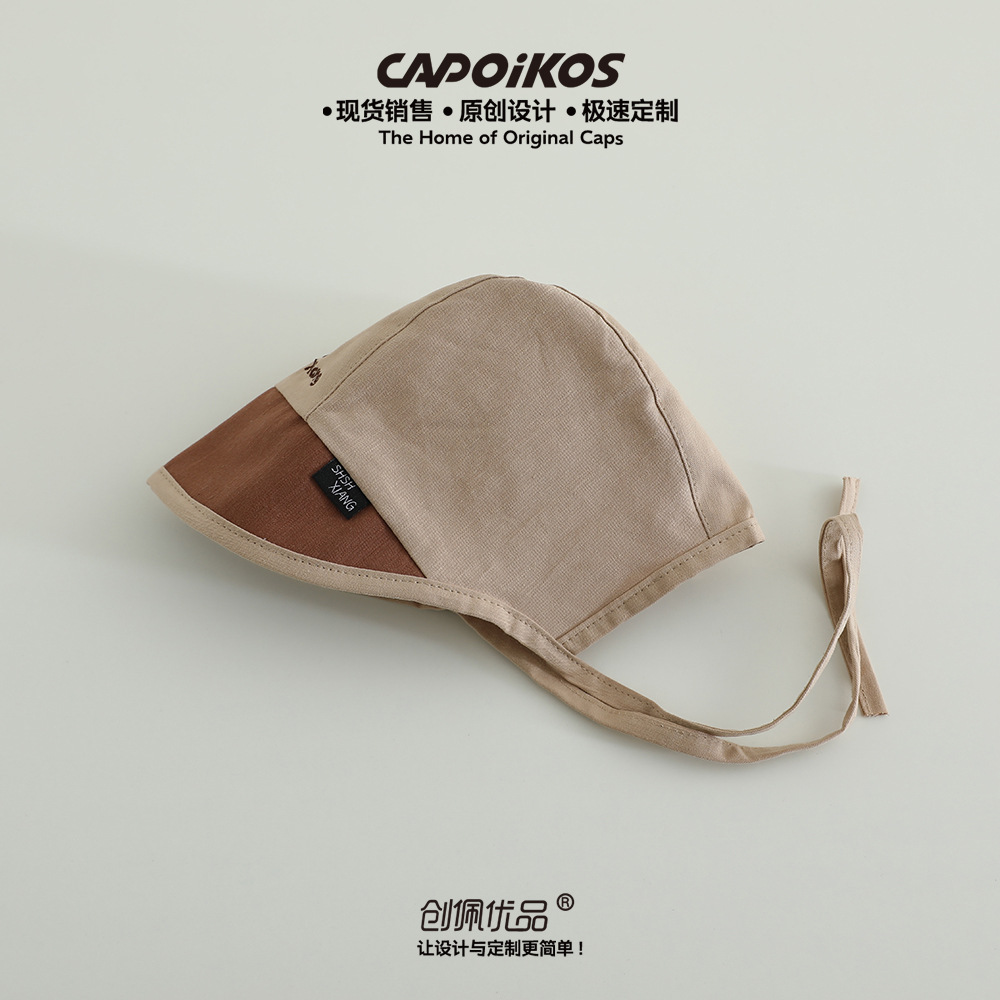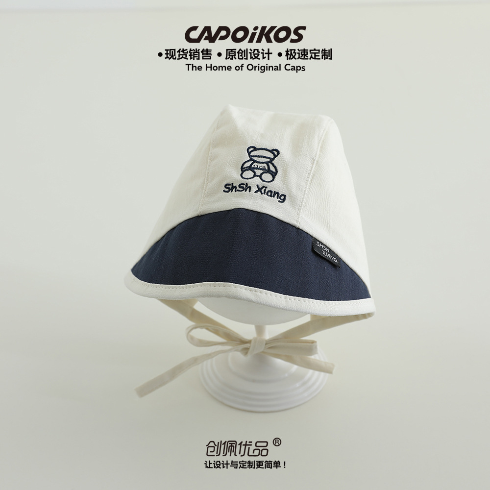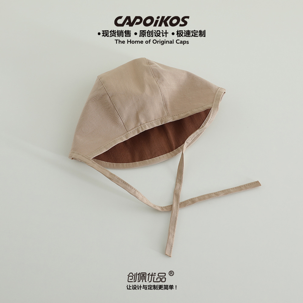儿童帽子批发春秋款卡通小熊防风包头帽男女宝宝防晒系带套头帽