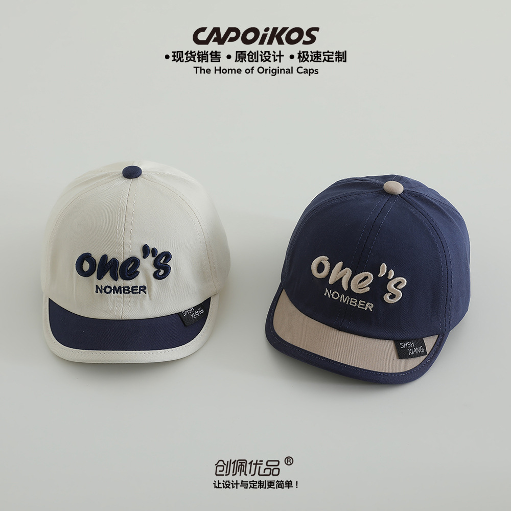 儿童帽子春秋新款one刺绣短檐棒球帽男女宝宝百搭遮阳鸭舌帽批发