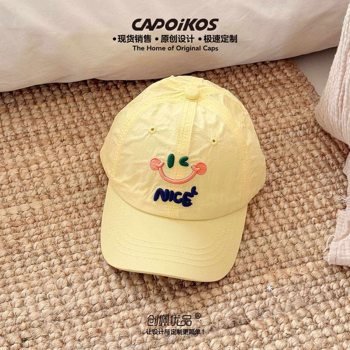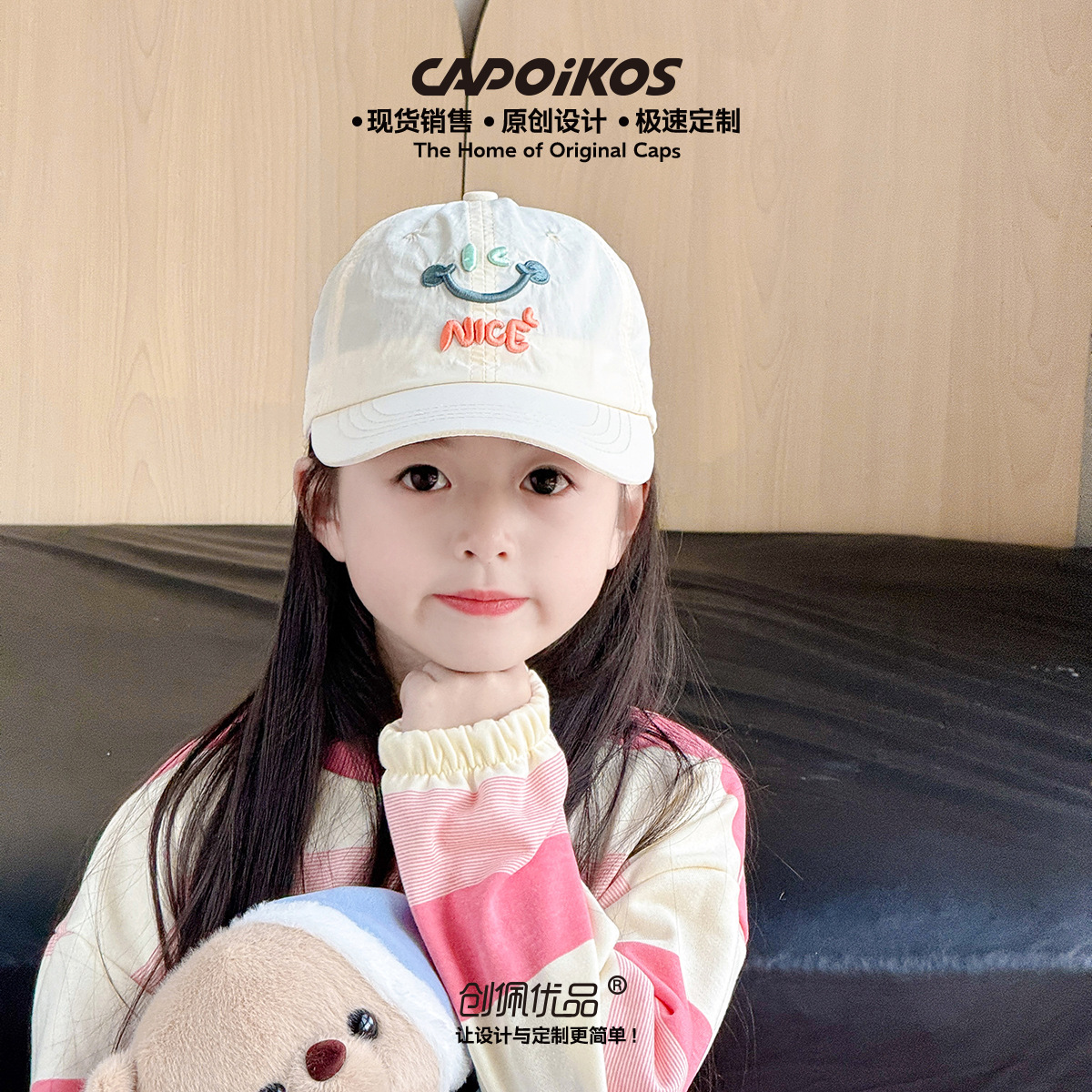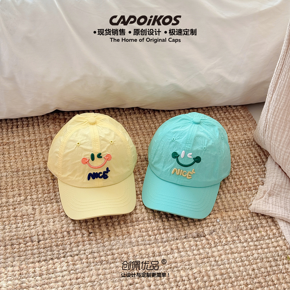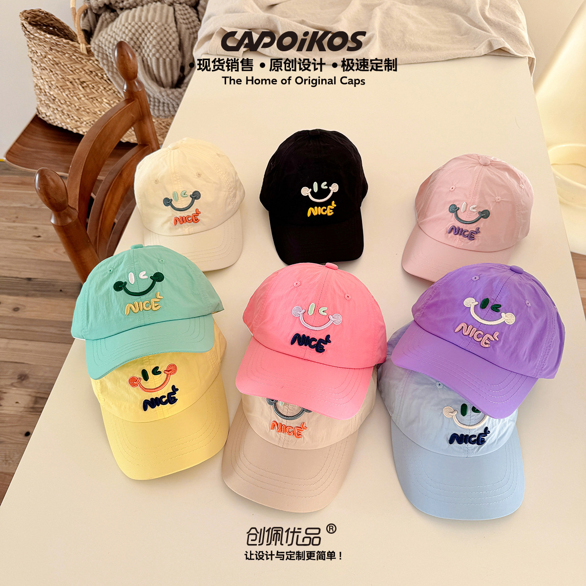 儿童帽子春夏新款NICE笑脸刺绣鸭舌帽男女孩遮阳速干棒球帽批发