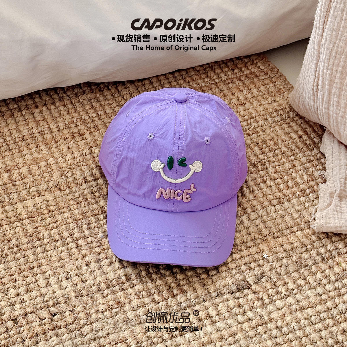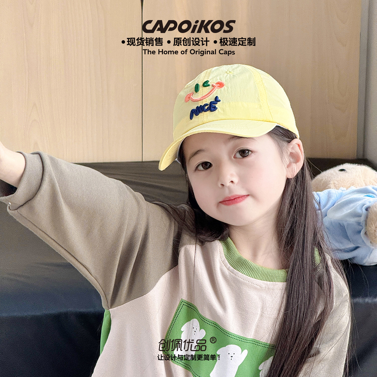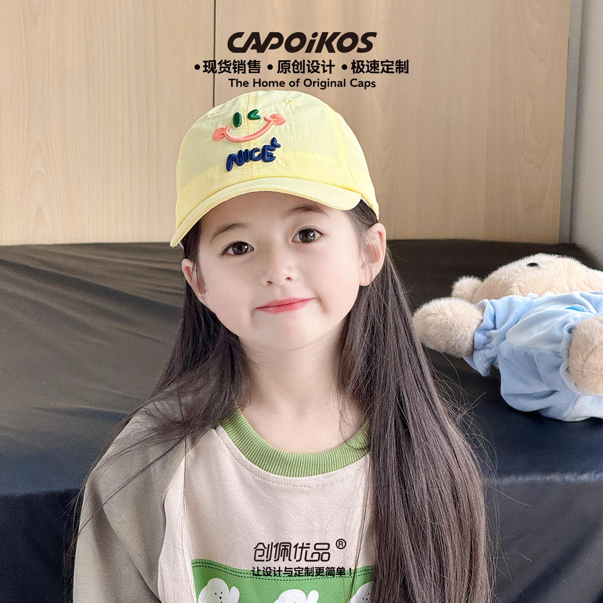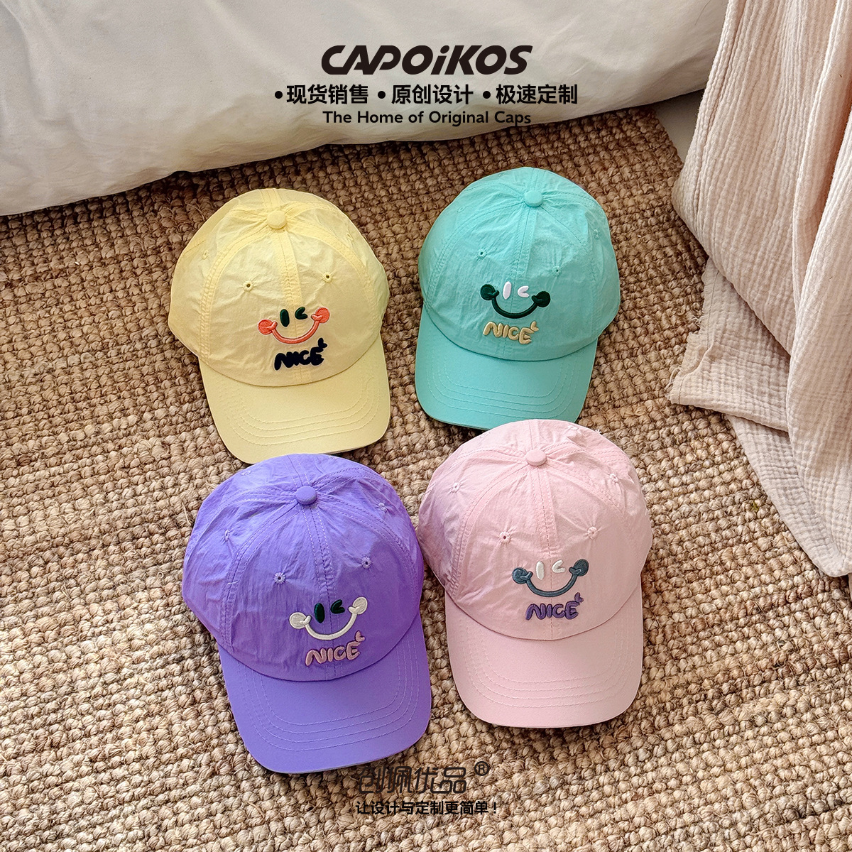 儿童帽子春夏新款NICE笑脸刺绣鸭舌帽男女孩遮阳速干棒球帽批发