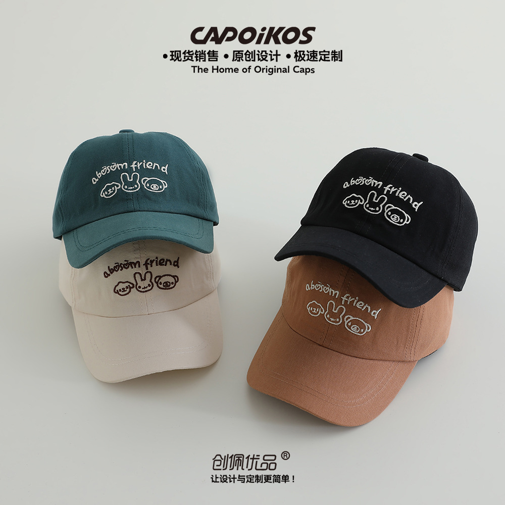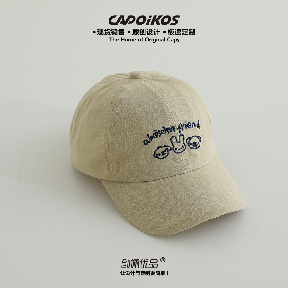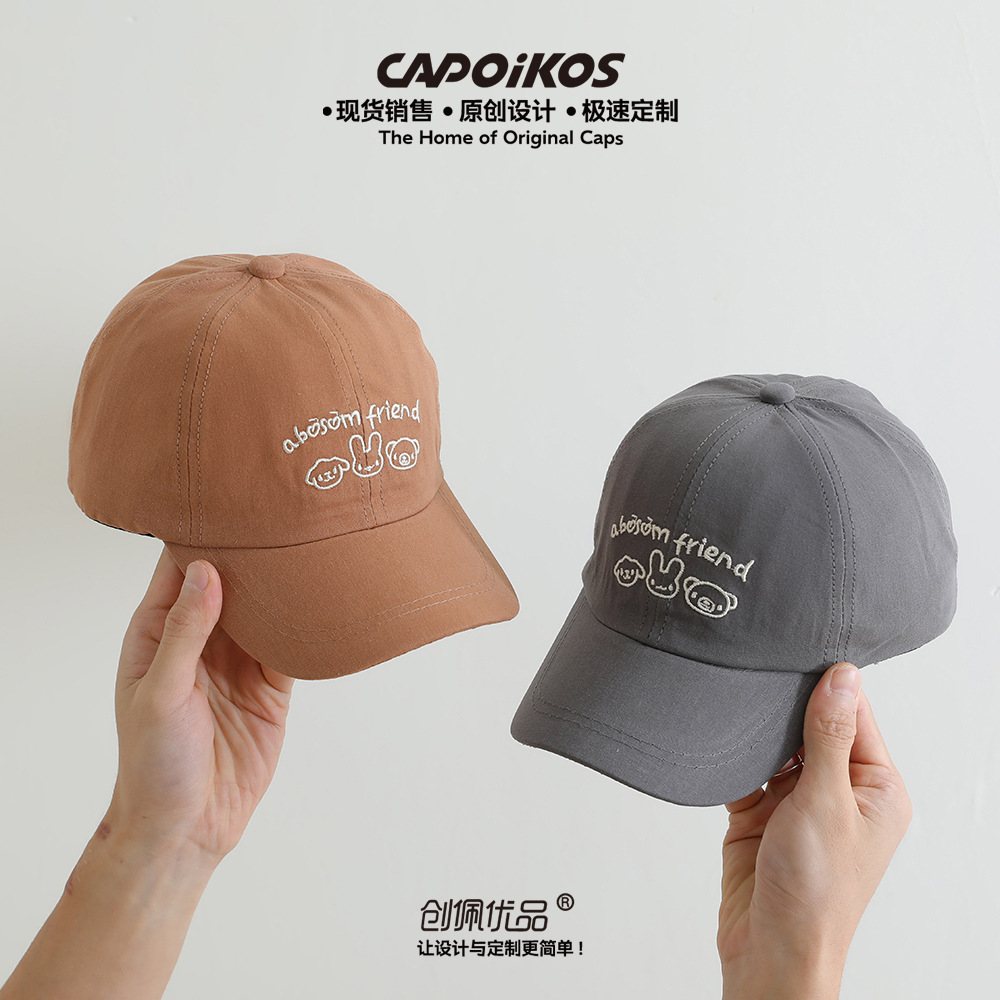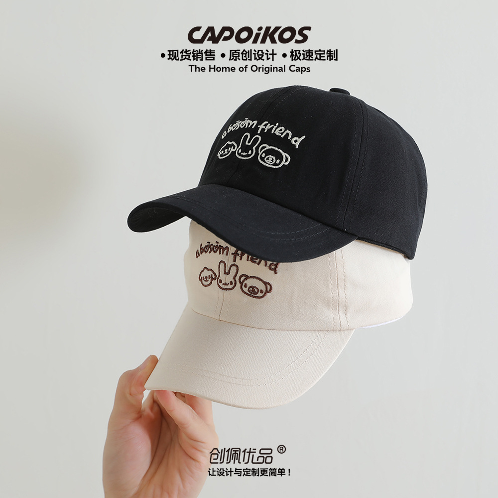 儿童帽子春秋款韩版字母小动物刺绣鸭舌帽男女童百搭棒球帽批发
