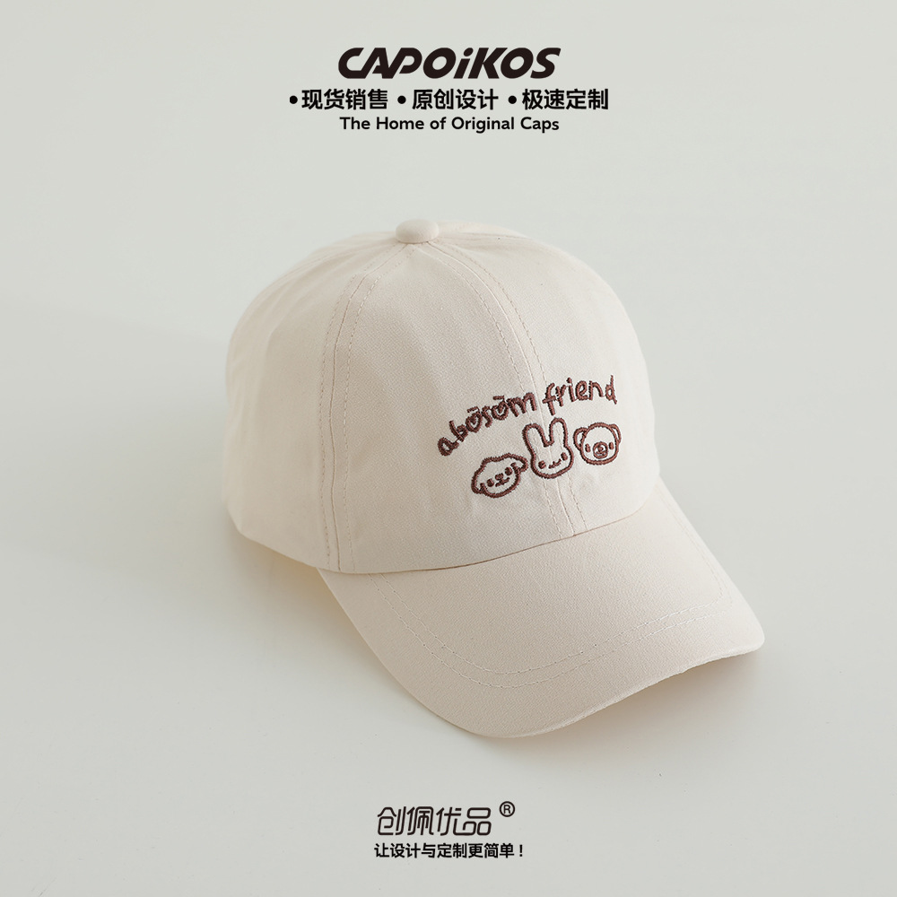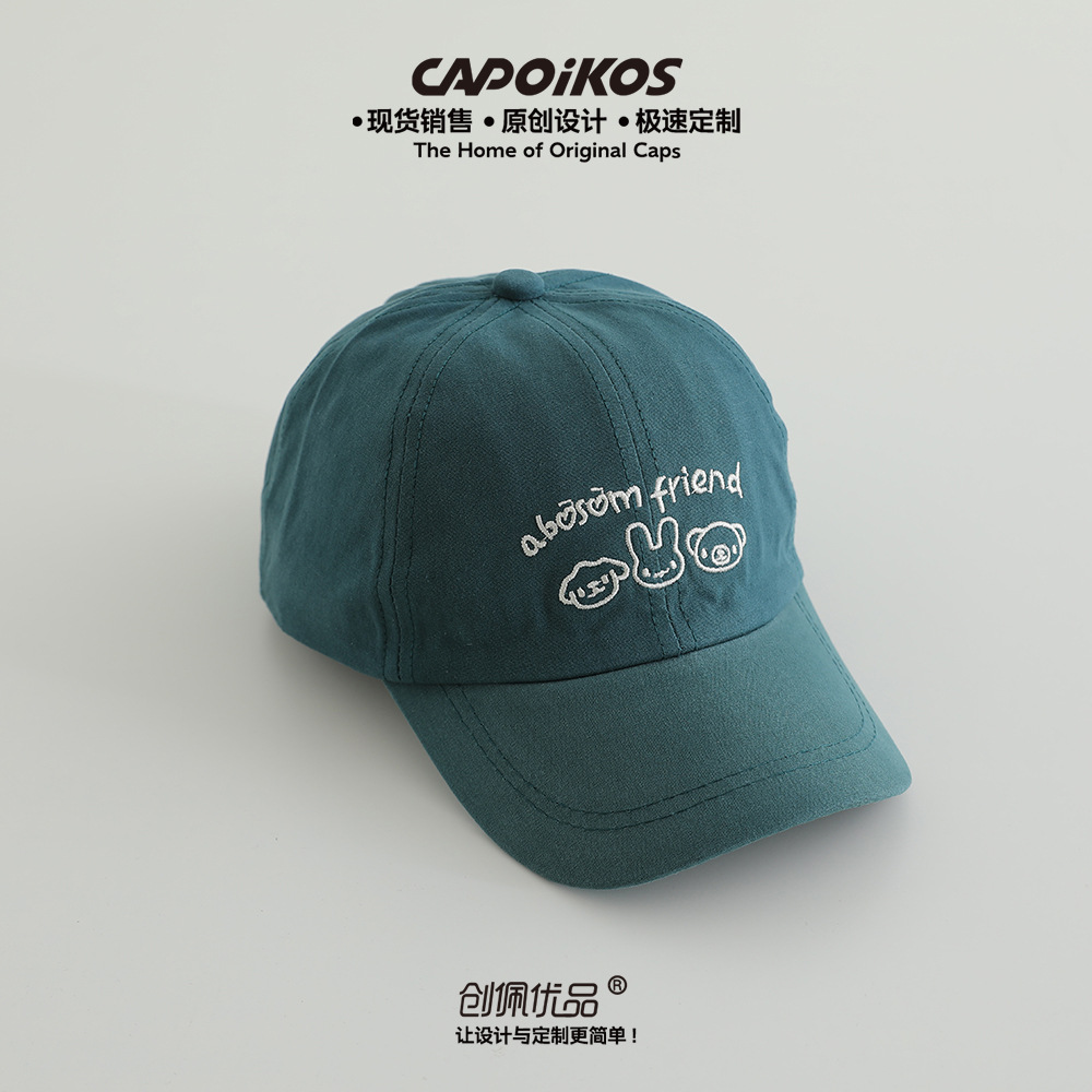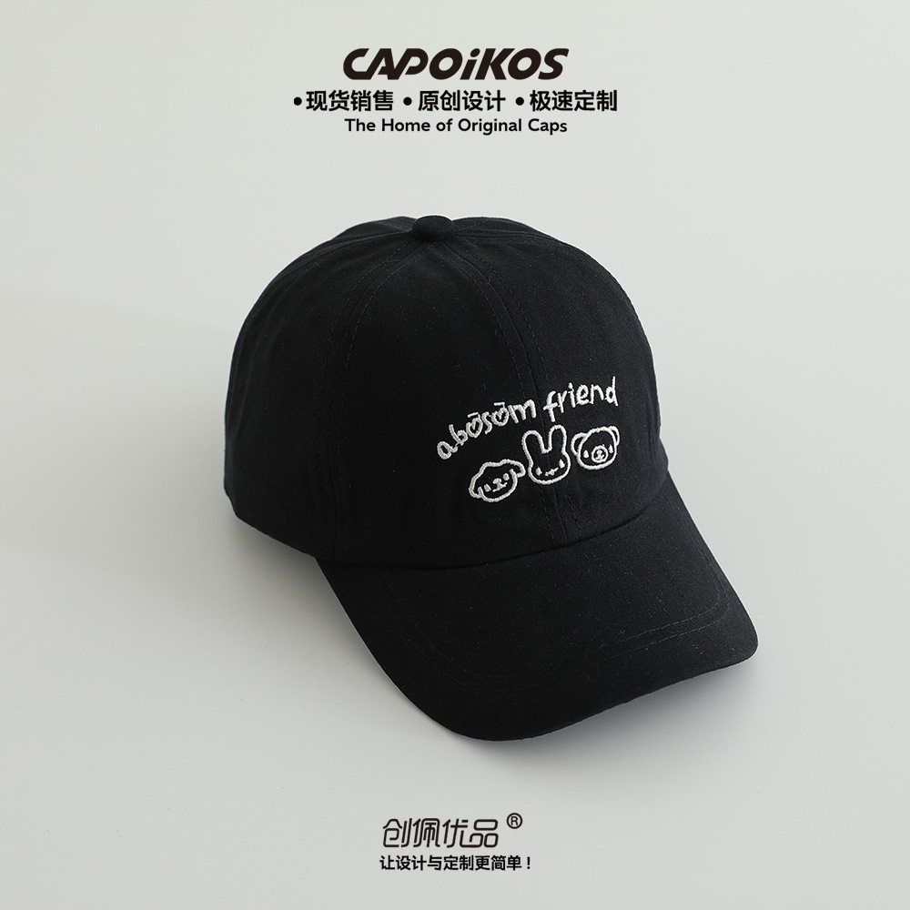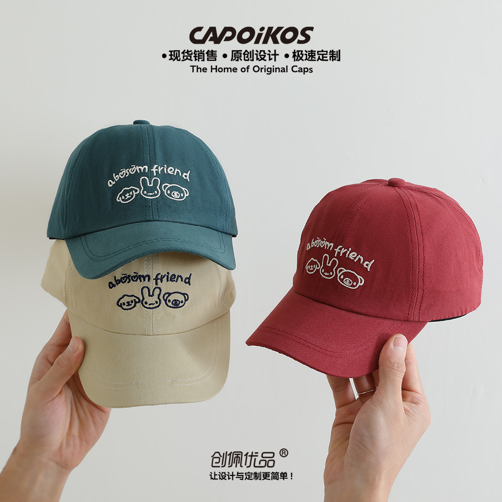 儿童帽子春秋款韩版字母小动物刺绣鸭舌帽男女童百搭棒球帽批发