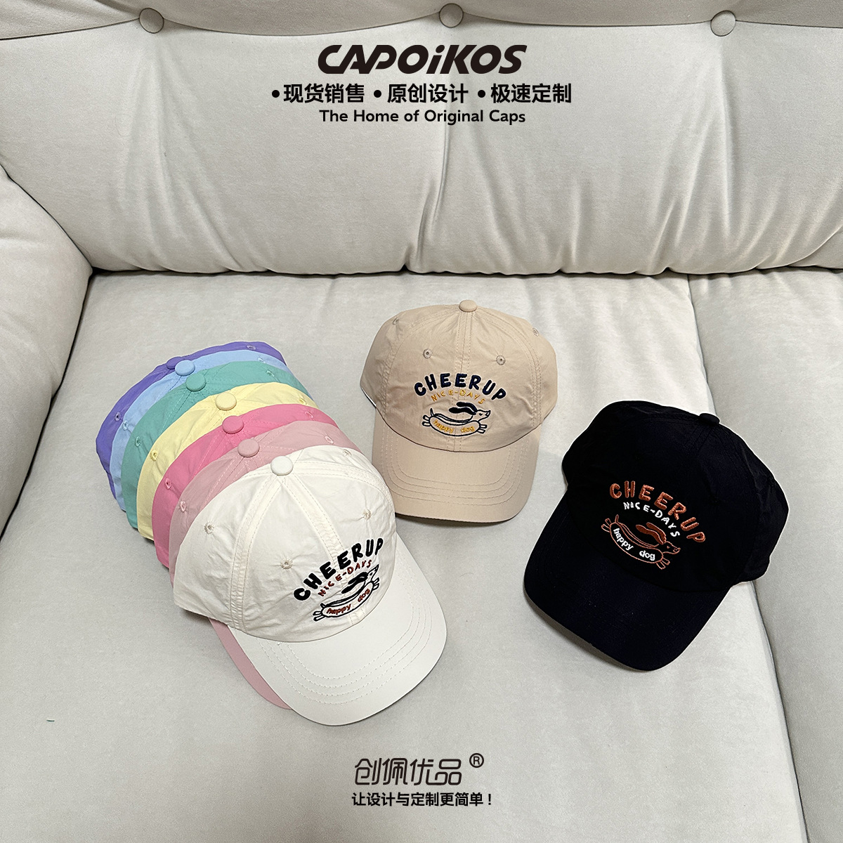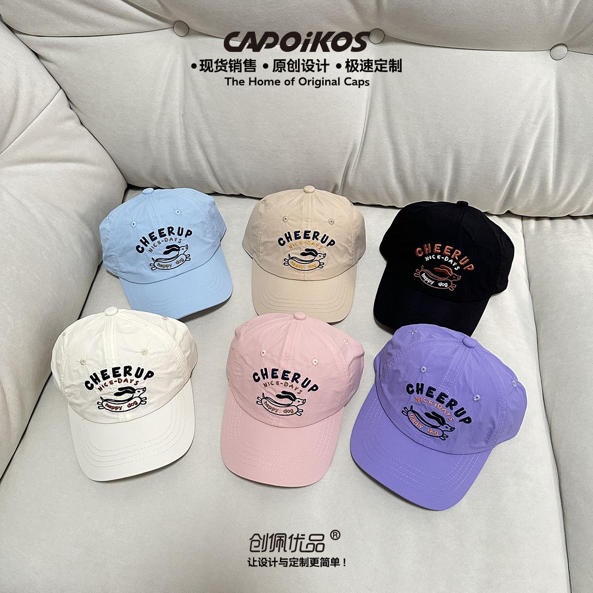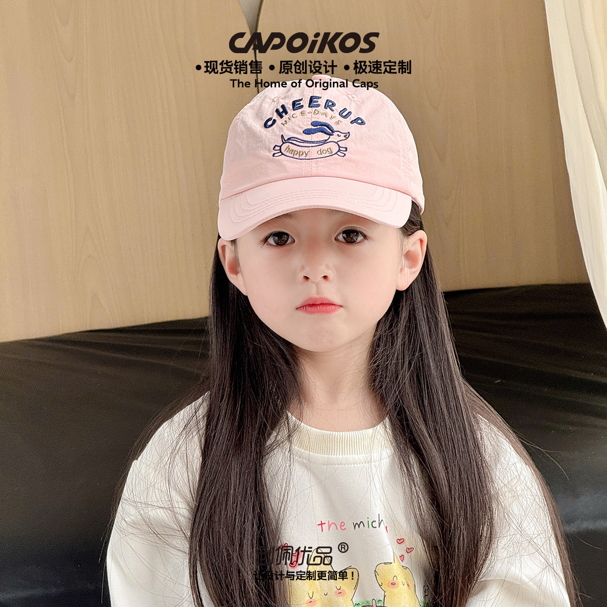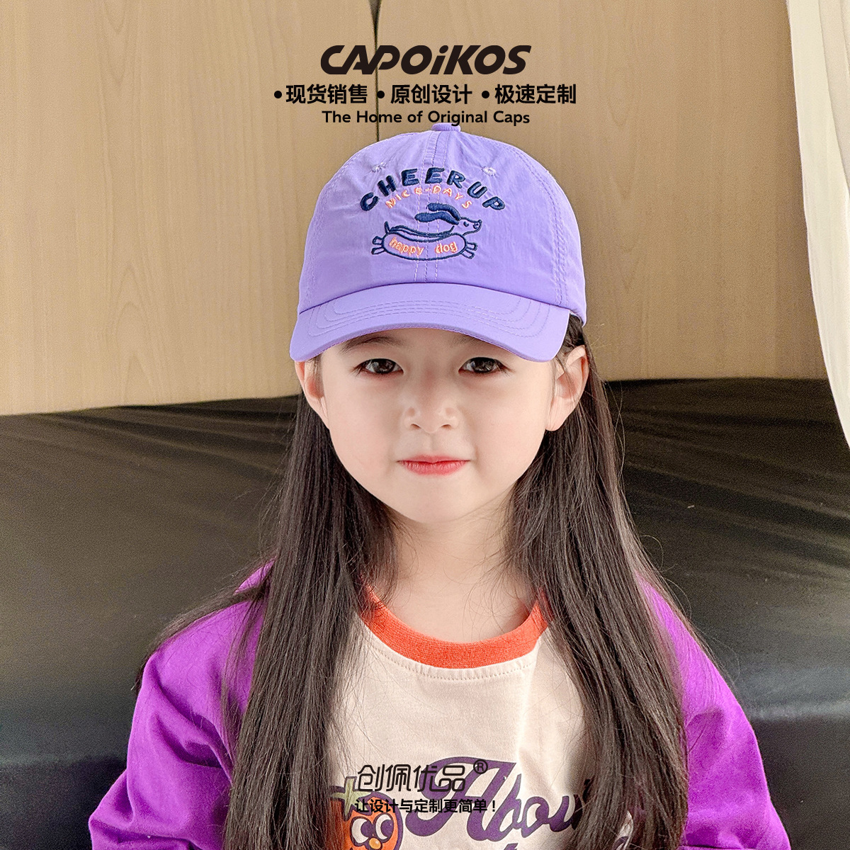 儿童帽子春夏新款腊肠小狗刺绣速干鸭舌帽男女孩遮阳棒球帽批发