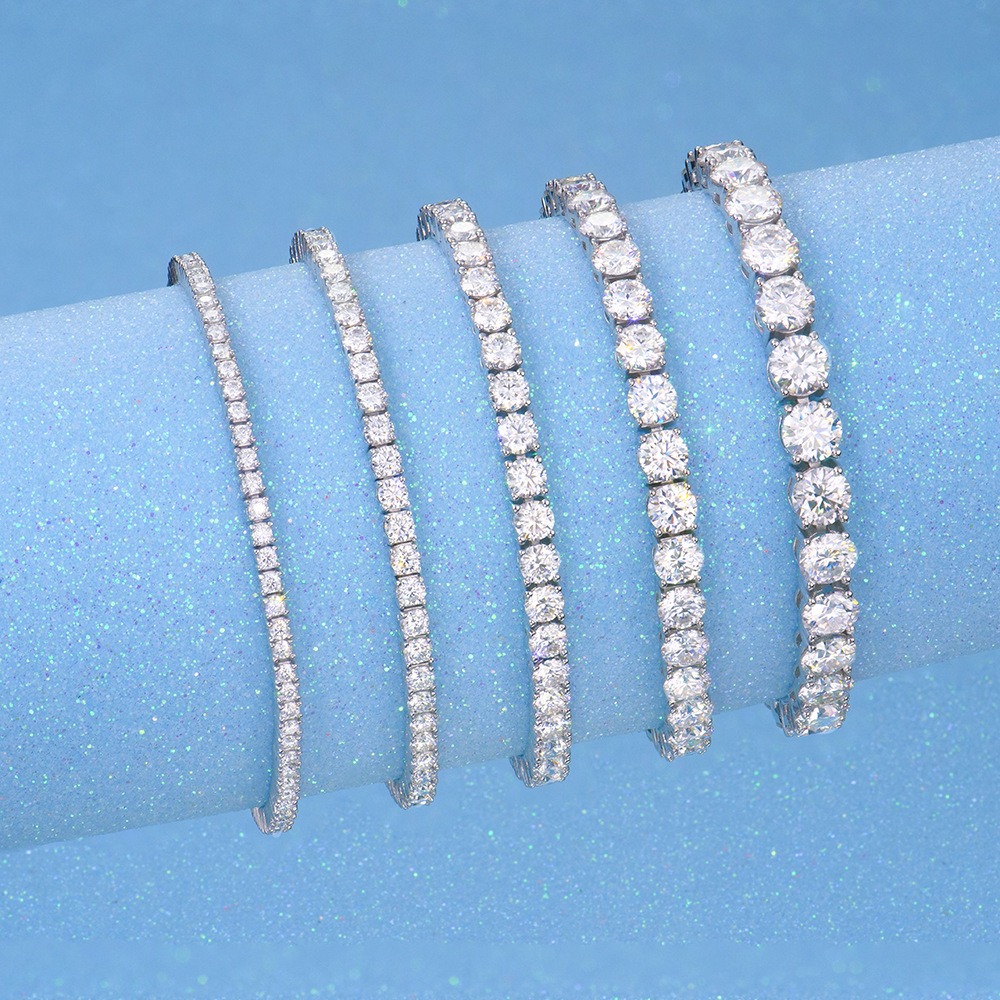 满镶莫桑石手链女士s925银镀18K白金高级设计感男跨境首饰轻奢