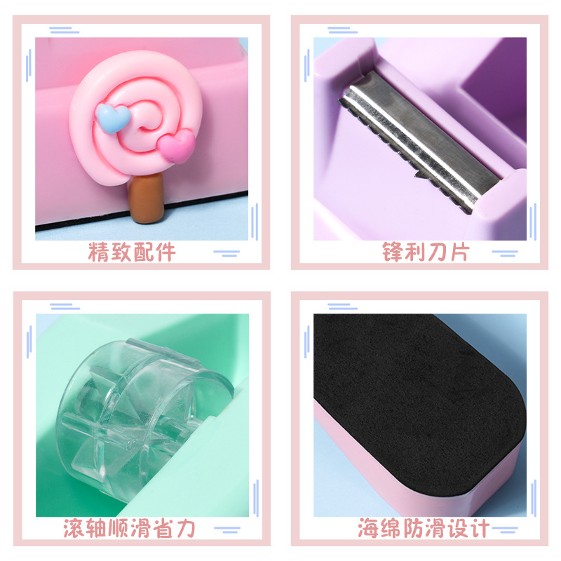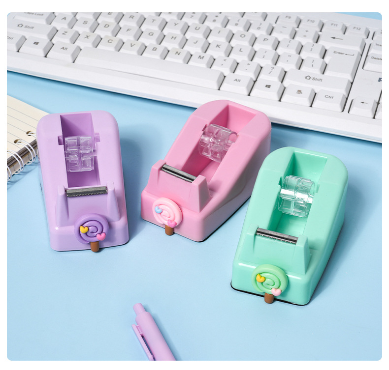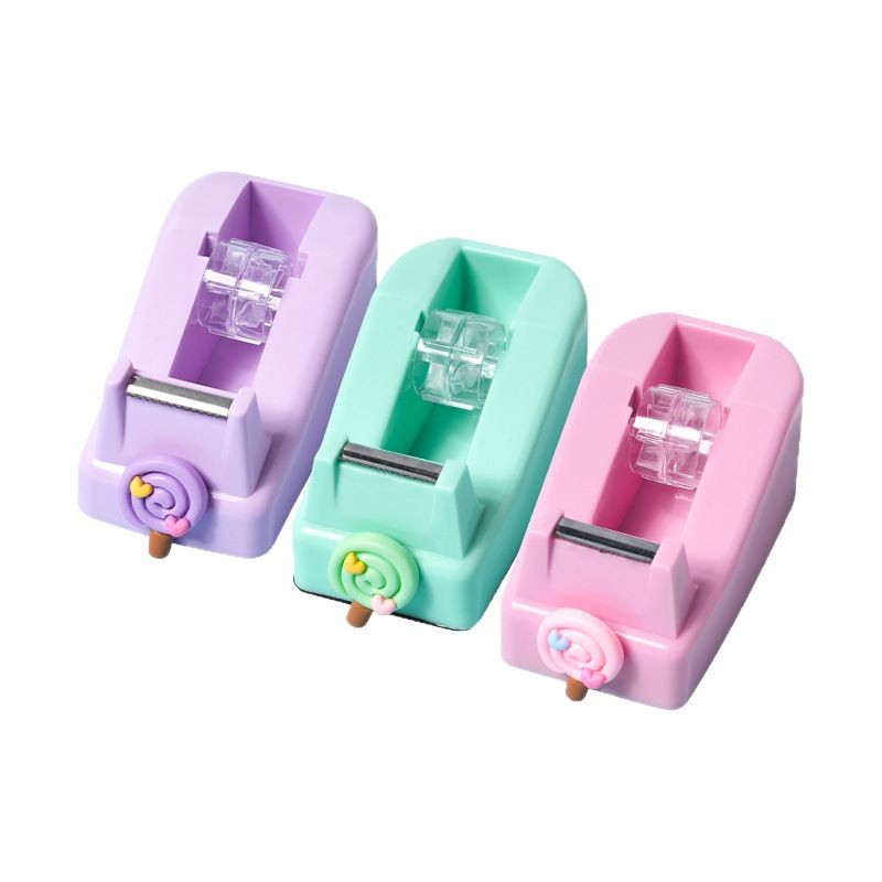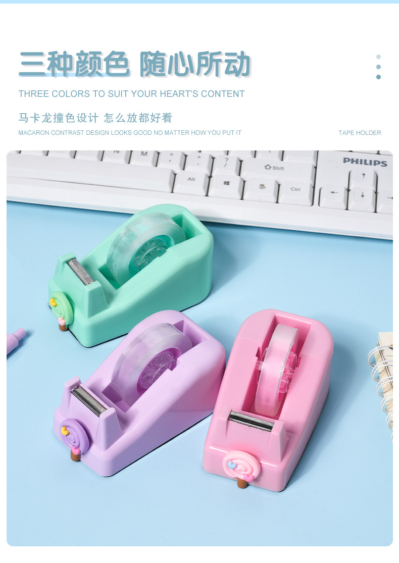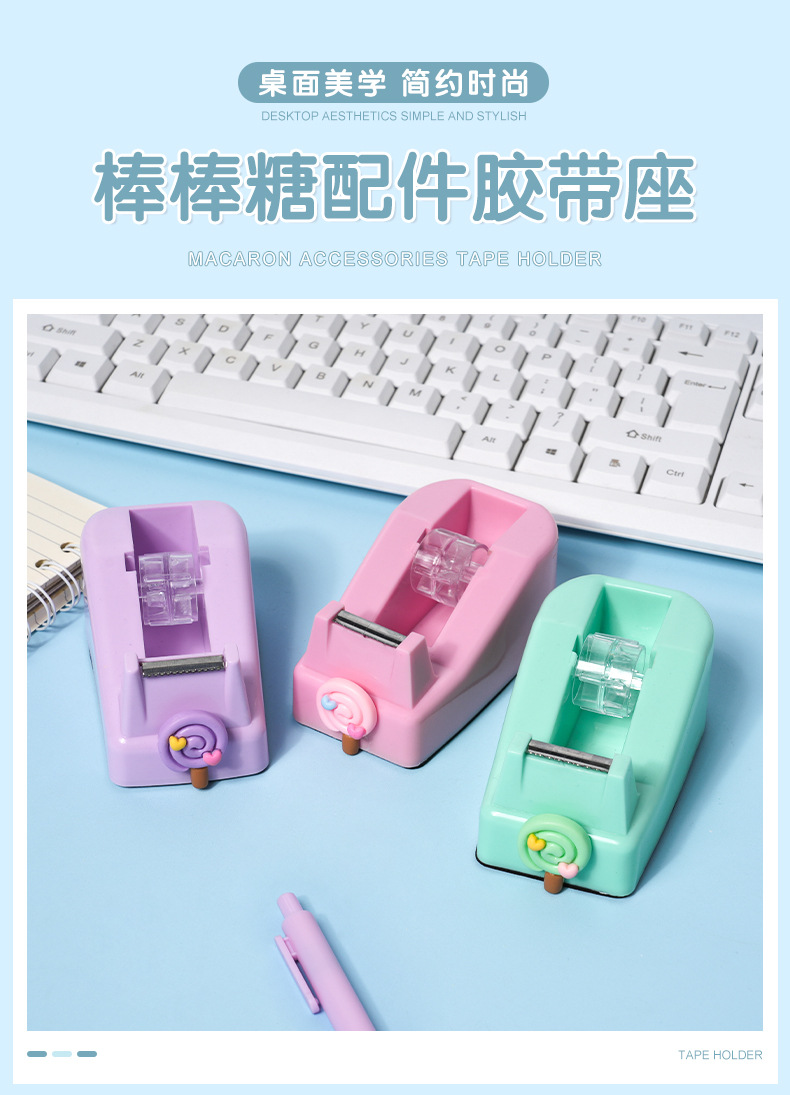 马卡龙色棒棒糖胶带座跨境直供小号胶带机创意办公卡通胶带切割器