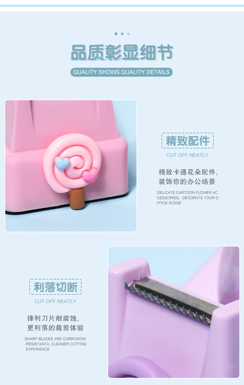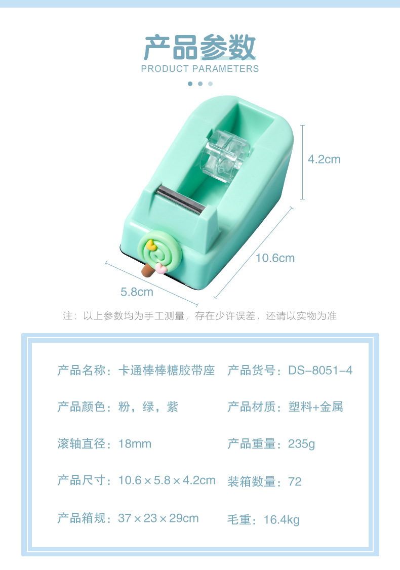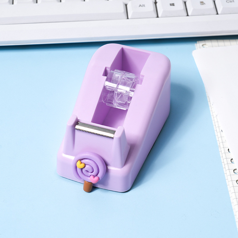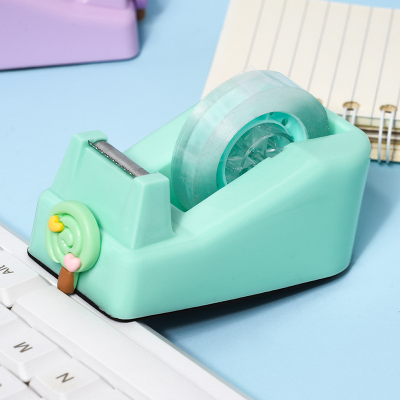 马卡龙色棒棒糖胶带座跨境直供小号胶带机创意办公卡通胶带切割器