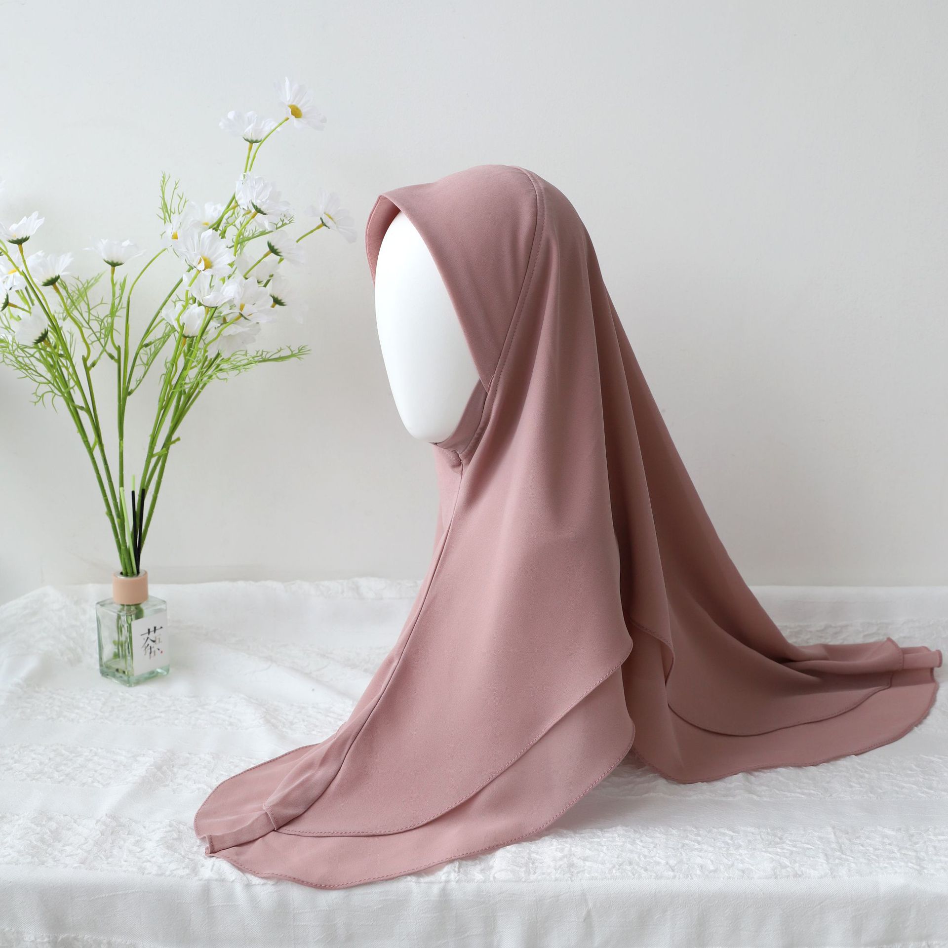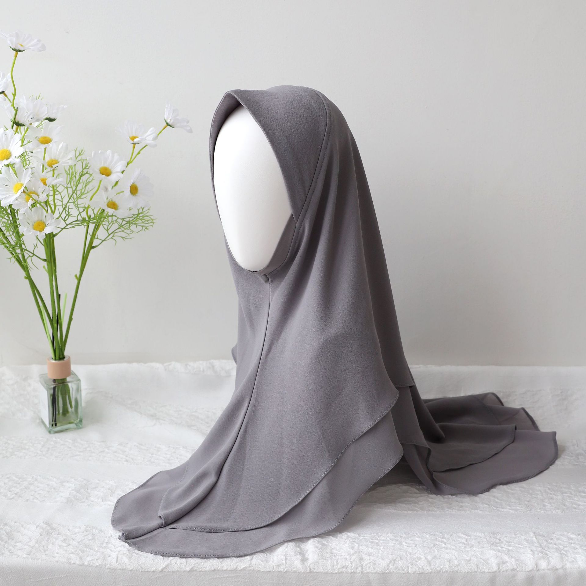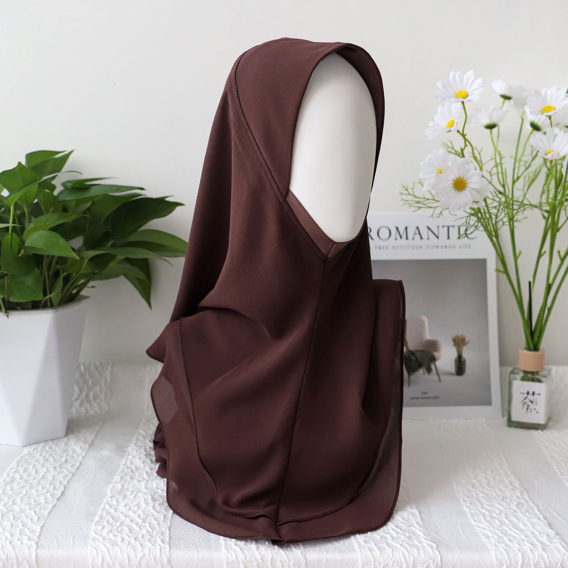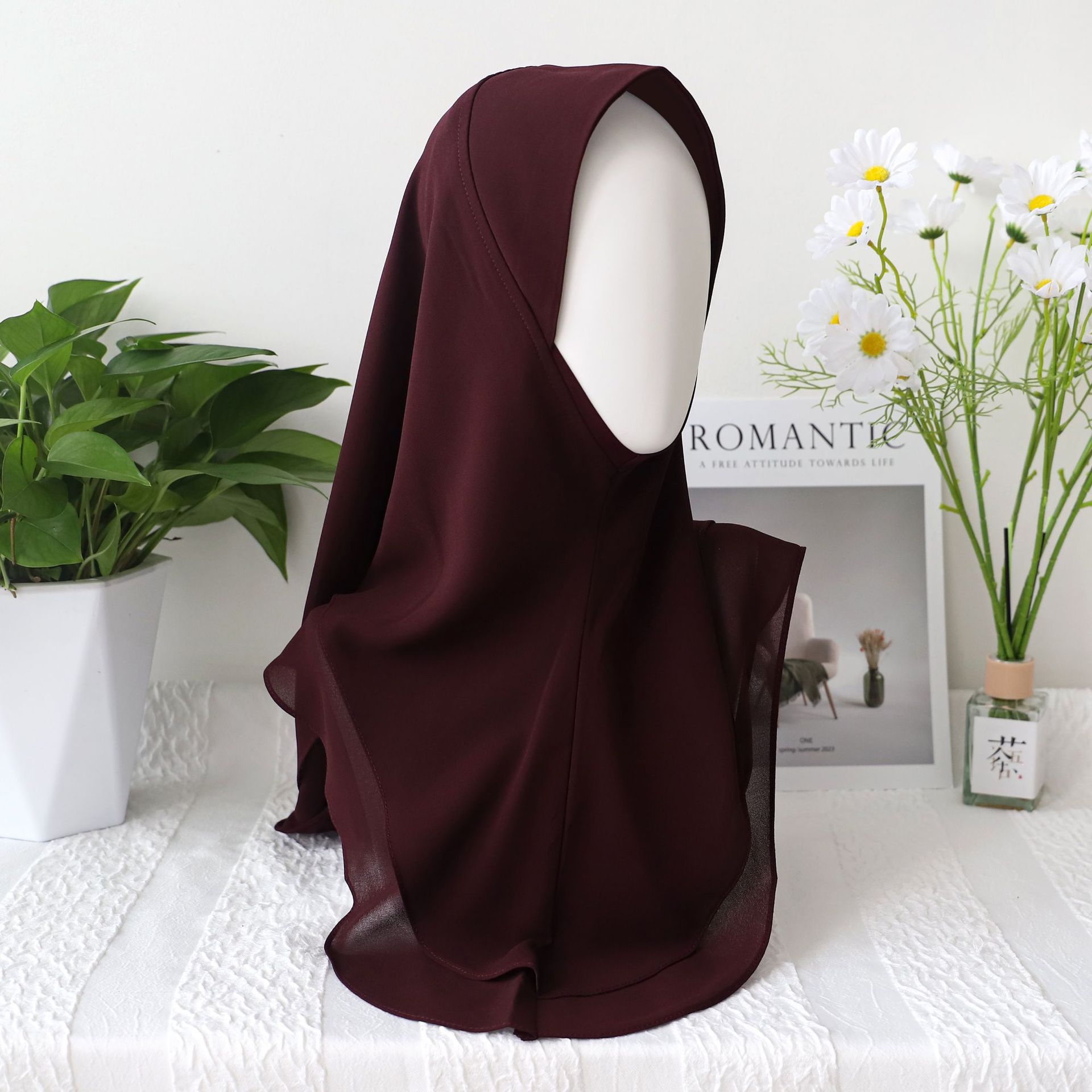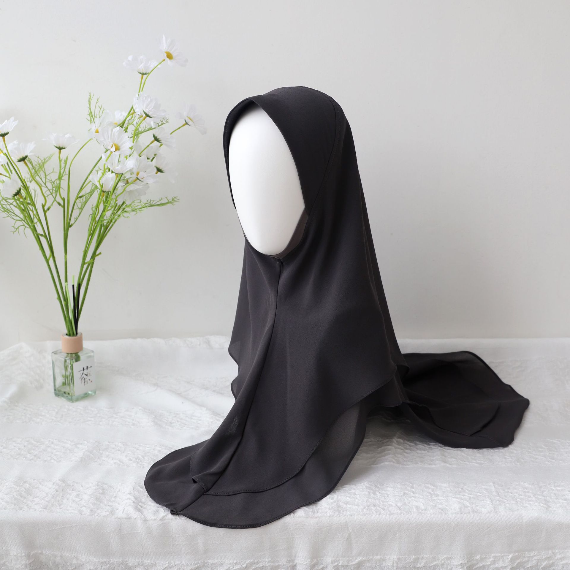 跨境亚马逊新款中东马来纯色雪纺无V燕尾款套头头巾披肩现货批发