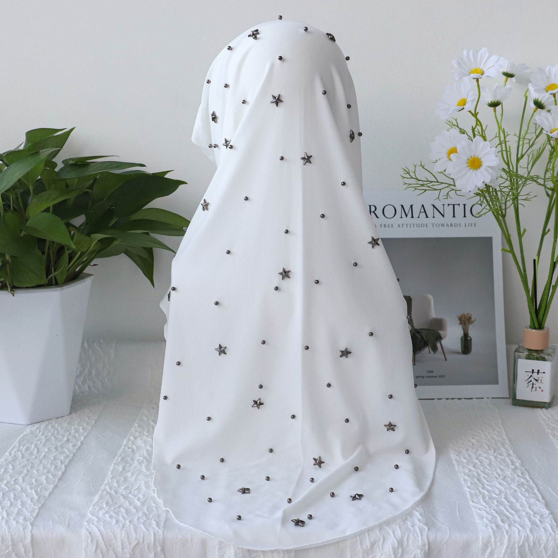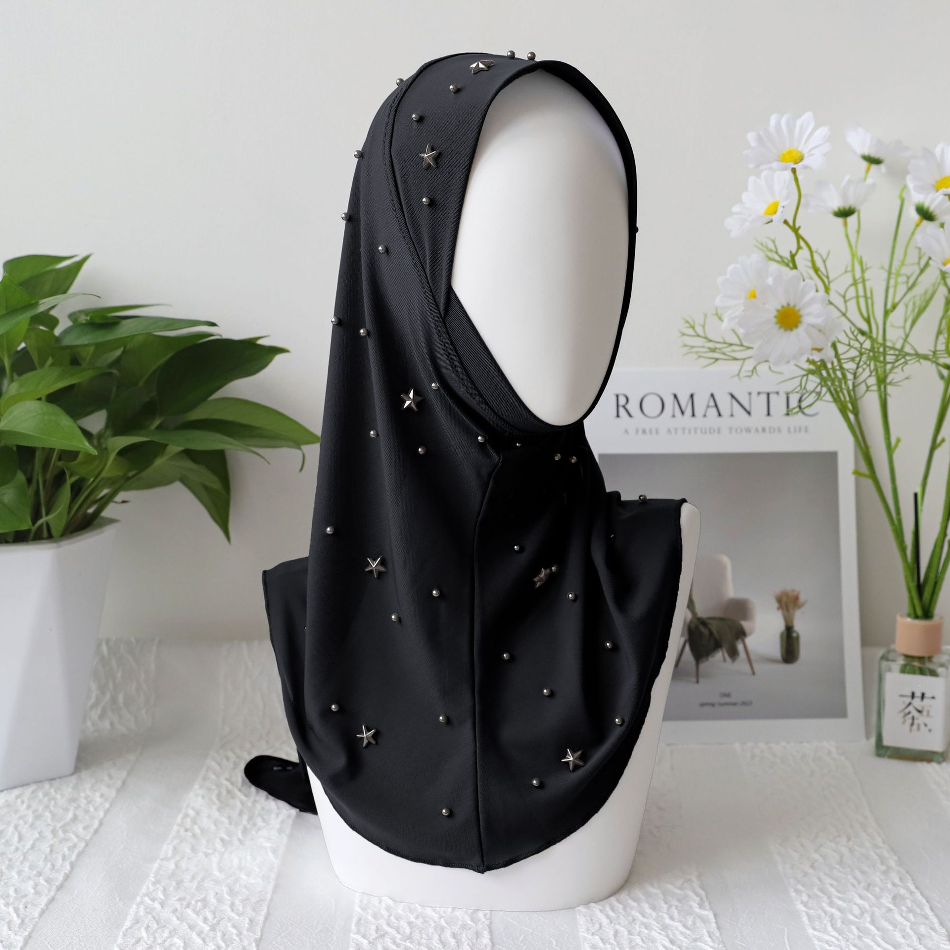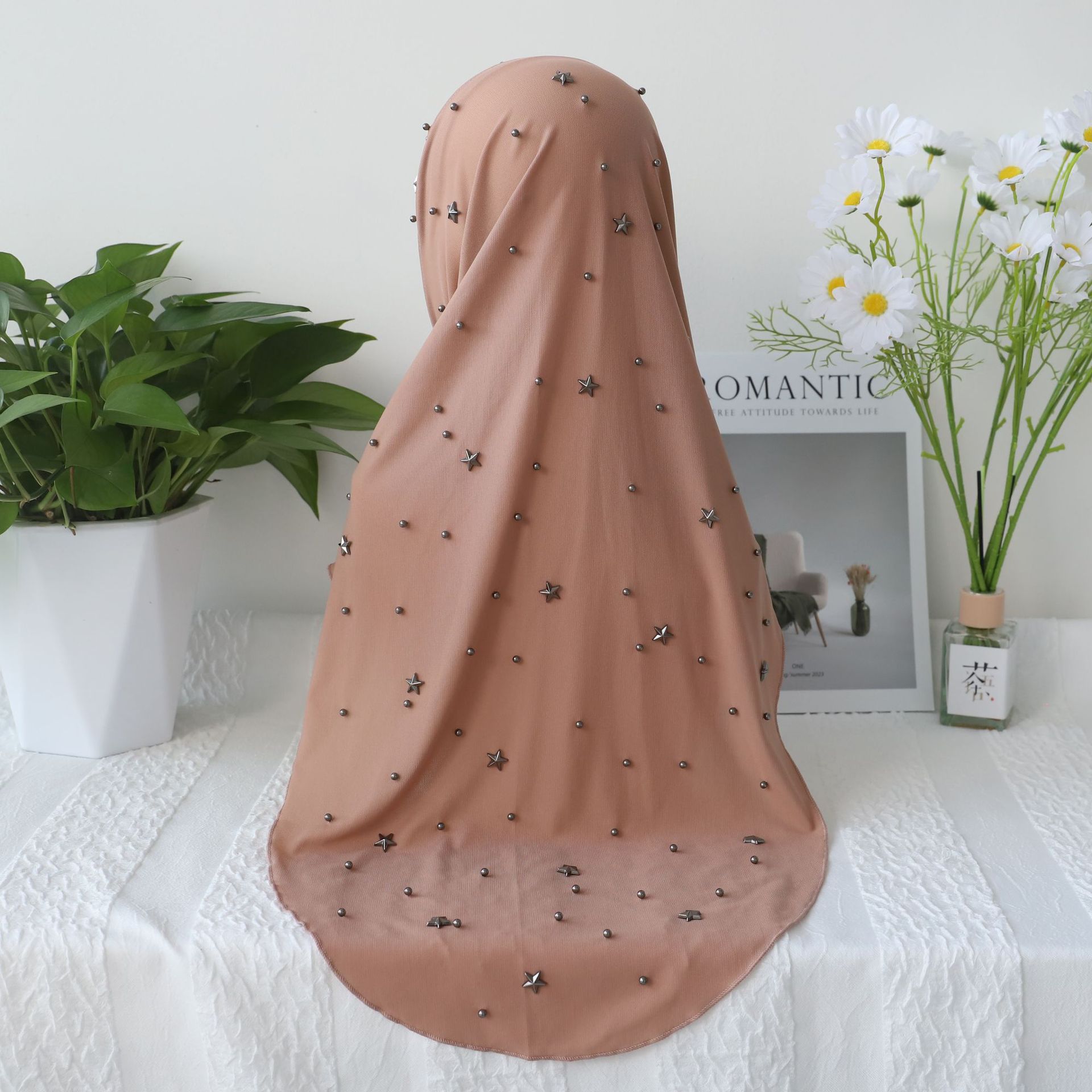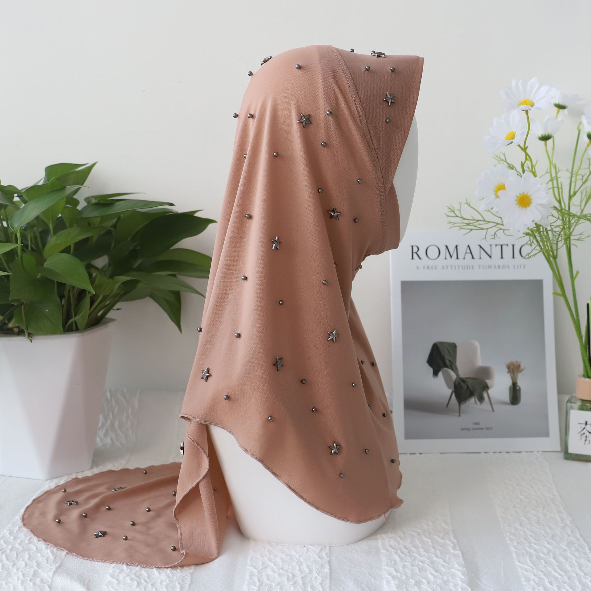 跨境速卖通亚马逊中东马来纯色弹力网纱钉珠套头头巾围巾现货批发