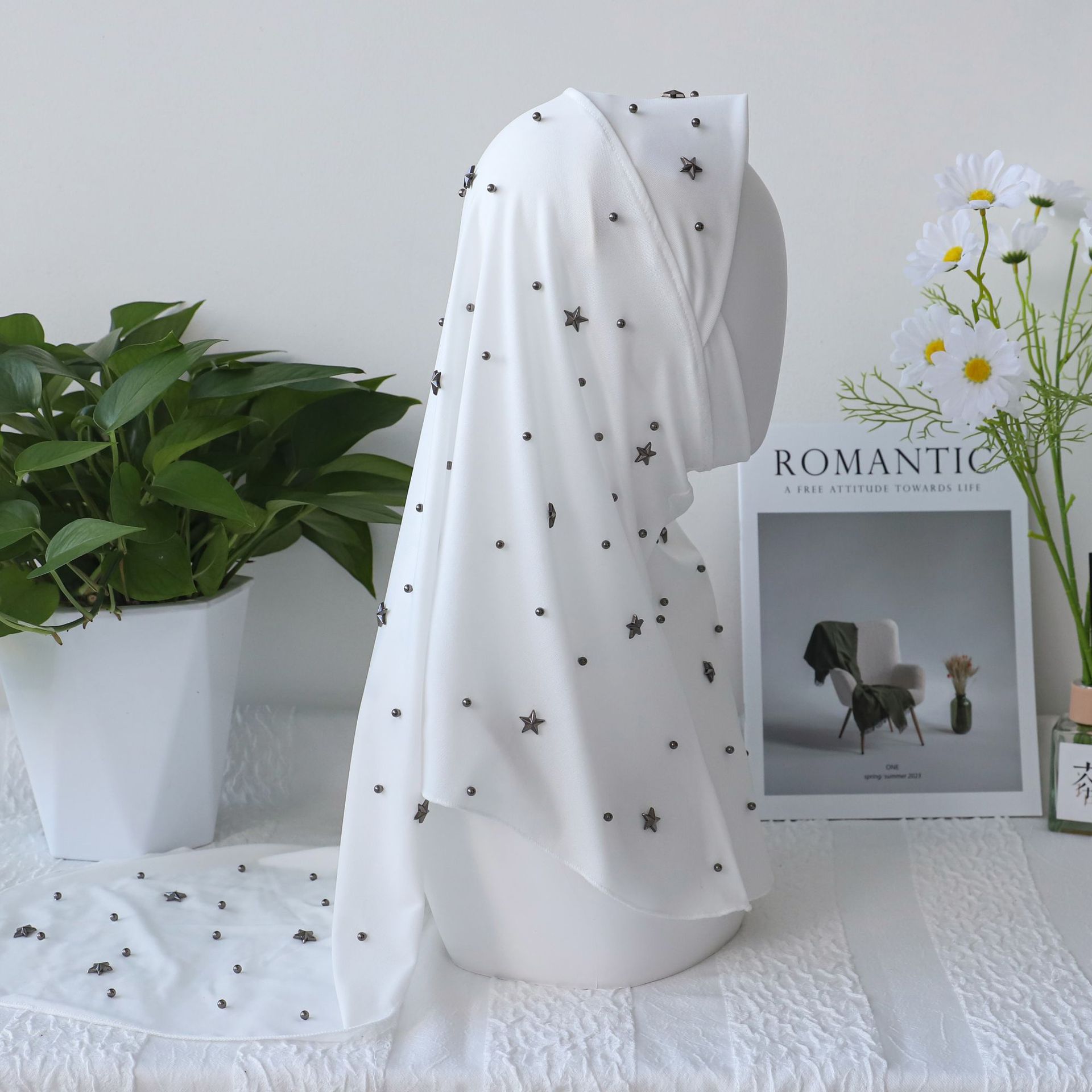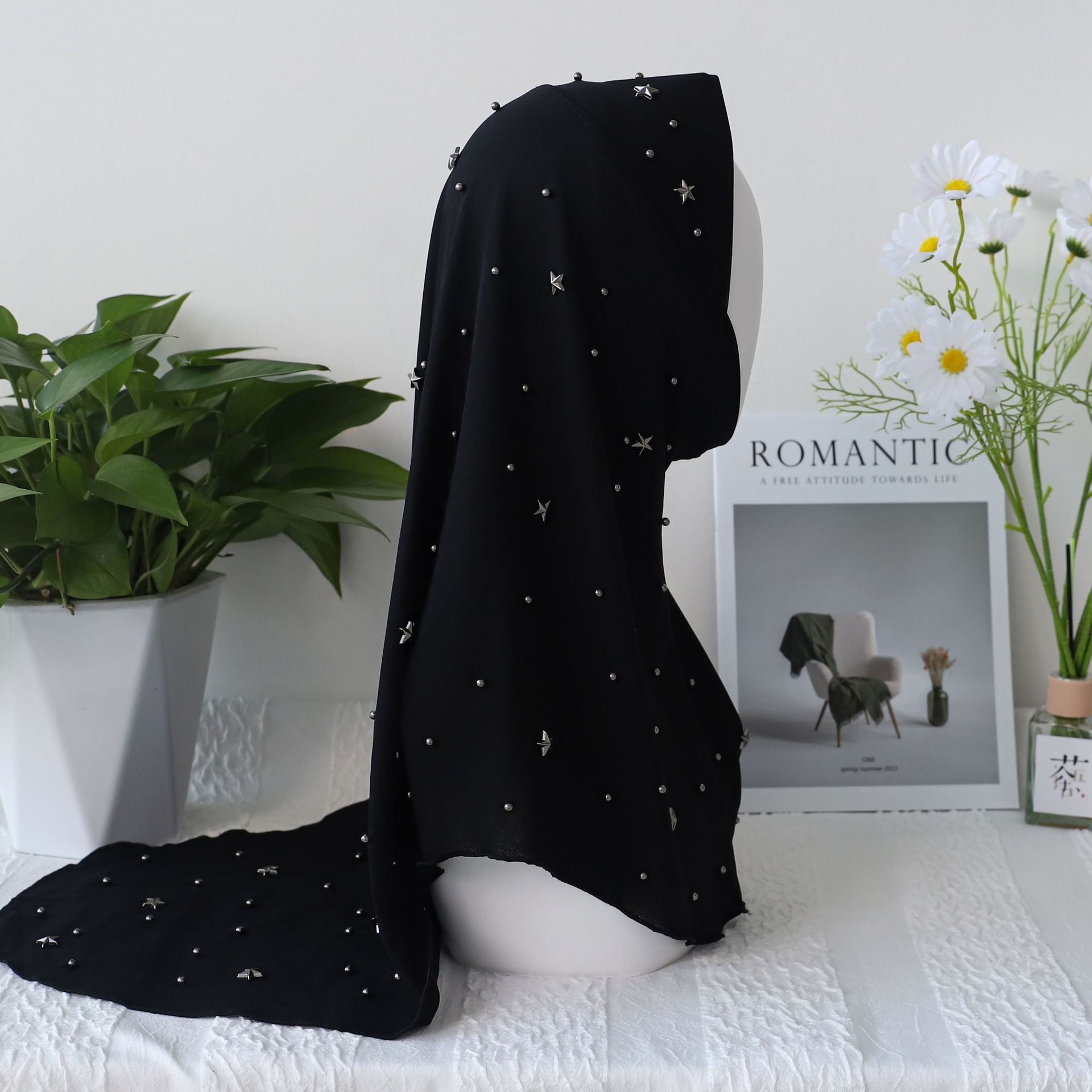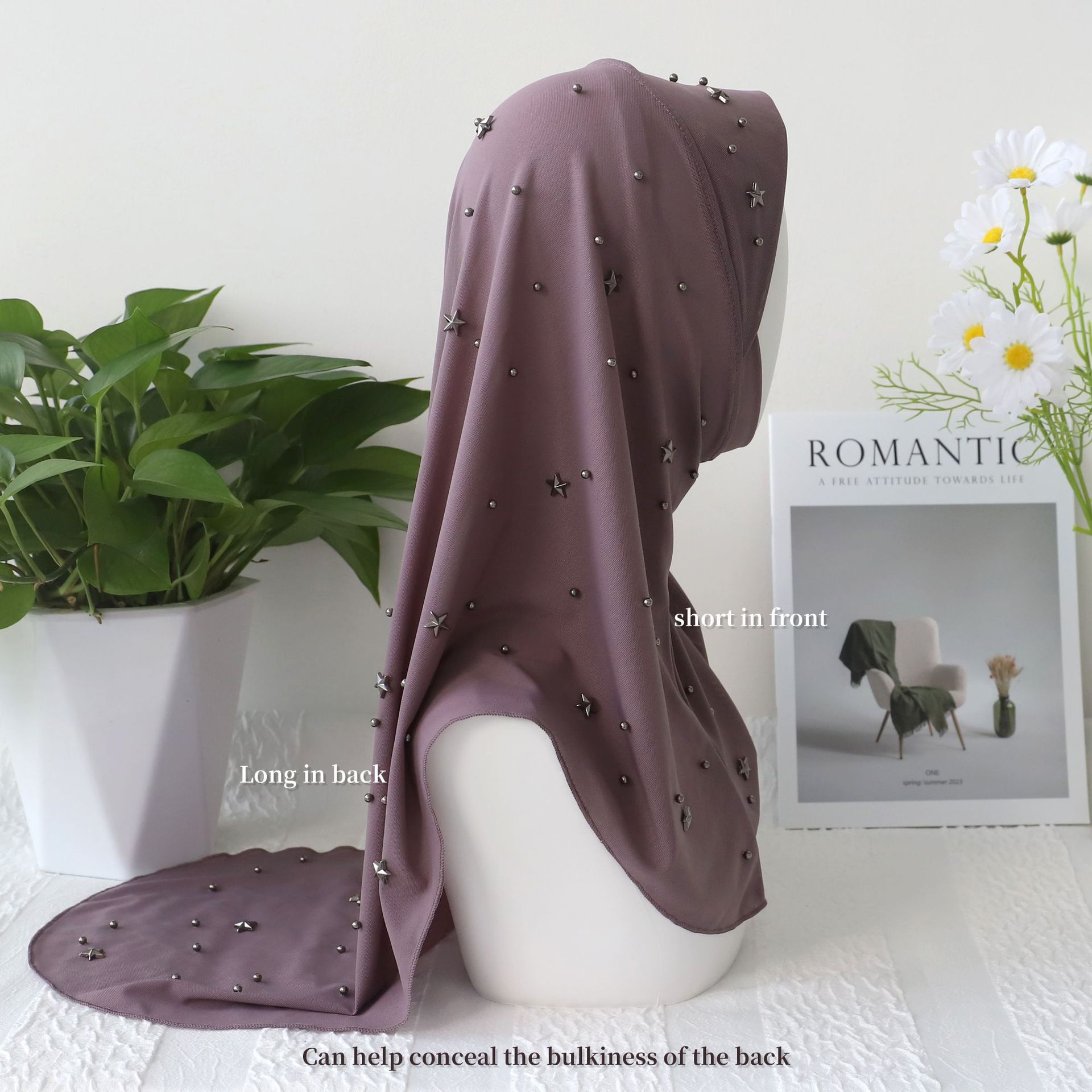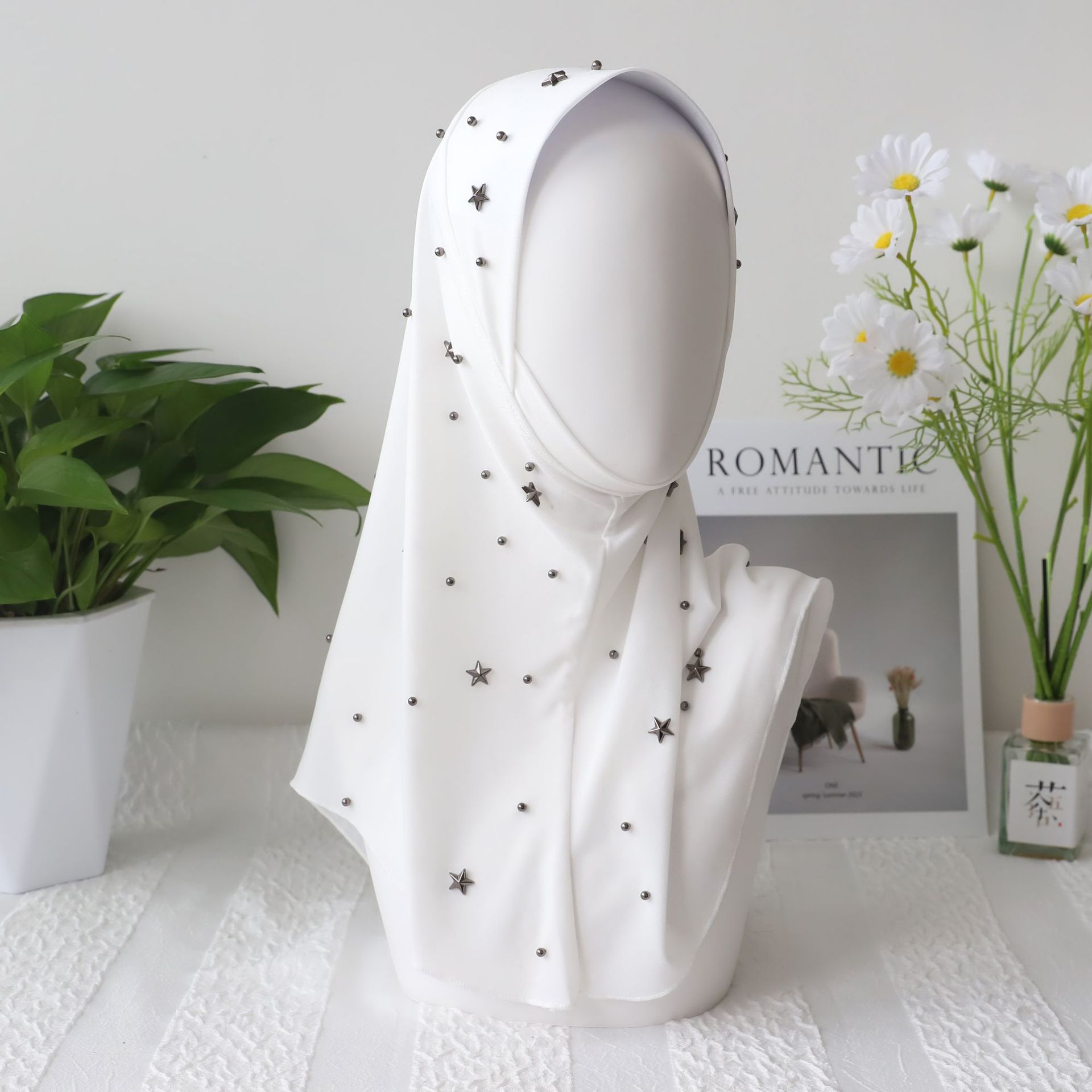 跨境速卖通亚马逊中东马来纯色弹力网纱钉珠套头头巾围巾现货批发