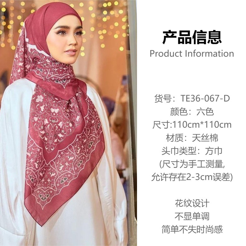 跨境速卖通新款马来天丝棉方巾花纹头巾中东马来绕巾舒适现货批发