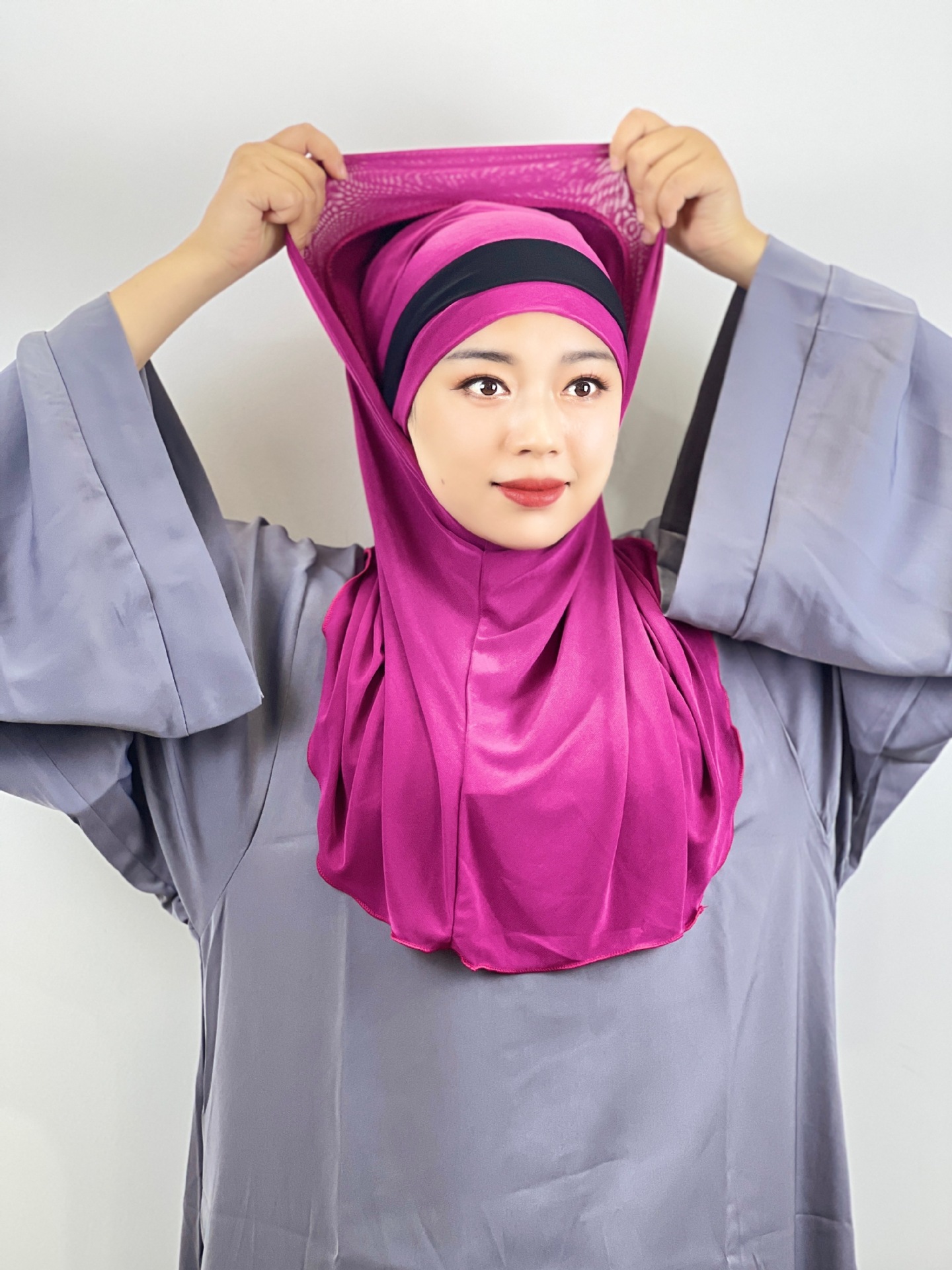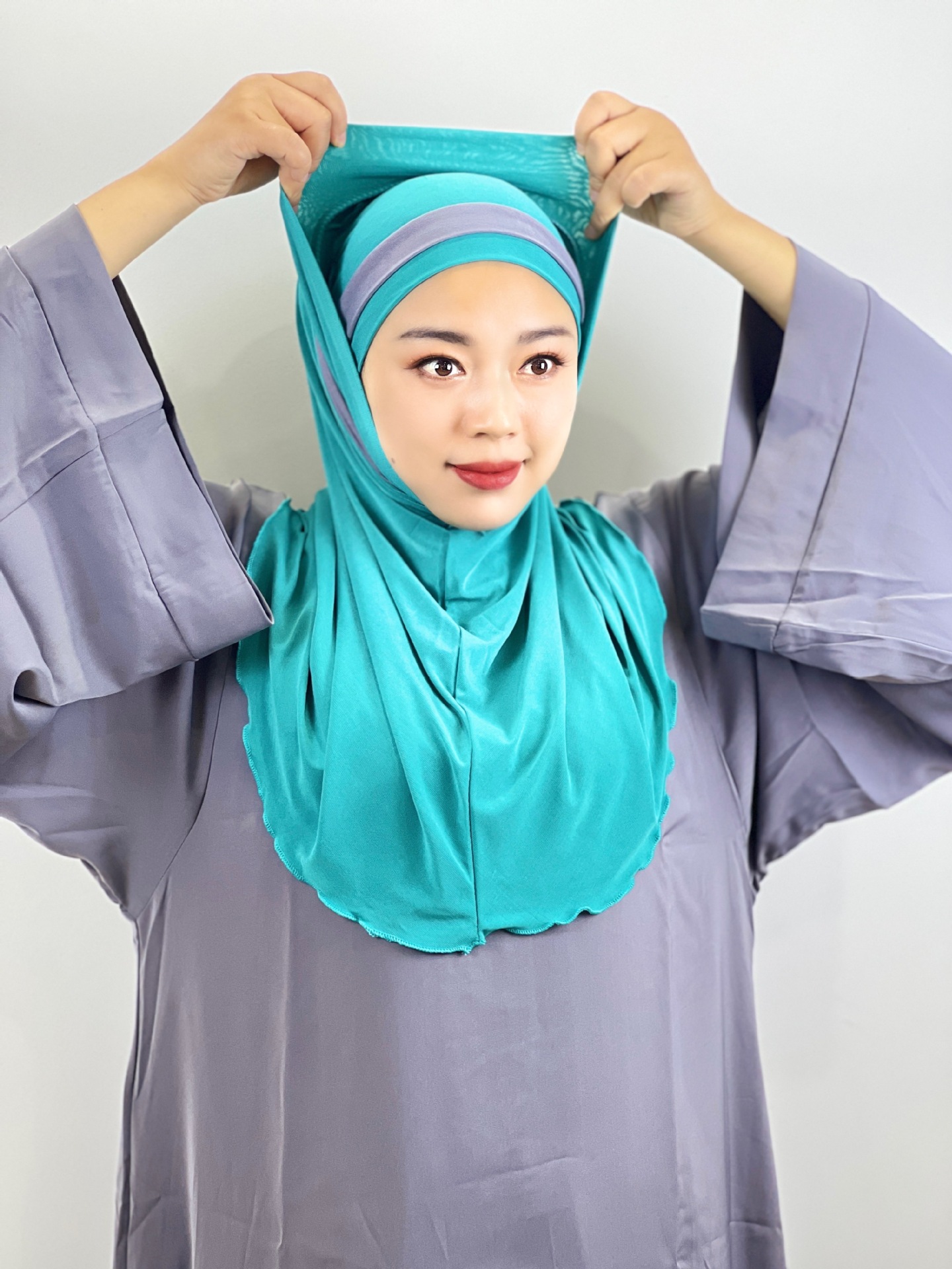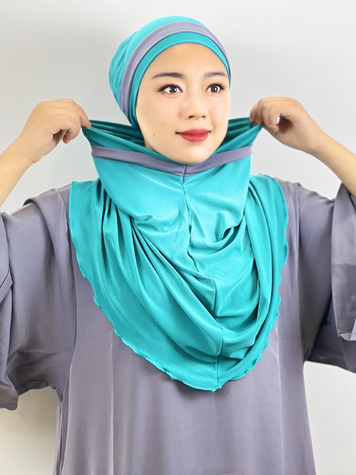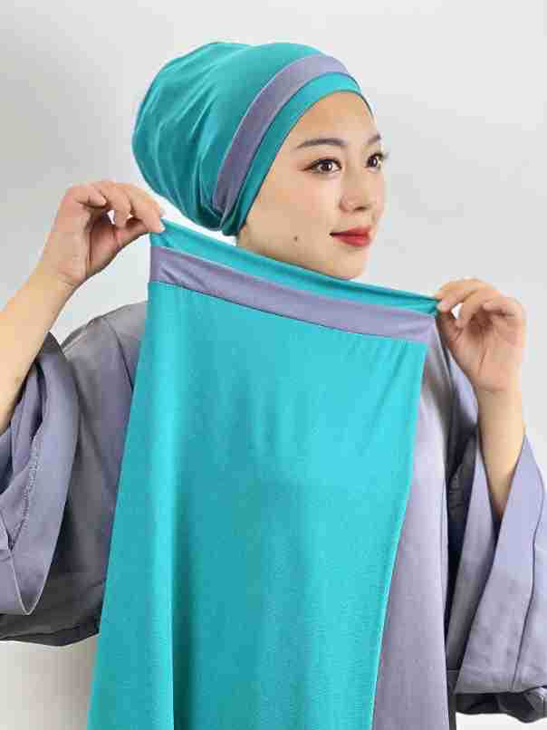 跨境纯色两件套头巾条纹弹性打底帽女士民族头巾帽盖头披肩现货
