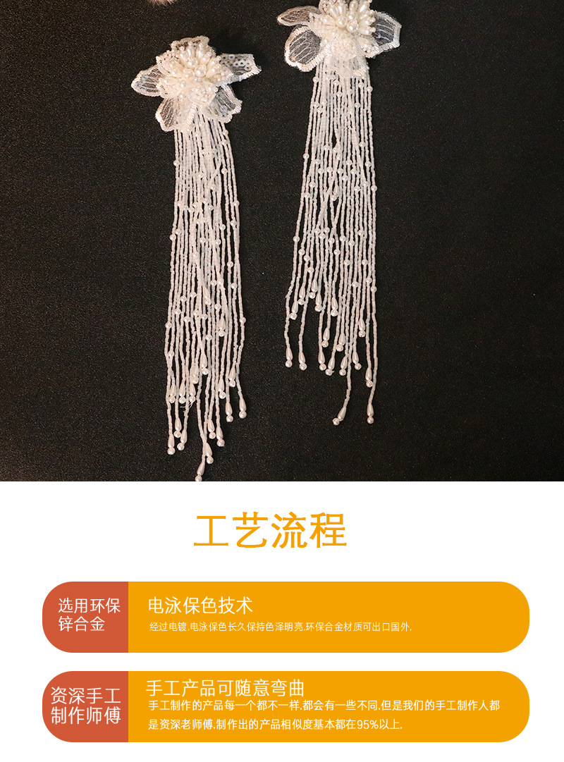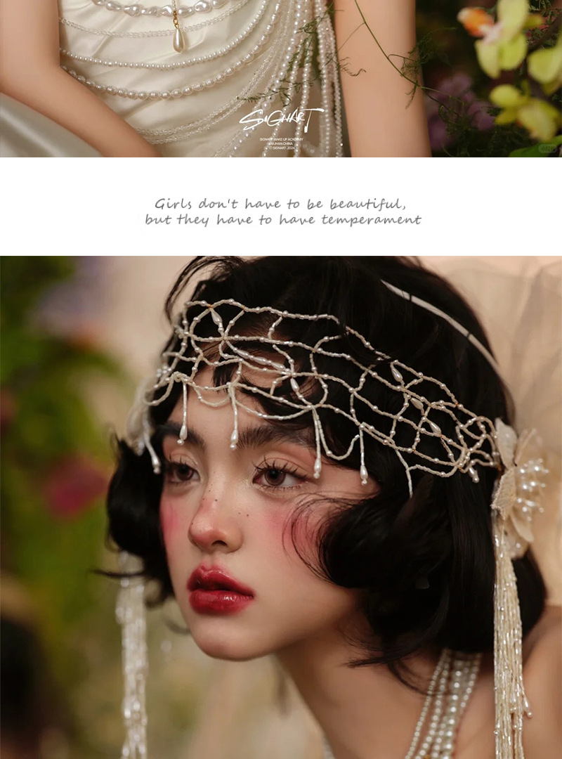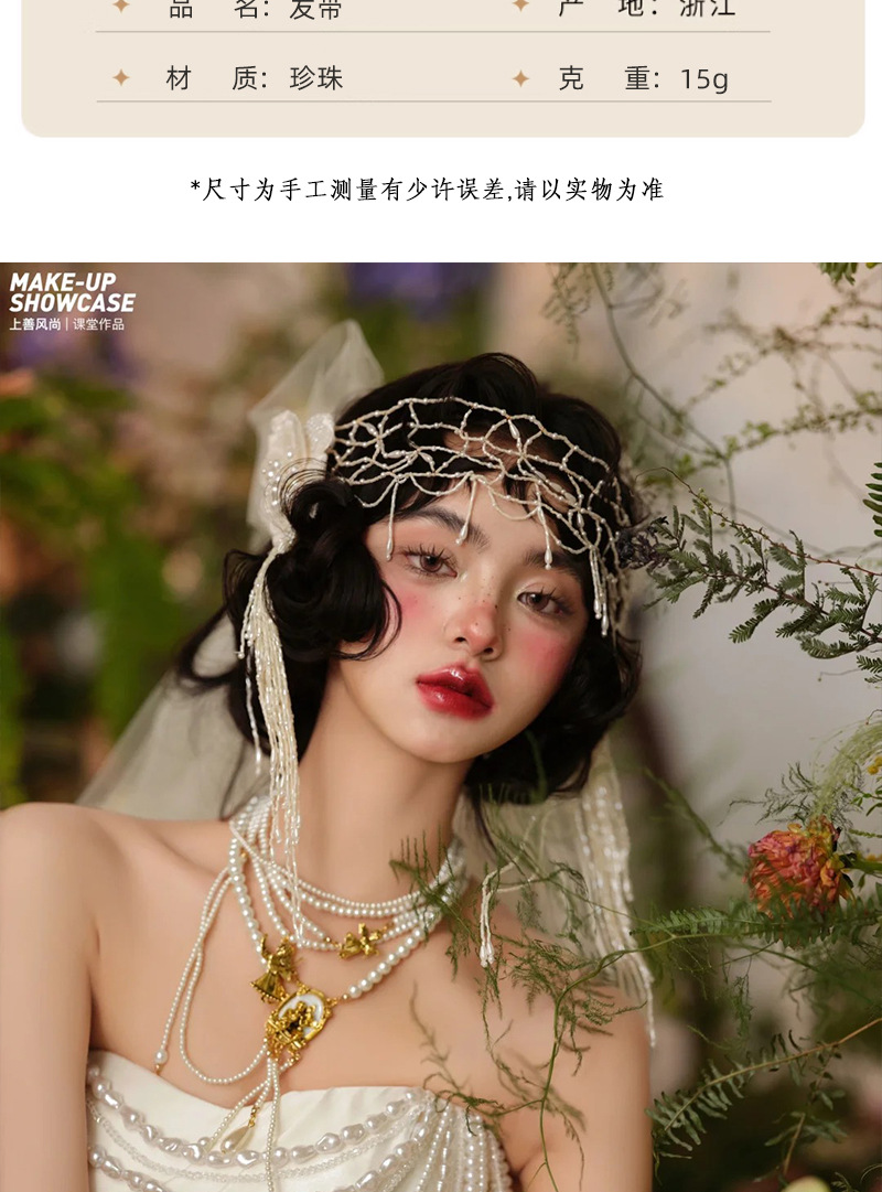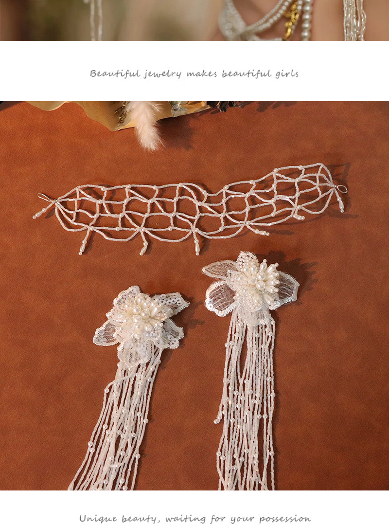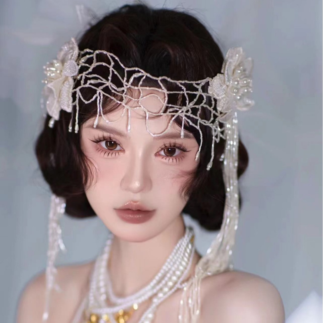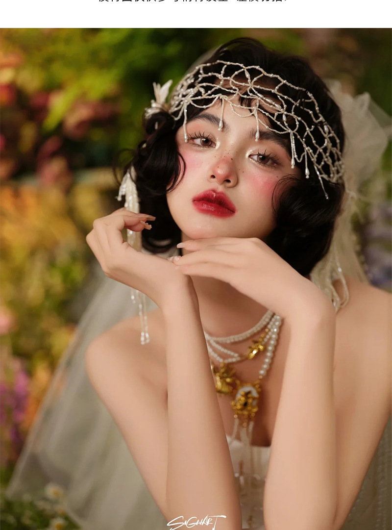新娘新款创意手工串珠发带法式复古花朵流苏发夹个性百搭礼服配饰