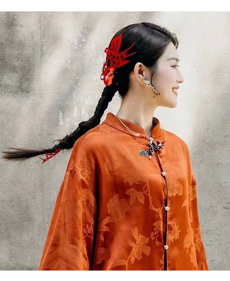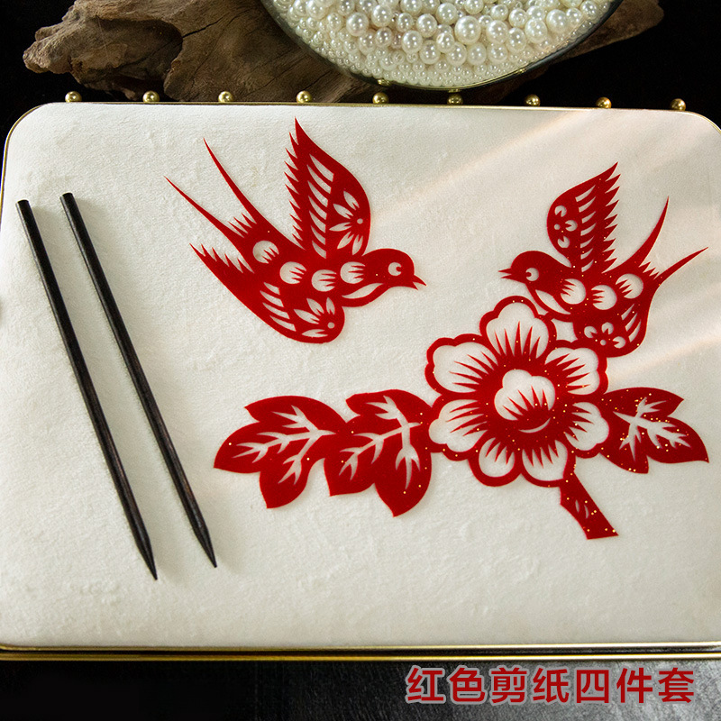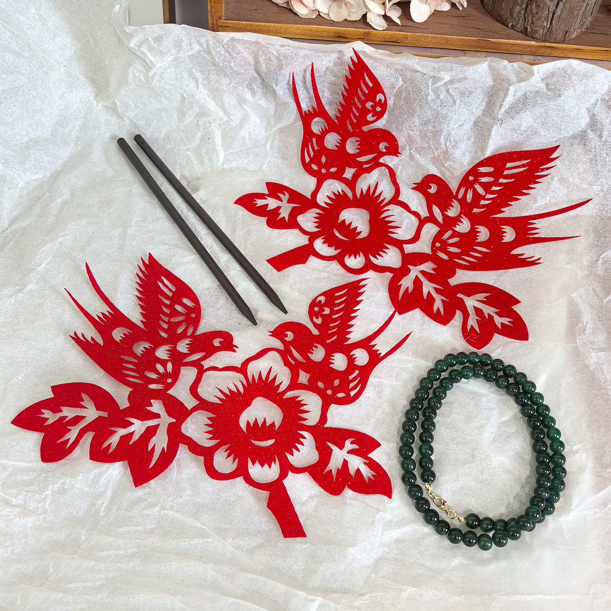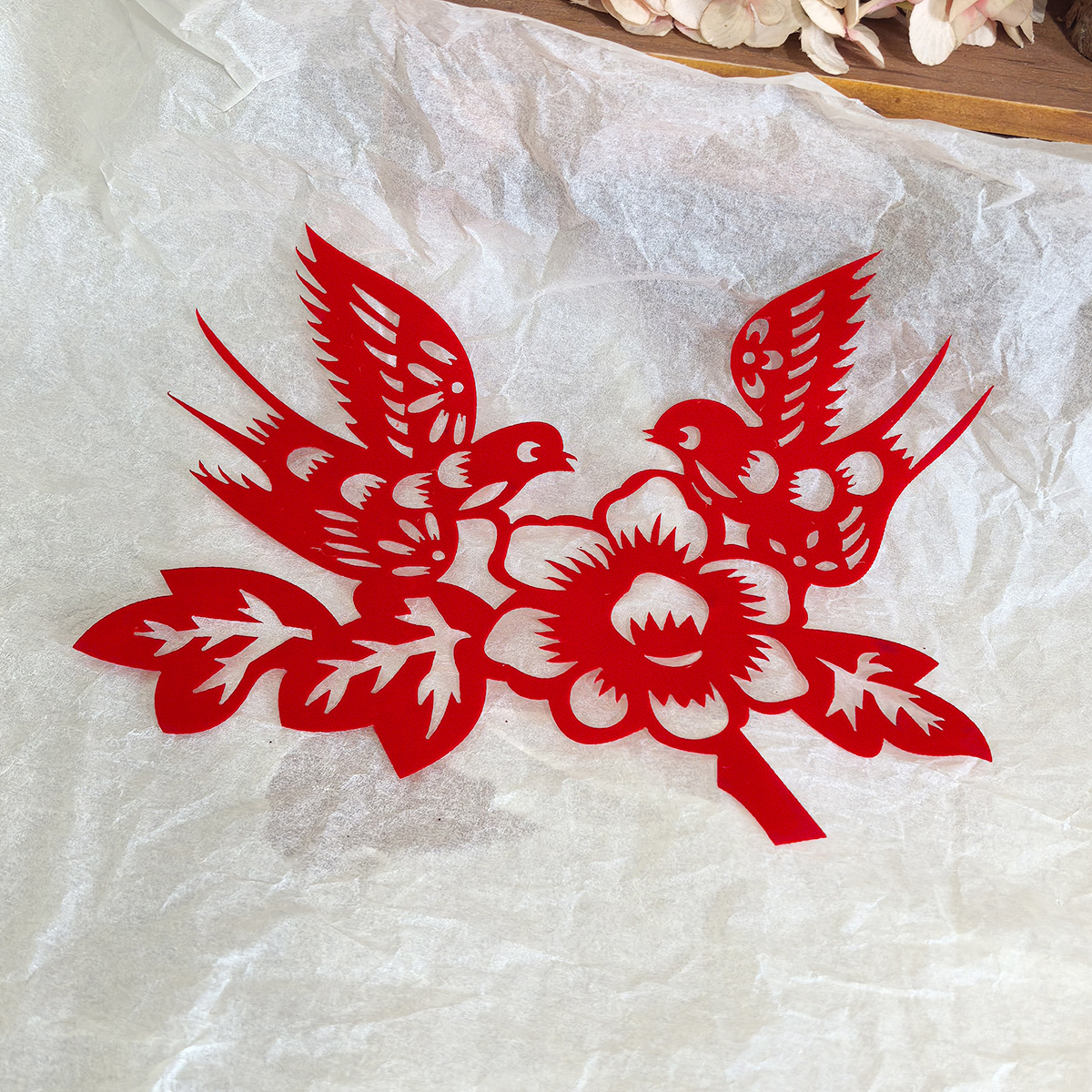 新娘剪纸创意新中式头饰2024红色喜鹊花朵发饰国风旗袍晨袍配饰