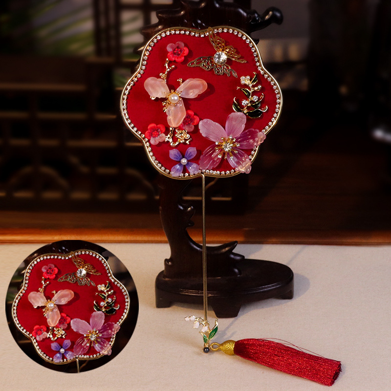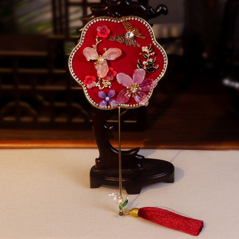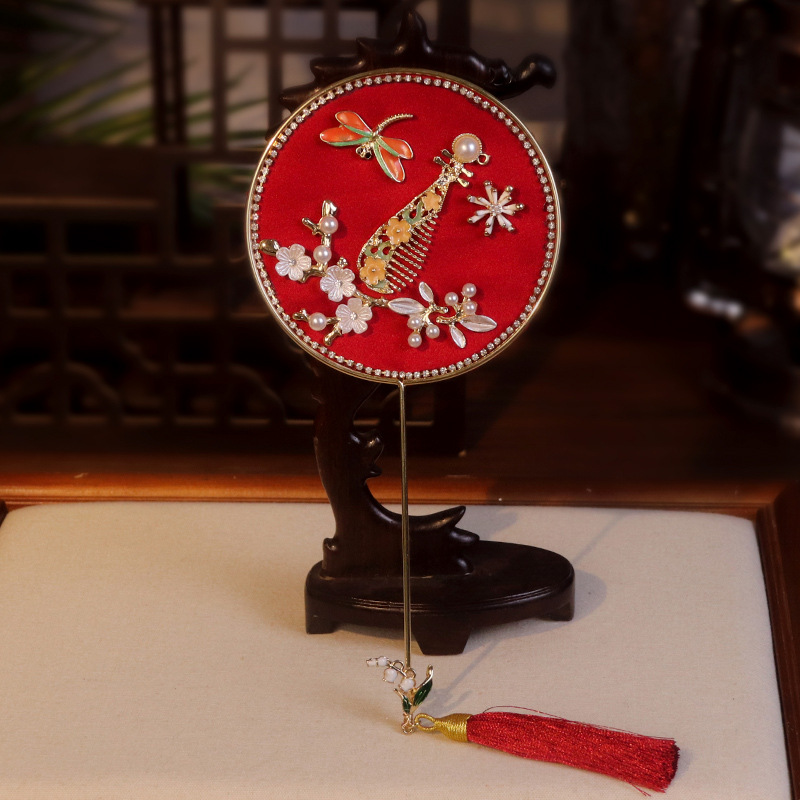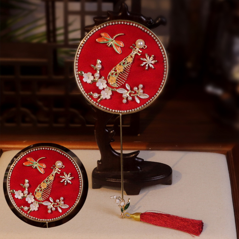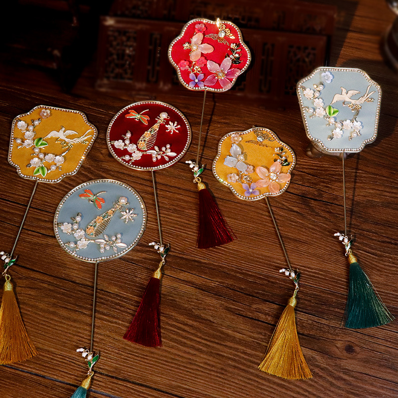 新中式婚礼结婚拍照小团扇秀禾服龙凤袍流苏配饰古装精致手工扇子
